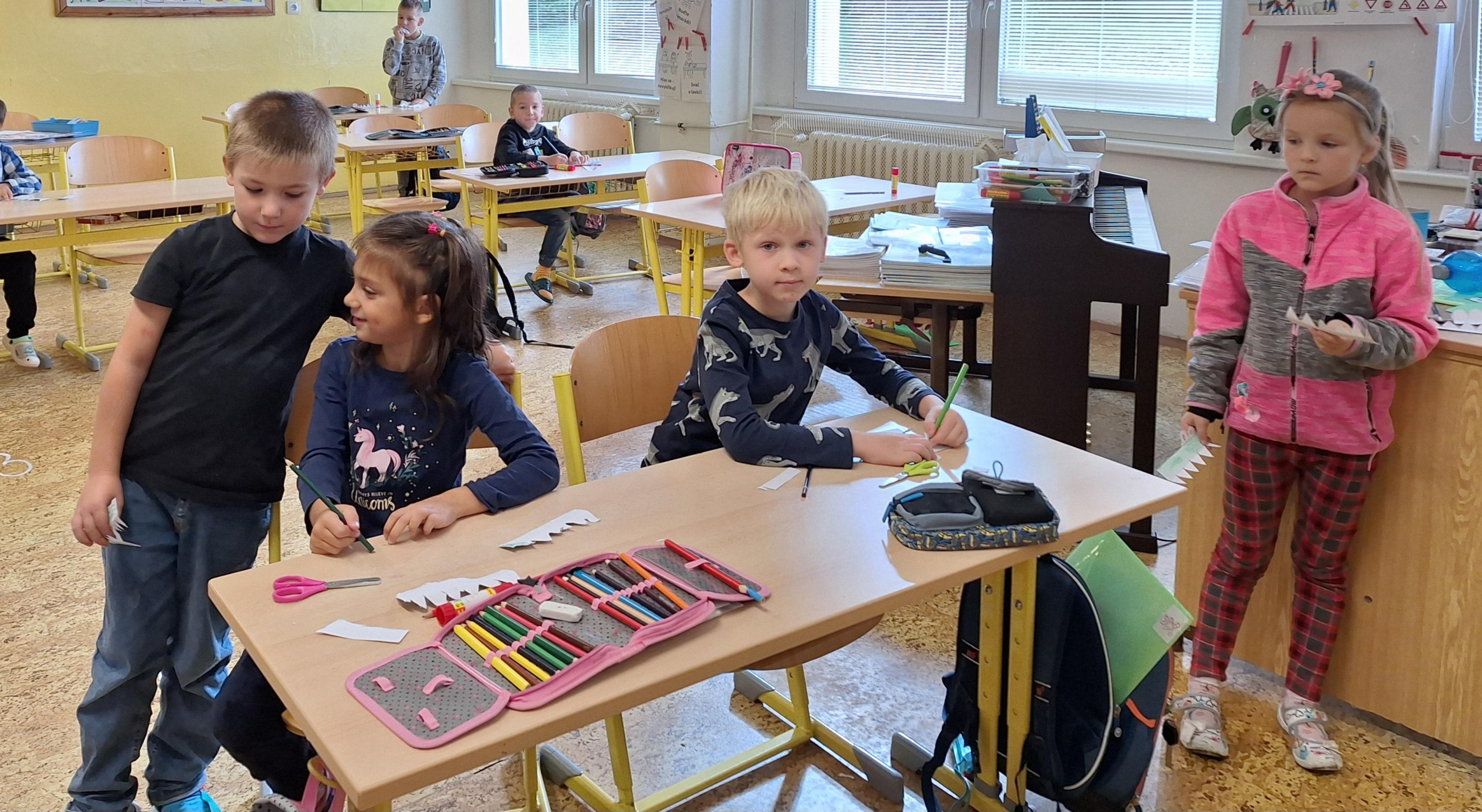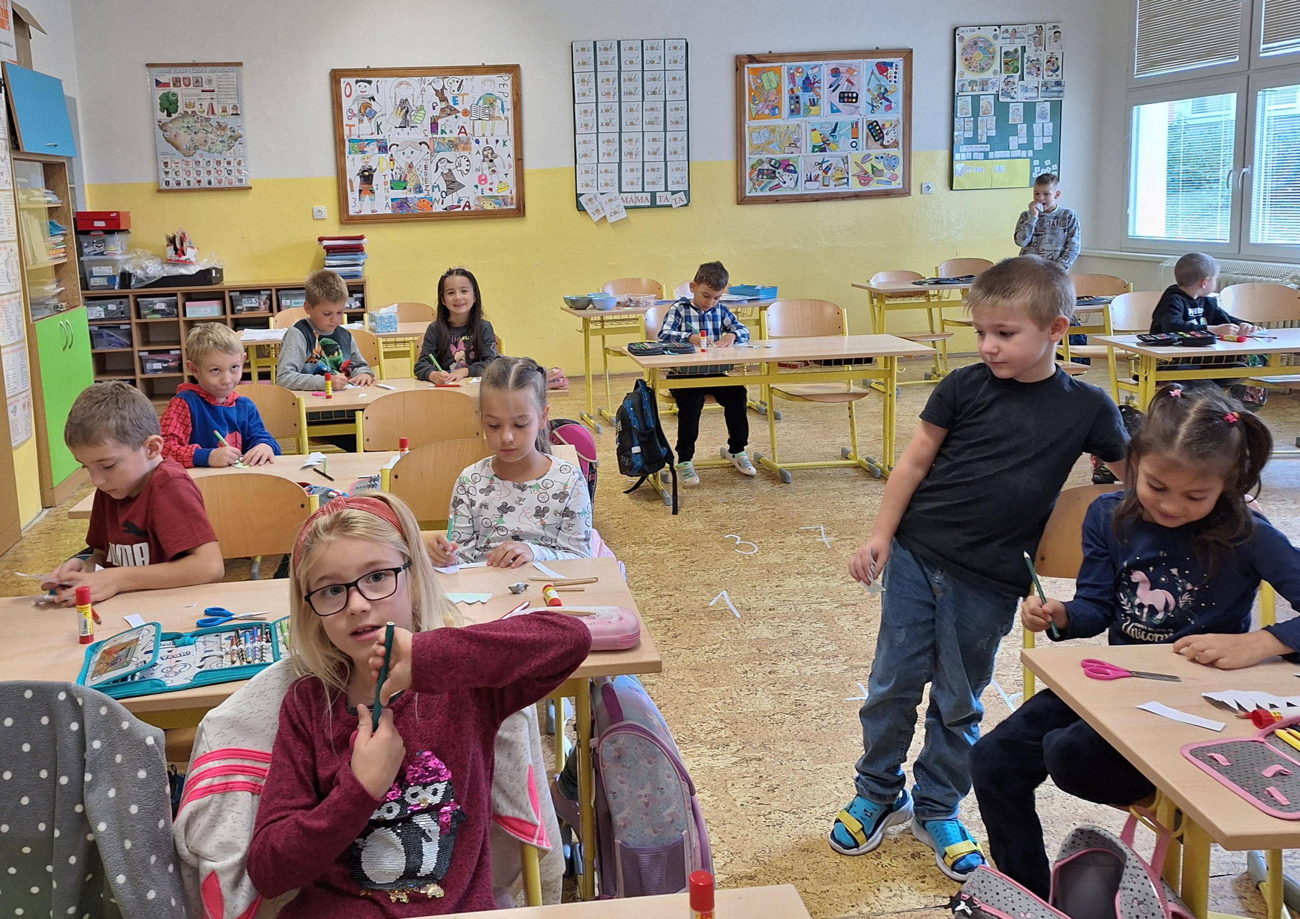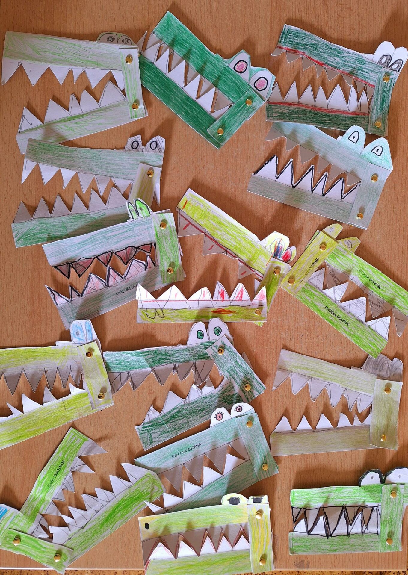 Na hodiny matematiky jsme si vyrobili krokodýlí pomůcku, která nám pomůže určovat čísla větší, menší a stejná. Trochu nás potrápilo vystřihování zubů, ale konečný výsledek byl úžasný. Nejvíce zábavy si žáci užili při otvírání krokodýlí tlamy.