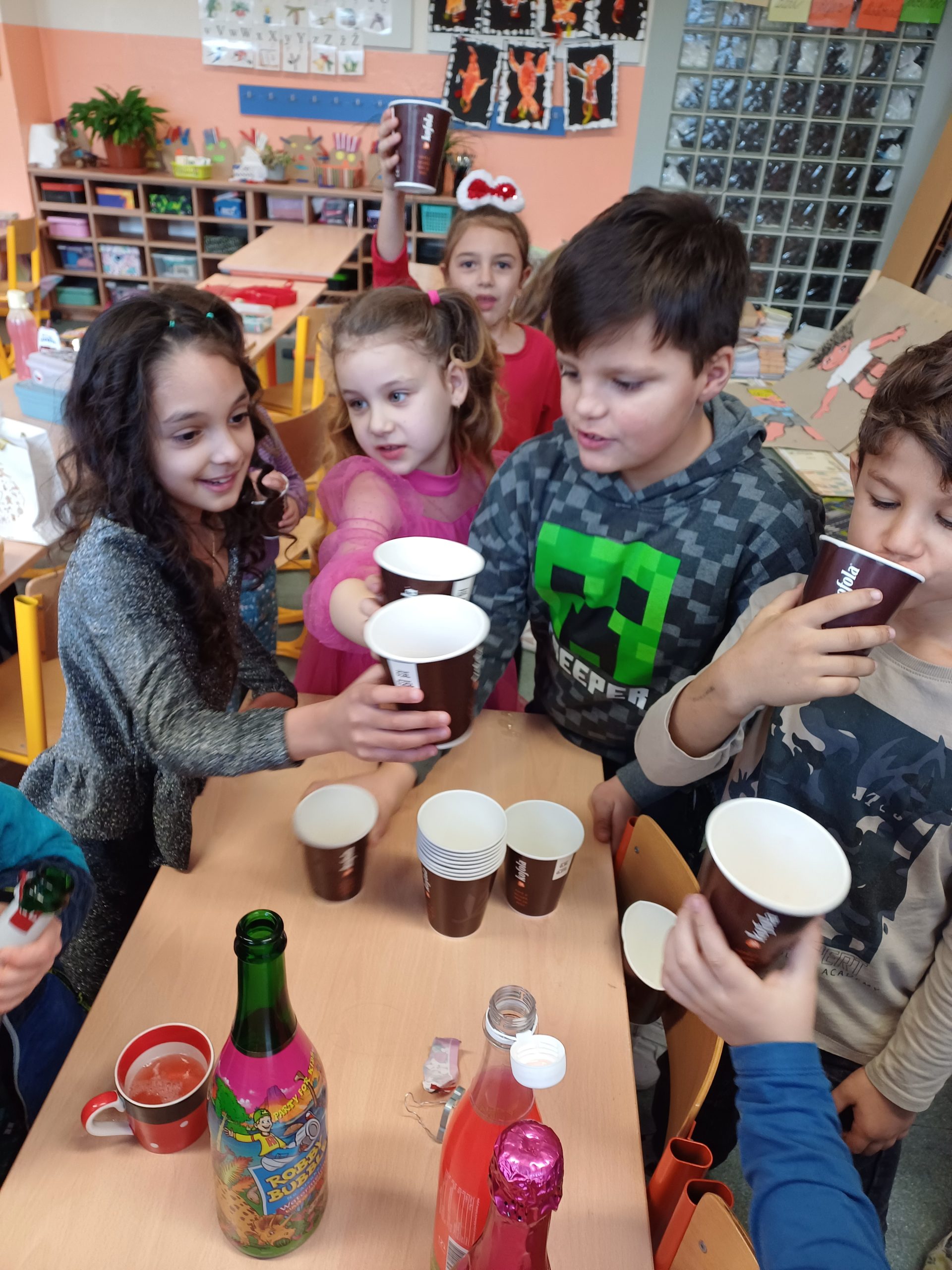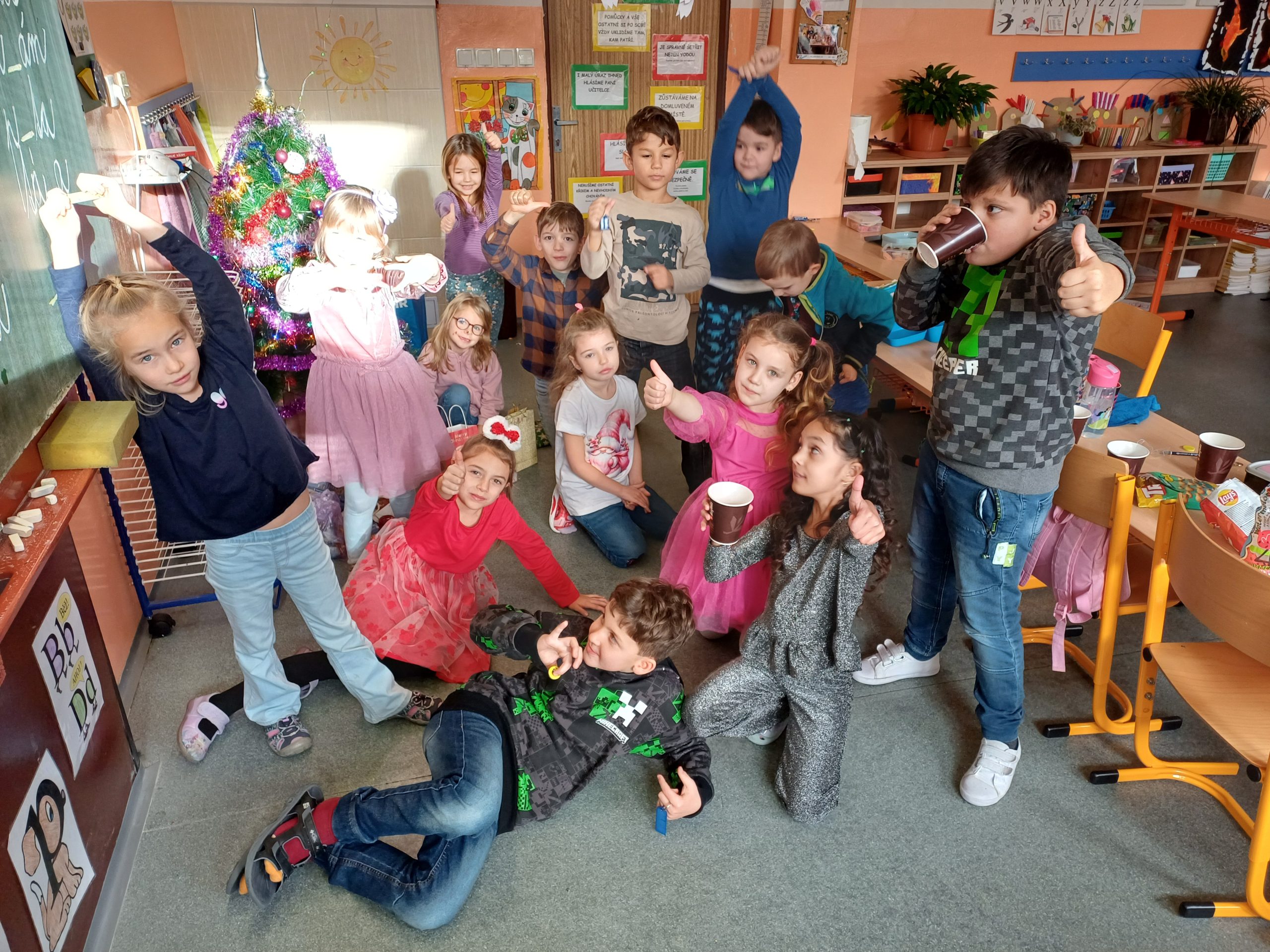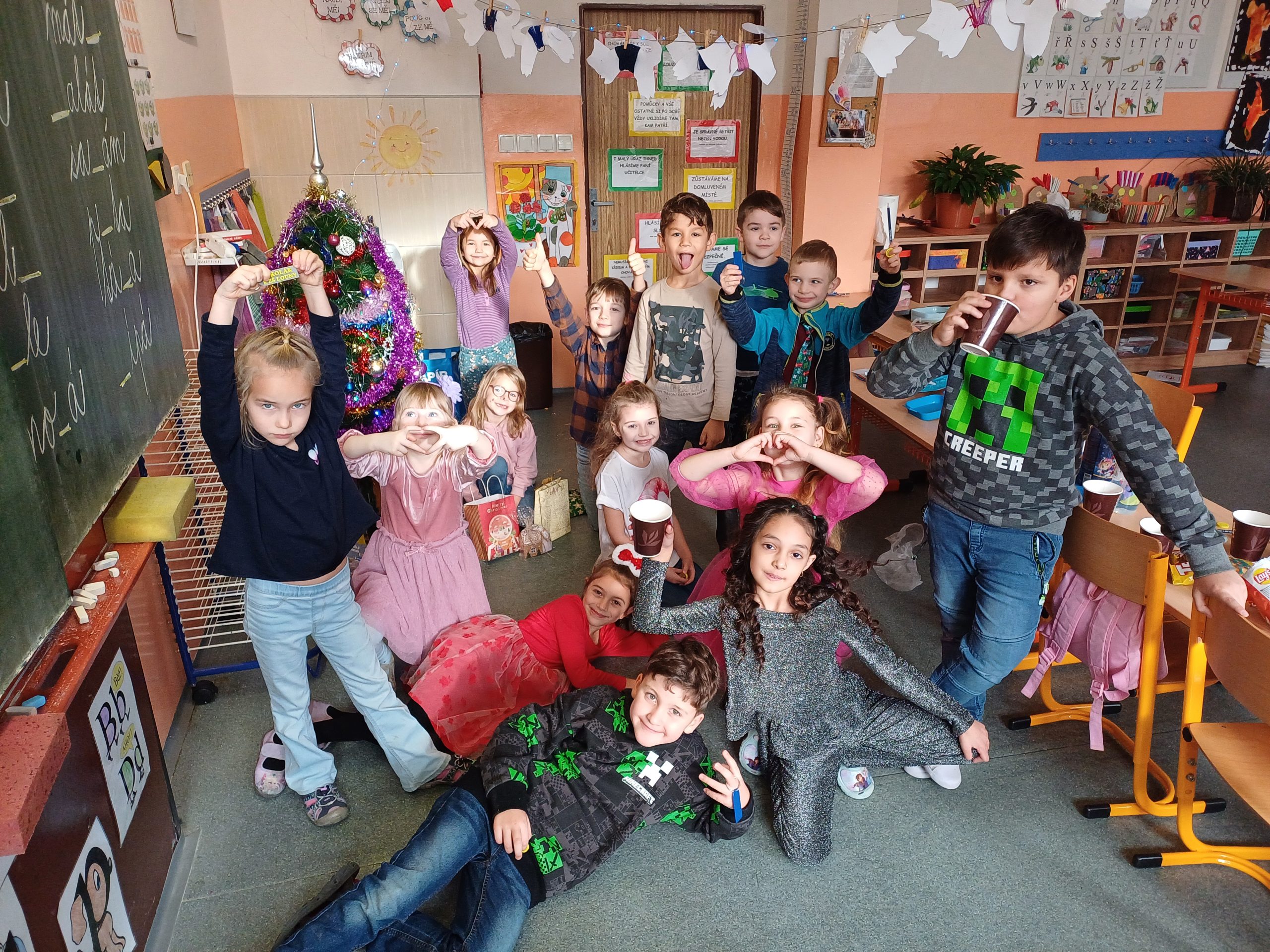 Poslední den ve škole toho kalendářního roku jsme si užili. Návštěva kina, cukroví, „šampaňské“, dobroty, dárečky, koledy, scénky. Takový byl náš den, popřáli jsme si vše nejlepší do nového roku a s úsměvem na tváři jsme se rozloučili.