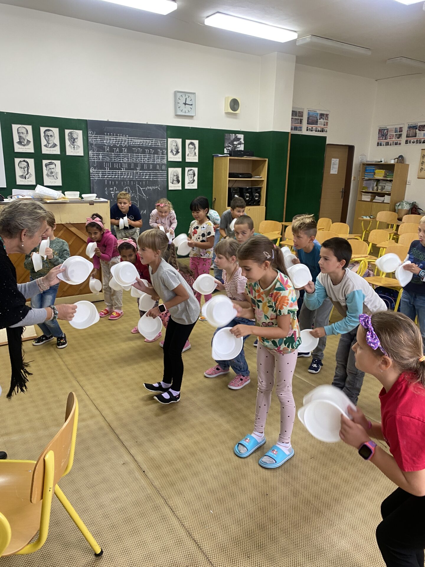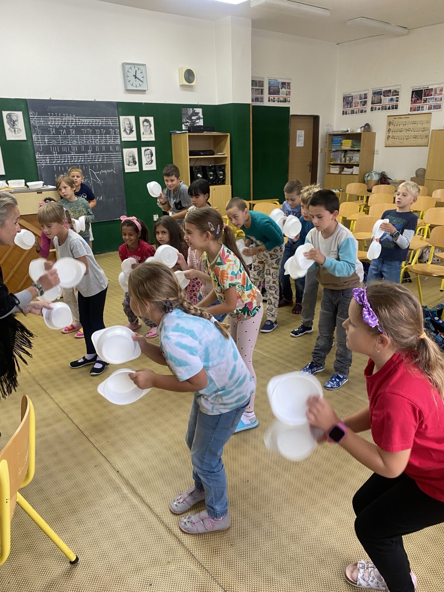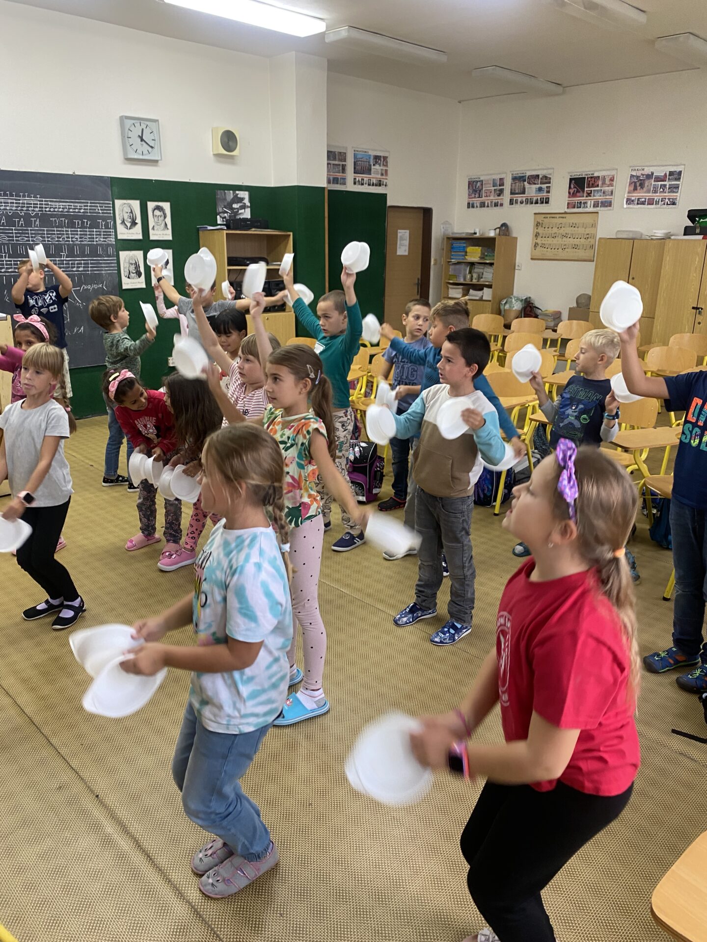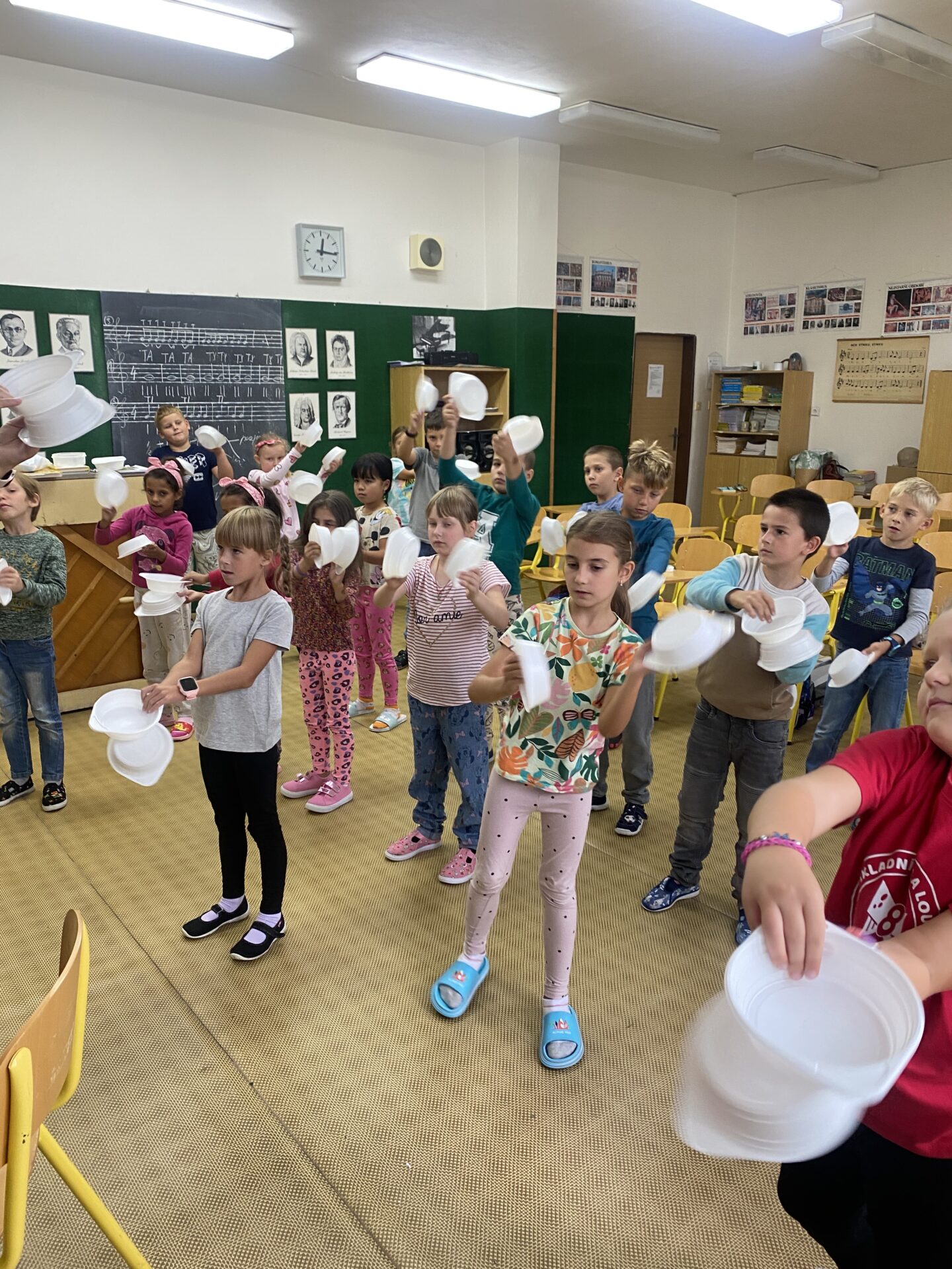V hudební výchově doprovázíme naše zpívání hrou na plastové tácky. Noty celé, půlové, čtvrťové, osminové a pomlky nám už nejsou záhadou. Další zprávyOzdravný pobyt v Krkonoších18. 5. 2025Mc Donald’s Cup 26.ročník – školní kolo fotbalového turnaje3. 2. 2025Sportuj ve škole13. 12. 2024Druháčci na houbách25. 11. 2024Podzim u nás ve třídě11. 11. 2024ABECEDA žádná věda11. 11. 2024
