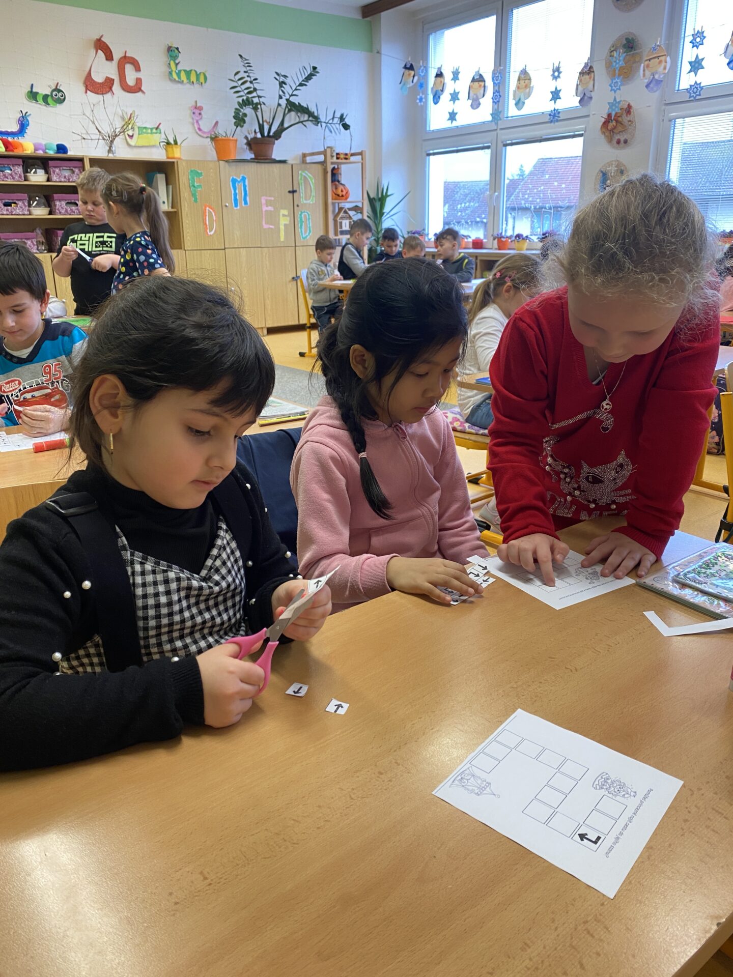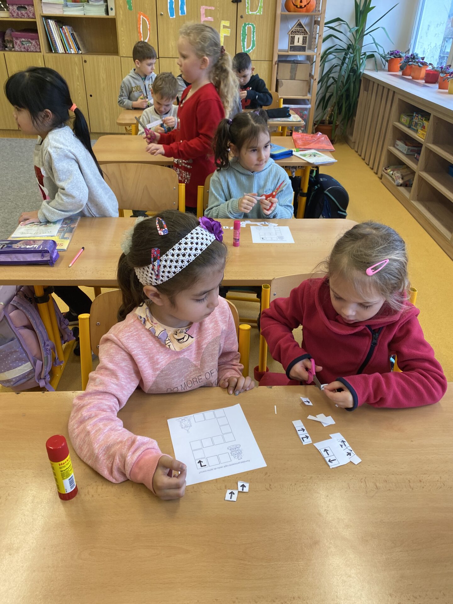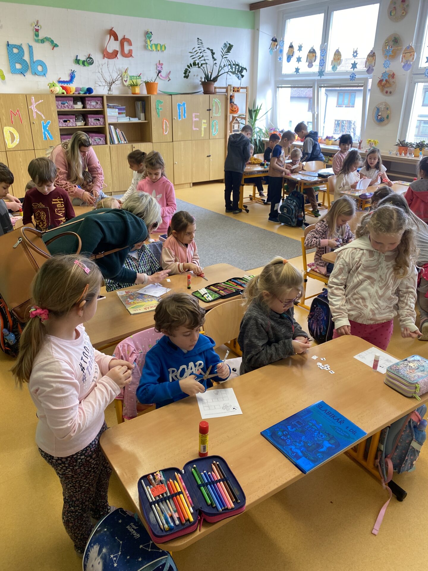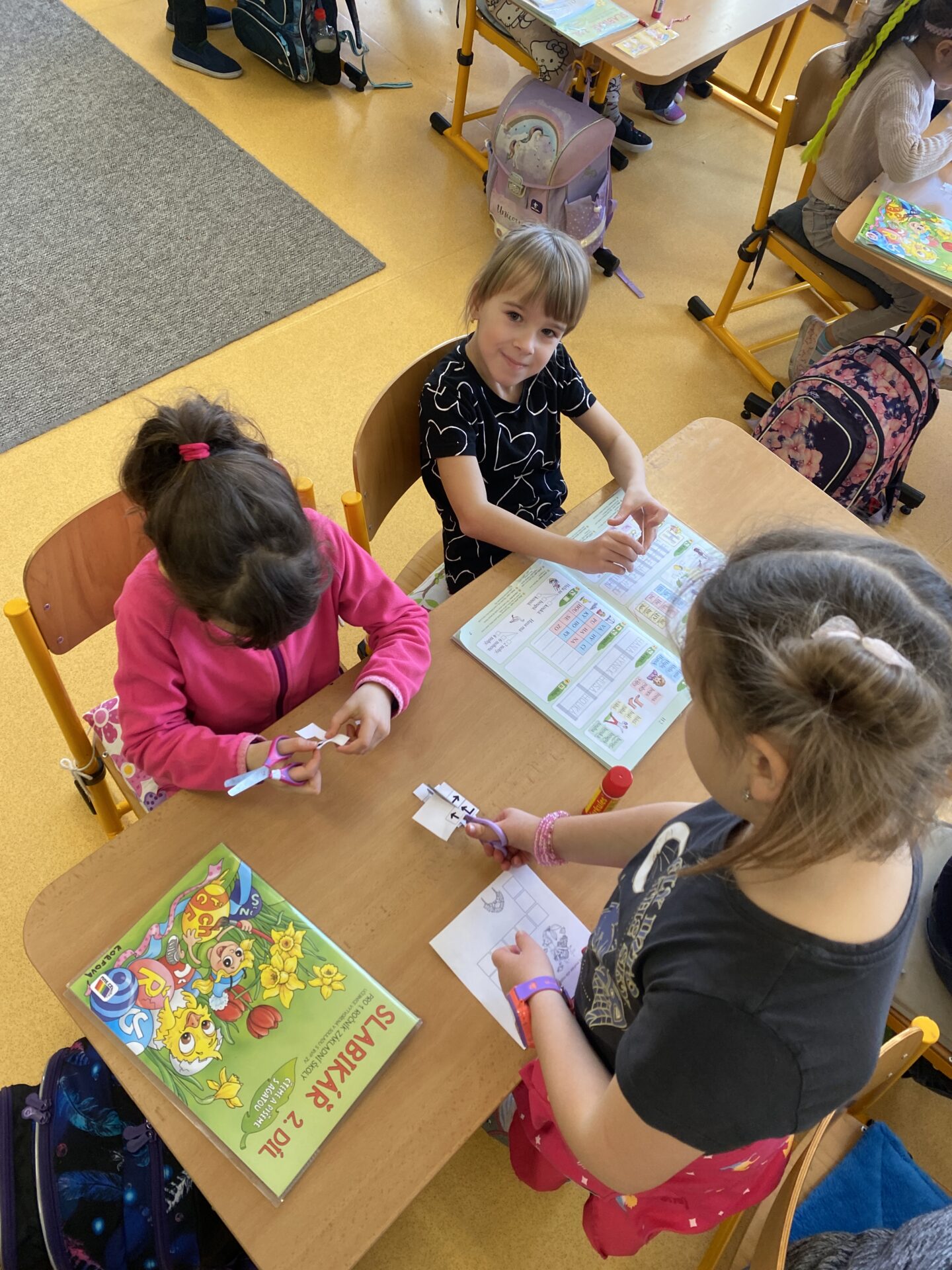 Navštívili nás kamarádi ze školky. Ukázali jsme jim, co všechno jsme se od září naučili. Společně jsme četli ze slabikáře, porovnávali čísla, stříhali a lepili cestu ze šipek. Těšíme se, že se s některými budeme od září potkávat.