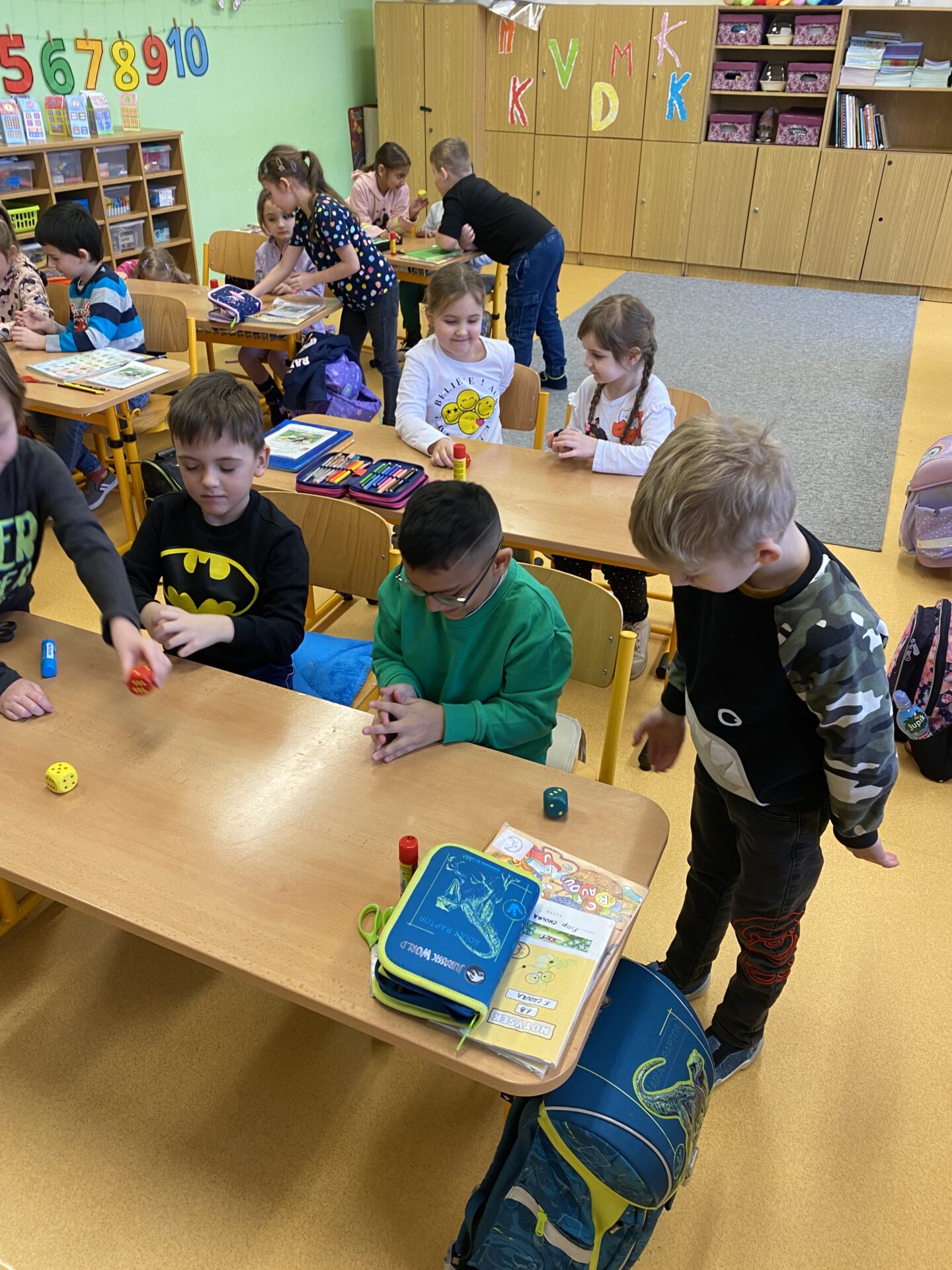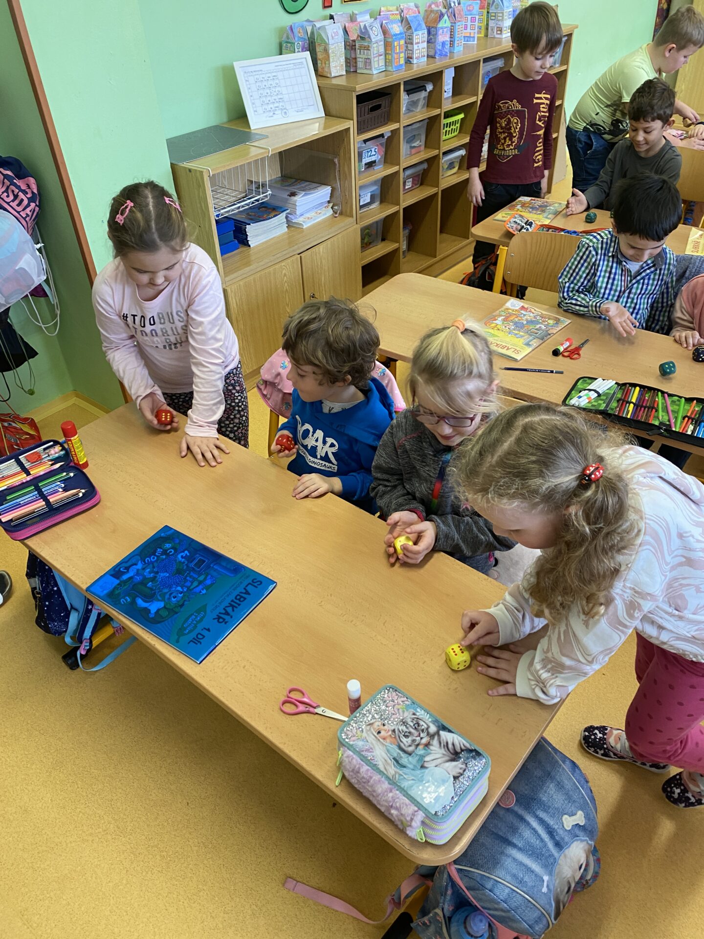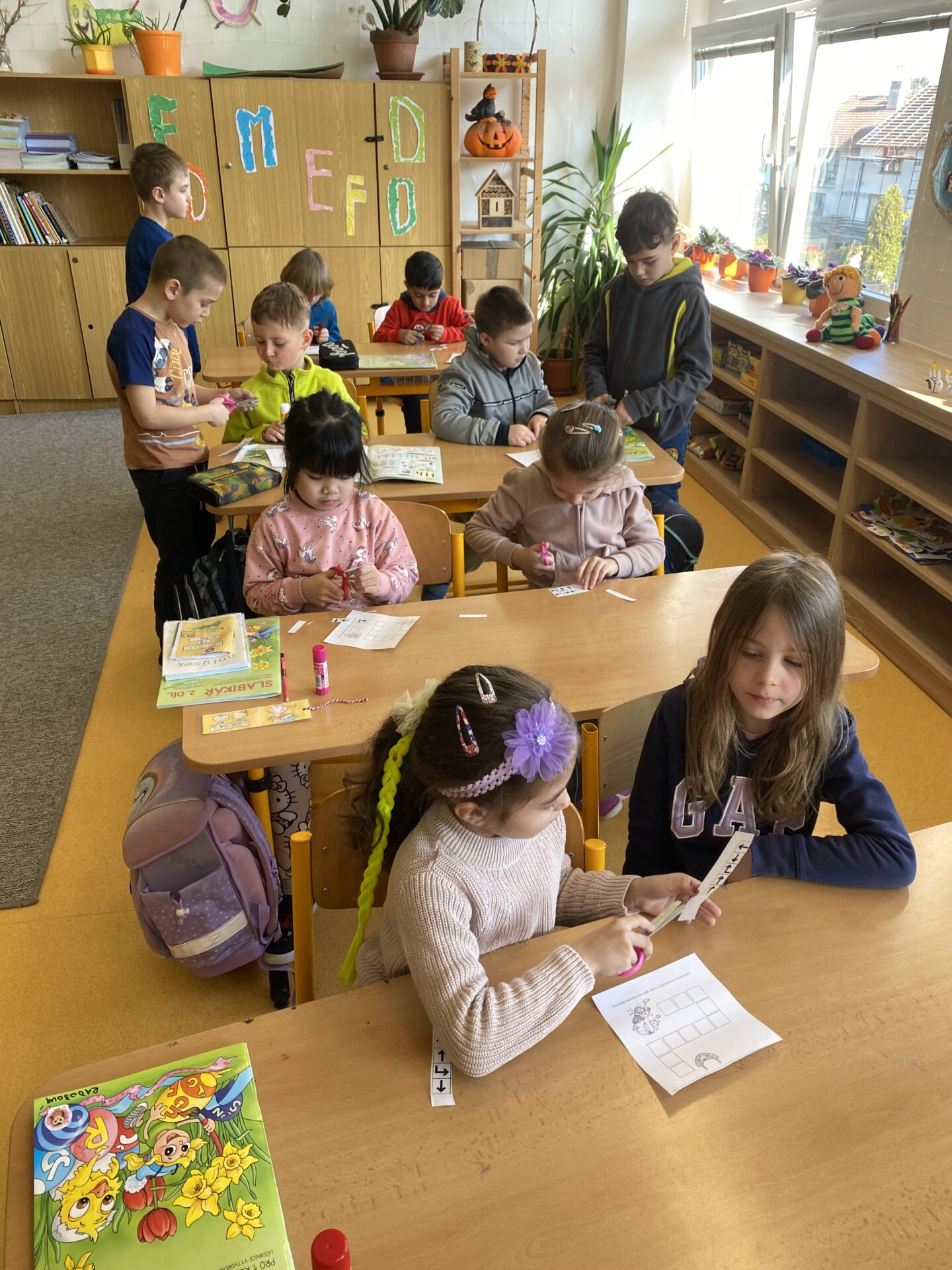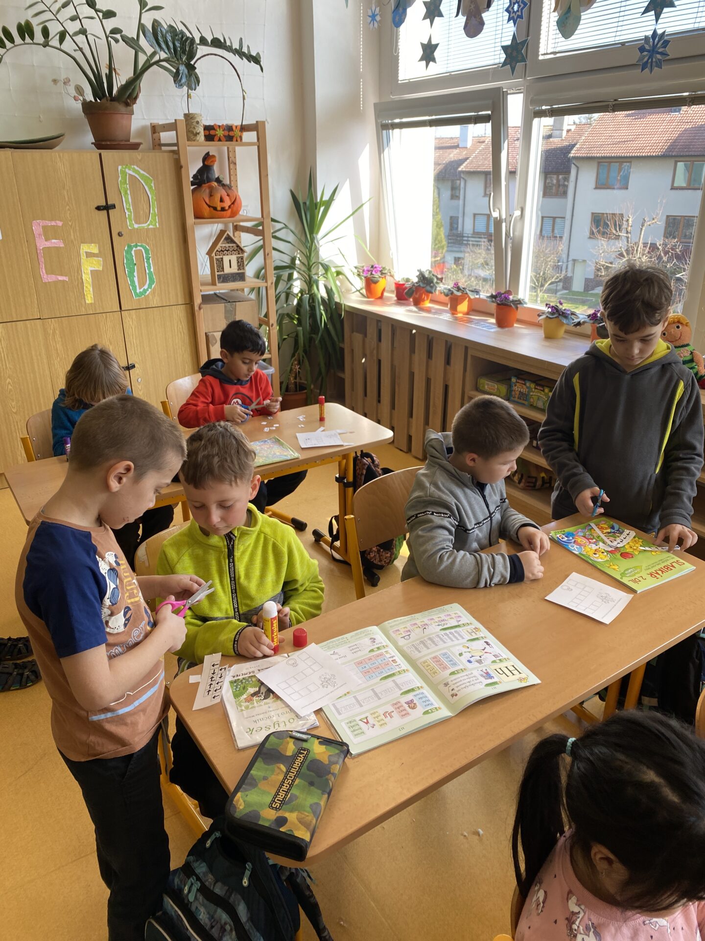 Navštívili nás kamarádi ze školky. Ukázali jsme jim, co všechno jsme se od září naučili. Společně jsme četli ze slabikáře, porovnávali čísla, stříhali a lepili cestu ze šipek. Těšíme se, že se s některými budeme od září potkávat.