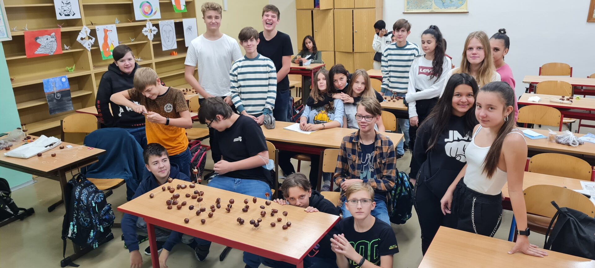 8.B – PODZIMNÍ TVOŘENÍ – VÝROBKY Z KAŠTANŮ PRO KAMARÁDY Z 1.A