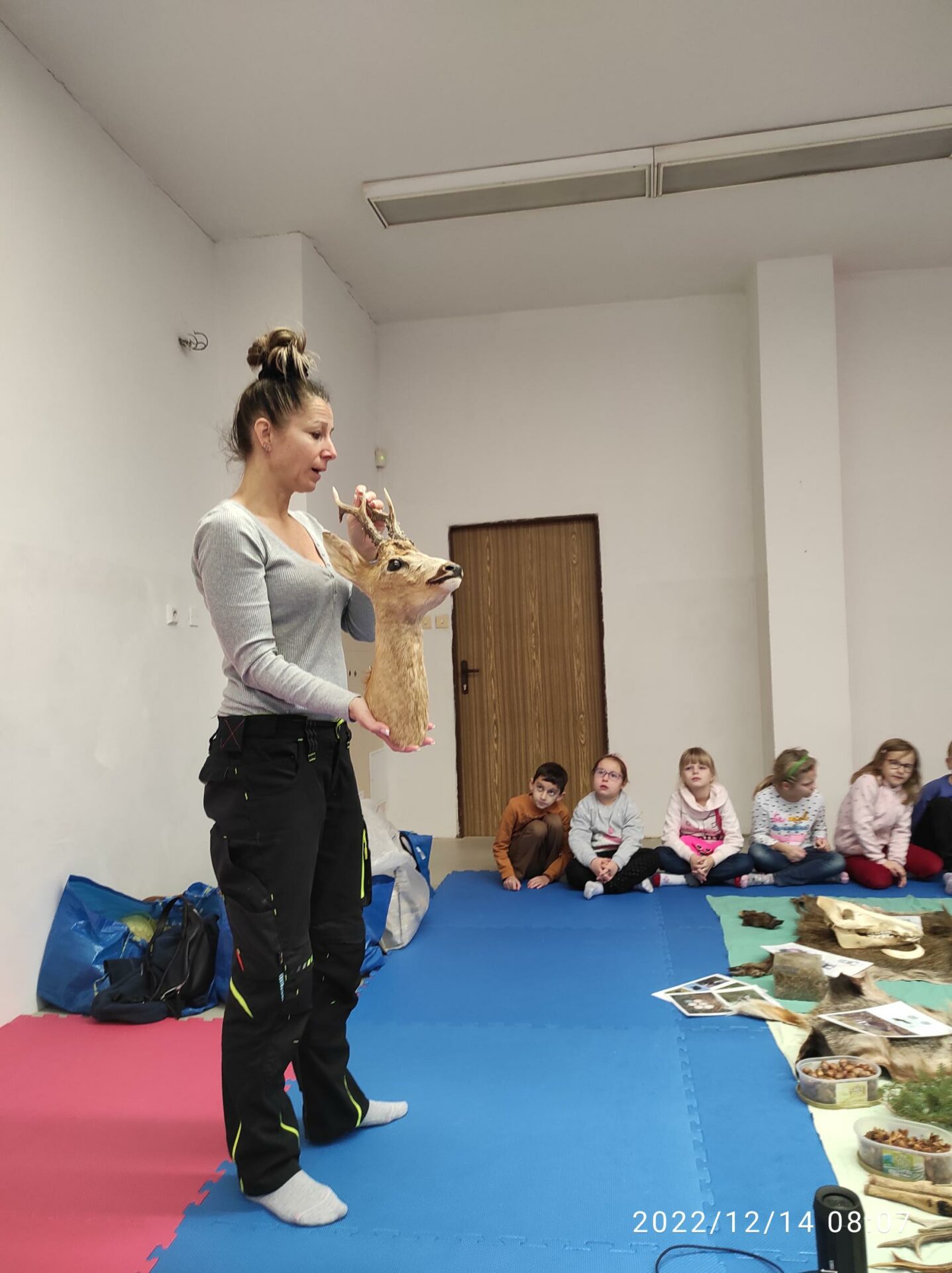 Ve středu 14.12. proběhl na naší škole enviromentální program pro prvňáčky s názvem Příroda je naše – Náš les a jeho obyvatelé. V první části programu měla paní lektorka pro děti připravené zvukové hádanky, při nichž si vyslechly různé zvuky zvířat a jejich úkolem bylo přiřadit je ke správnému obyvateli lesa. Dozvěděly se, jak se mají v lese chovat, aby mohly zvířátka pozorovat v jejich přirozeném prostředí. Ve druhé části programu pokládaly paní lektorce otázky, mohly si osahat vycpaná zvířata (veverku, lišku, ježka, srnce ….), lebku, kly divočáka, porovnat paroží srnce a jelena, prohlédnout si kožešiny lišky, divočáka, kuny, jelena, srnce, jezevce. Poznávaly stopy zvířat. Dětem se vyprávění moc líbilo. Děkujeme paní lektorce za zajímavý a poutavý interaktivní program. Více fotografií naleznete ve fotogalerii 1.A a 1.B