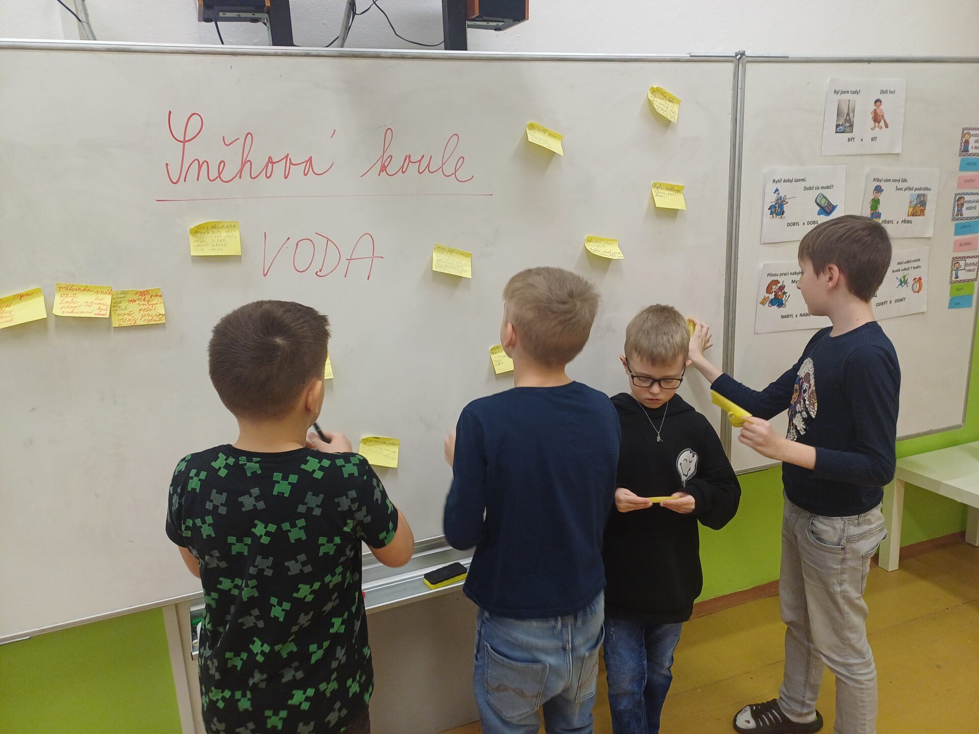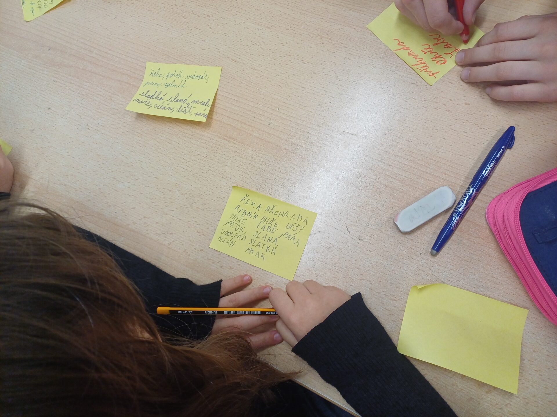 Nejdříve jednotlivec musel napsat 5 pojmů na téma voda, pak se spojily děti do dvojic- pojmy si spojily a vymýšlely další a pak do čtveřic.