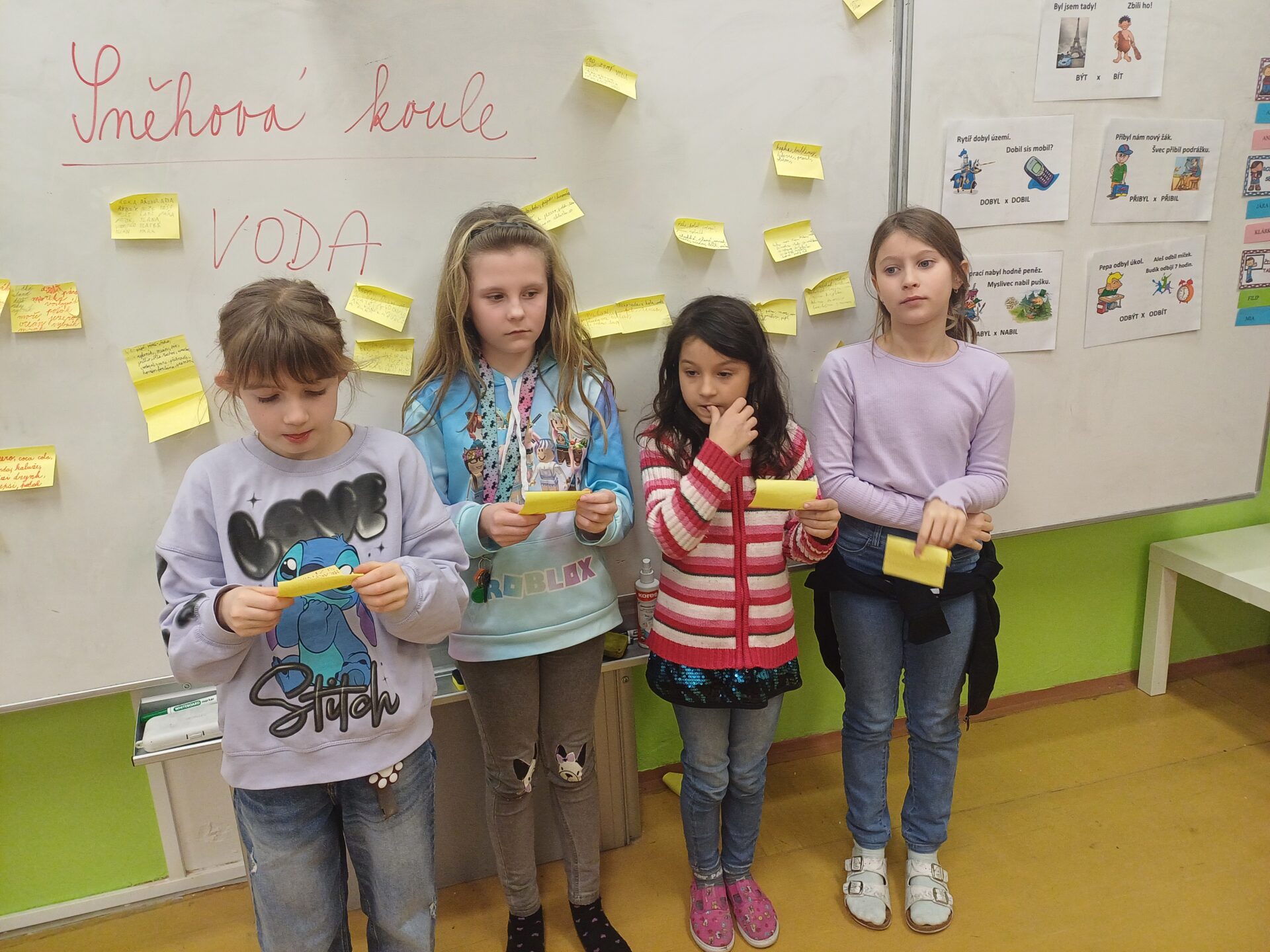 Závěrem svoje názory odprezentovaly a následně nalepily na tabuli. Moc jim to šlo🥰