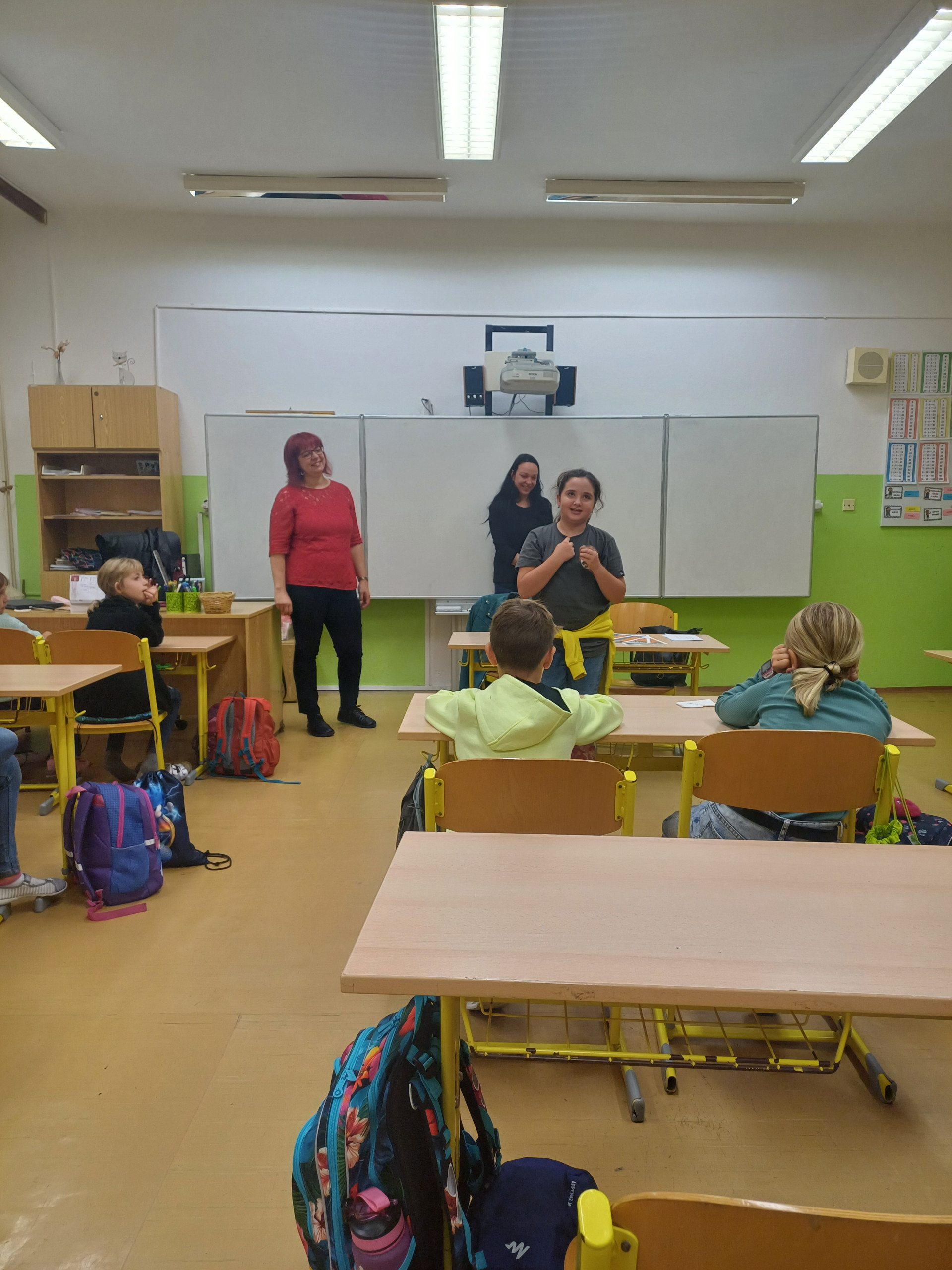Dne 23.9. je mezinárodním dnem znakových jazyků. Tak jsme si s dětmi vyzkoušely znakový jazyk a naučily se pár vět ve znakovém jazyce. Další zprávyKoupaliště Louny25. 6. 2025Bowling23. 6. 2025Jezero Most22. 6. 2025Muzikál ETIKETA20. 6. 2025Olympijský běh18. 6. 2025Plavání10. 6. 2025