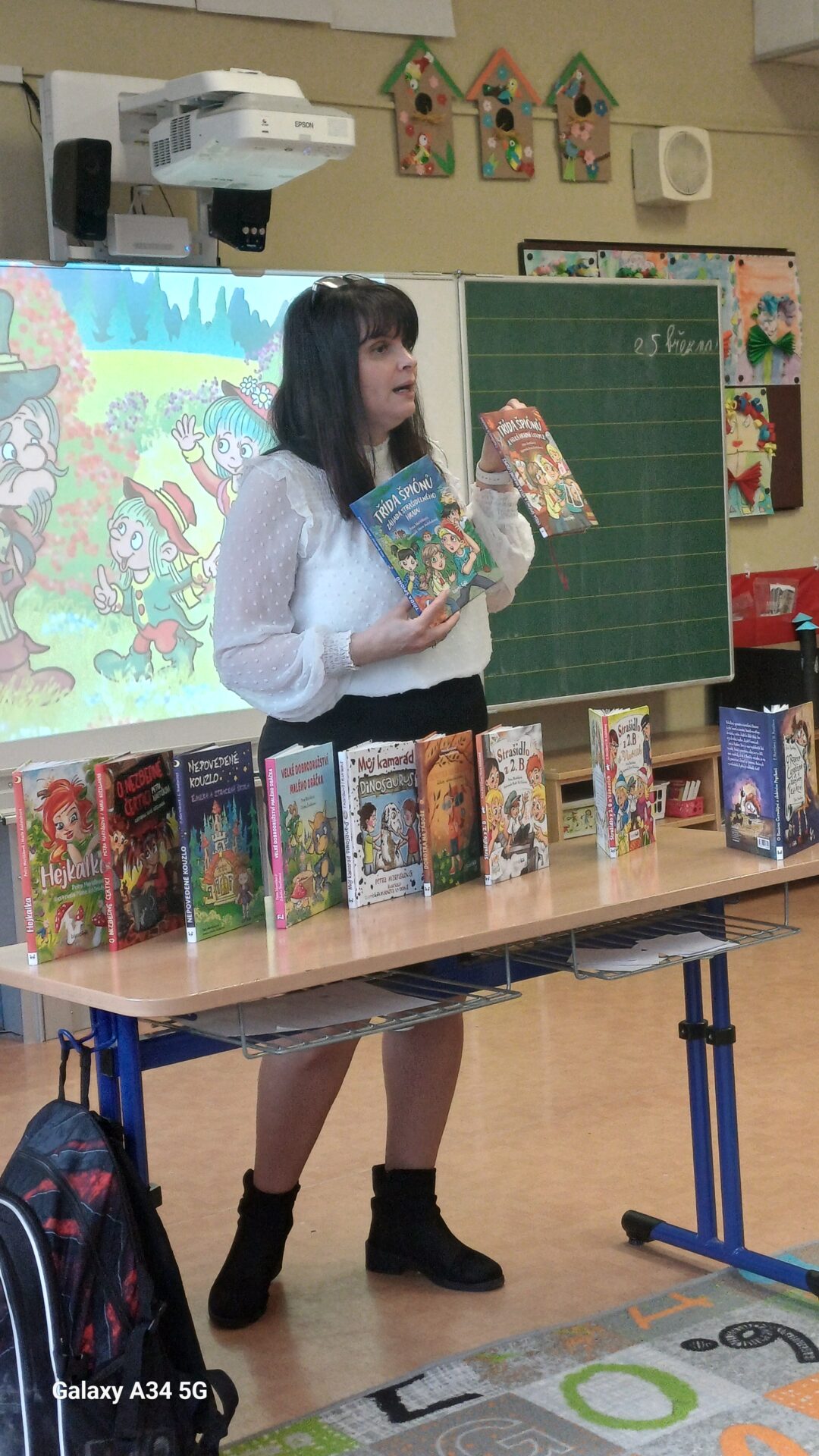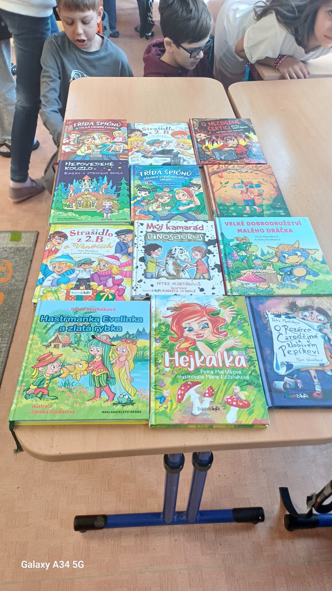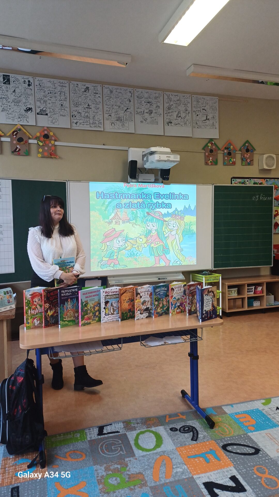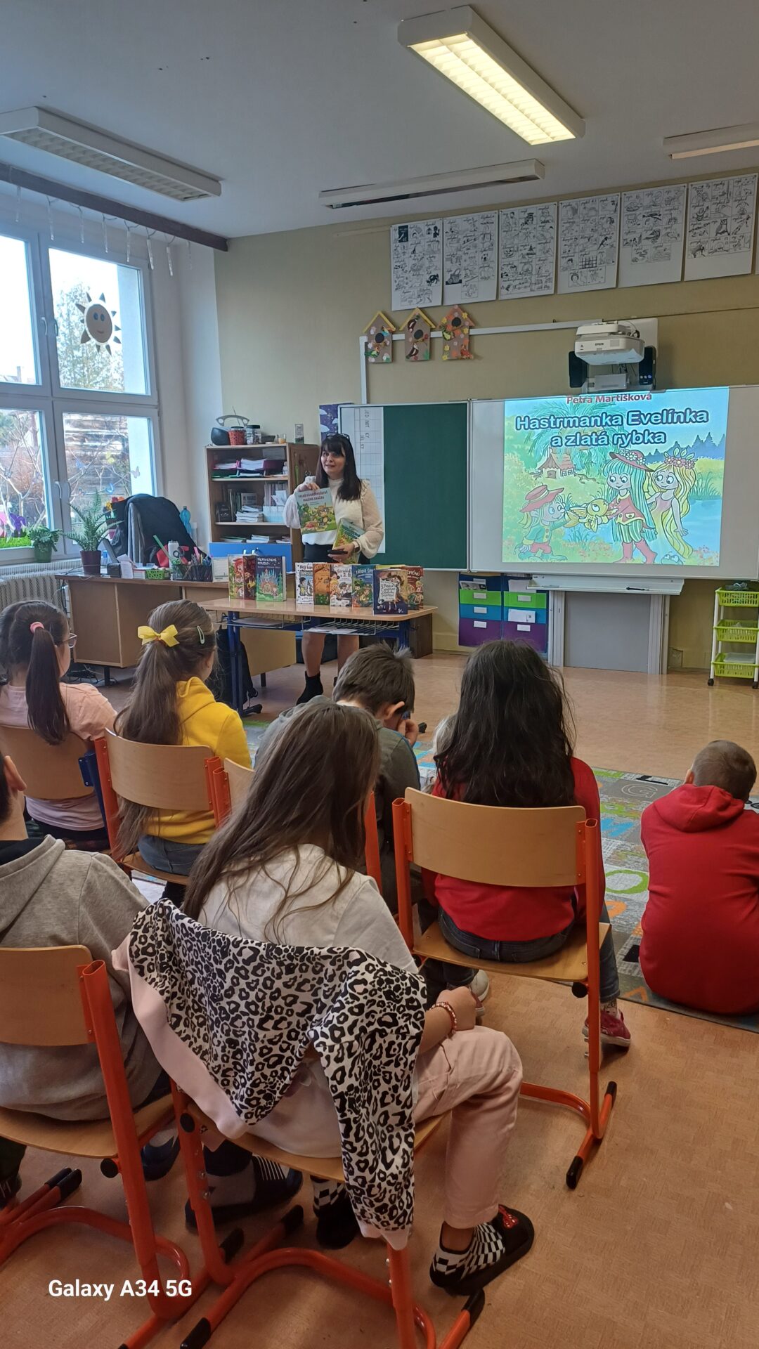 - Dnes nás navštívila spisovatelka Petra Martišková a hastrmanka Evelínka. Beseda byla zaměřena na povídání o tom, jak vzniká kniha, jak se tvoří ilustrace, na povídání o životním prostředí, na odpadky a jejich dopad na životní prostředí, jak dlouho se odpadky rozkládají, jak se třídí odpad a nakonec nám paní spisovatelka přečetla úryvek s této knížky. V úplném závěru besedy jsme si mohli prohlédnout knihy, které nám paní Martišková přivezla k prohlédnutí. Žáci 3.B