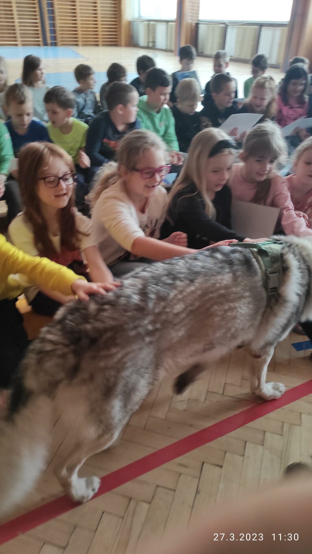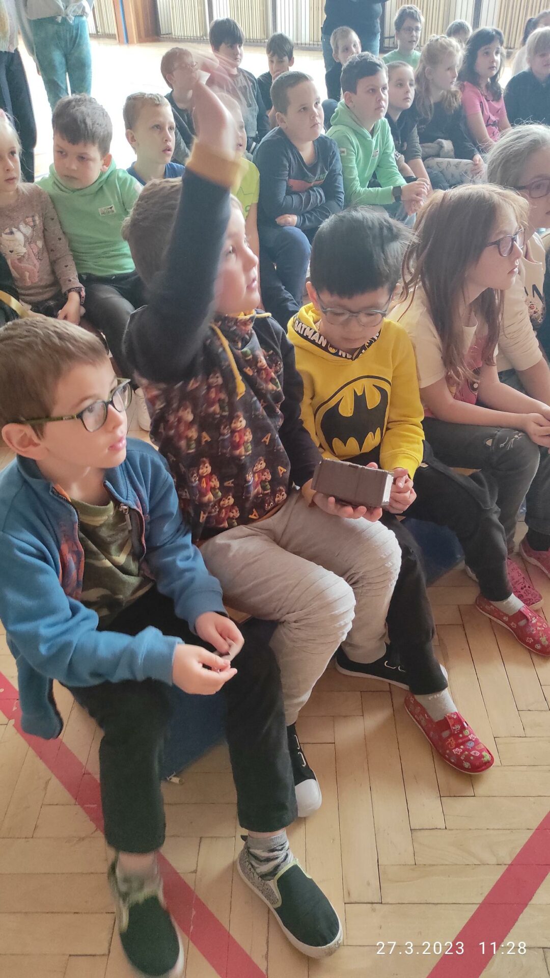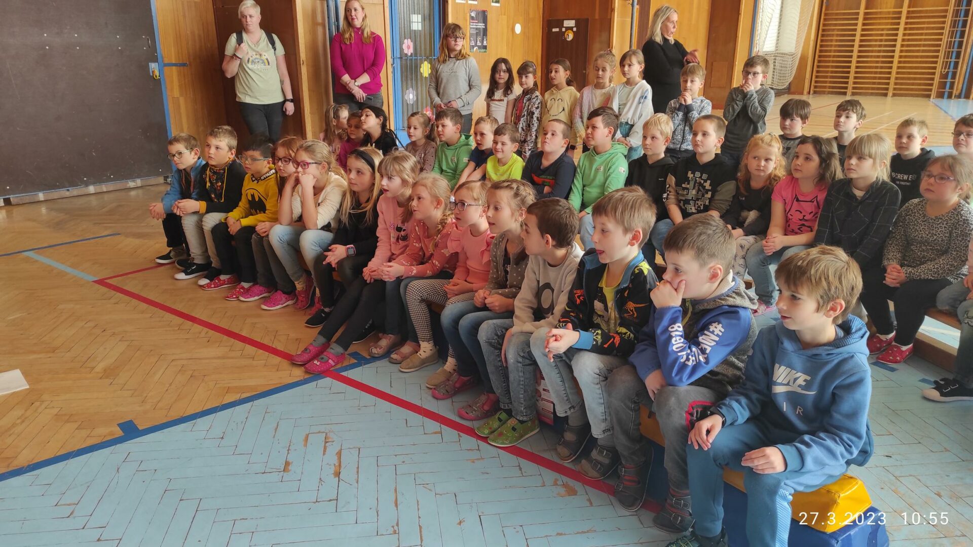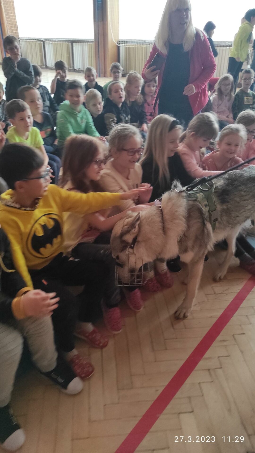 Dnes jsme se mohli setkat s jednou z našich ohrožených šelem – s vlkem. Navštívila nás Štěpánka Kadlecová, stopařka vlků z Krušných hor se svým vlčím kamarádem. Jedná se o československého vlčáka, plemeno psa vzniklé zkřížením německého ovčáka a karpatského vlka. Dozvěděli jsme se o historii vlků v naší krajině, jak se vlk chová ve volné přírodě, kde se vyskytuje a spoustu dalších informací. Na závěr jsme si ho mohli pohladit. Moc se nám to líbilo. Skřítci z 1. B
