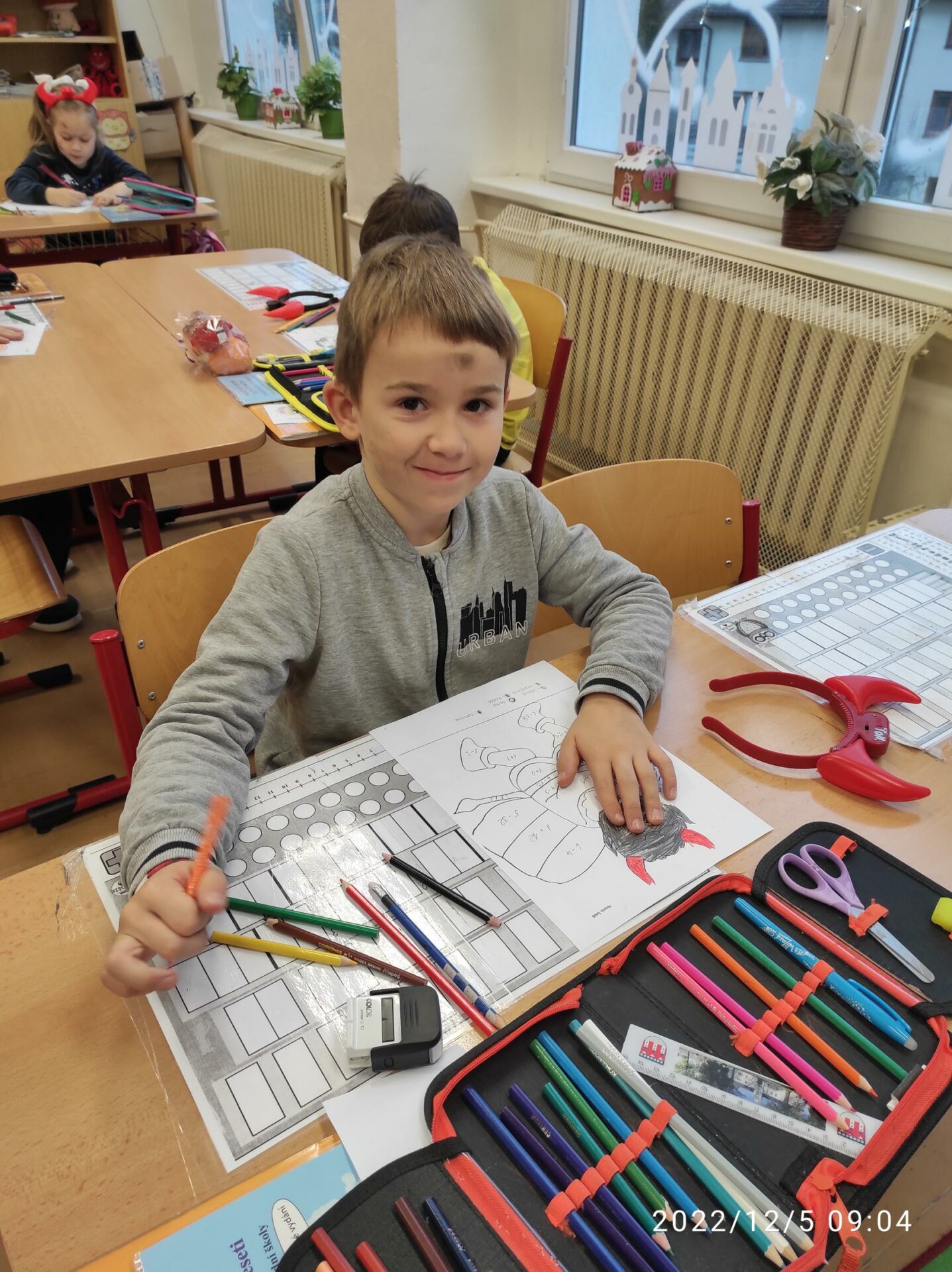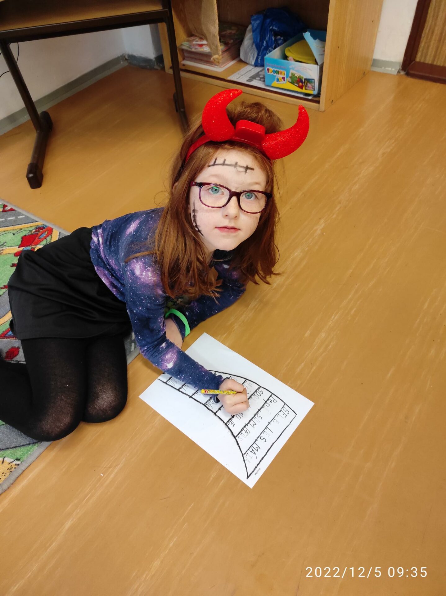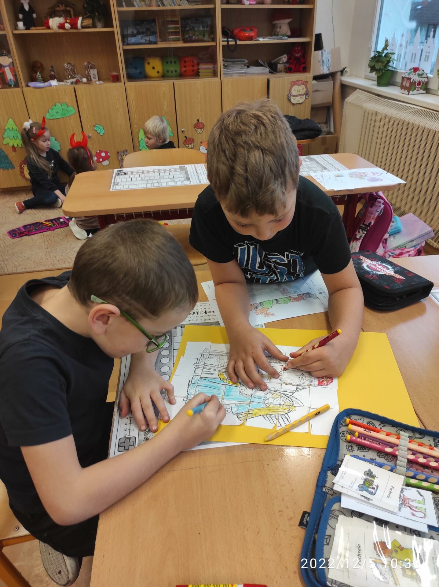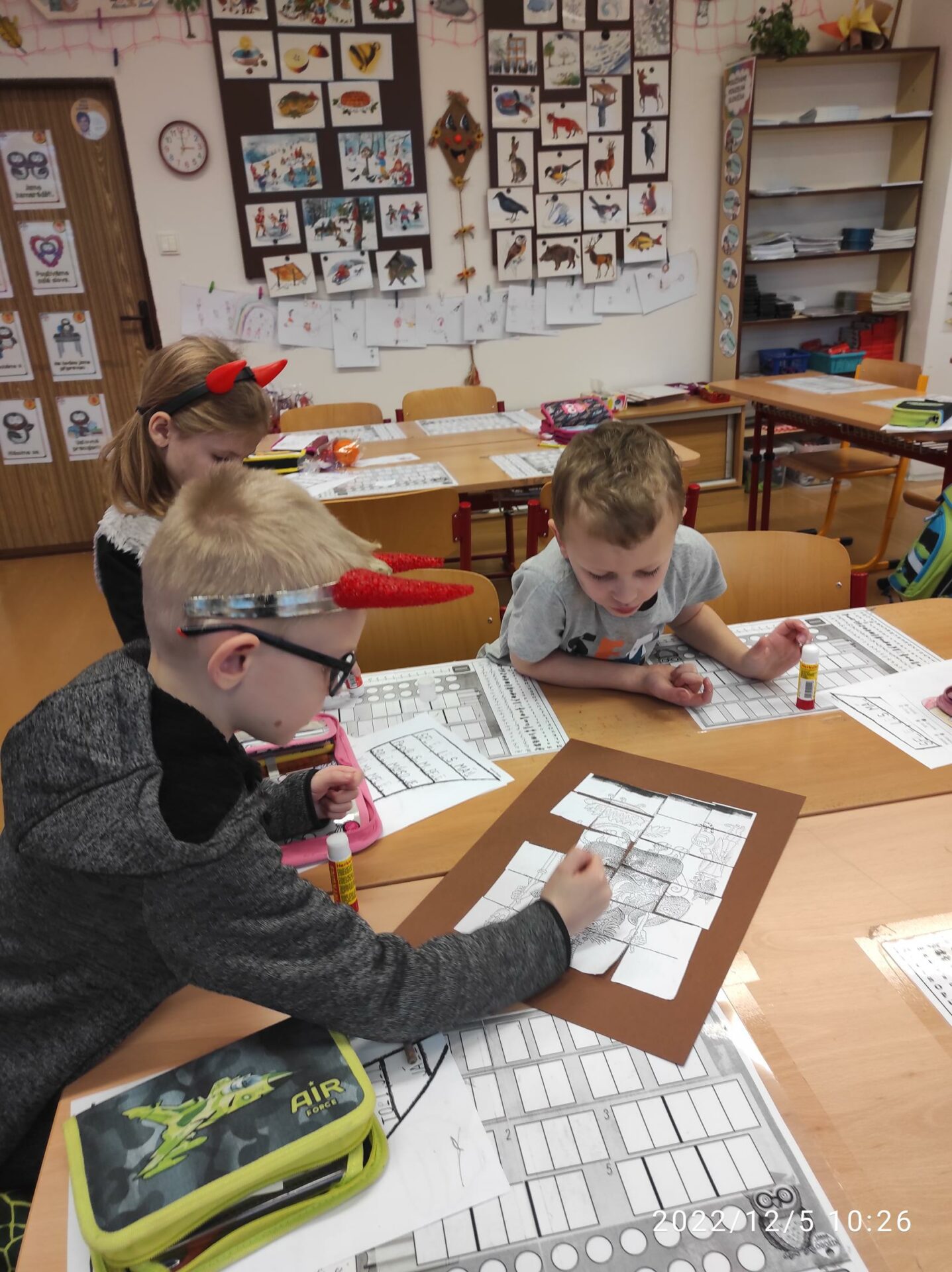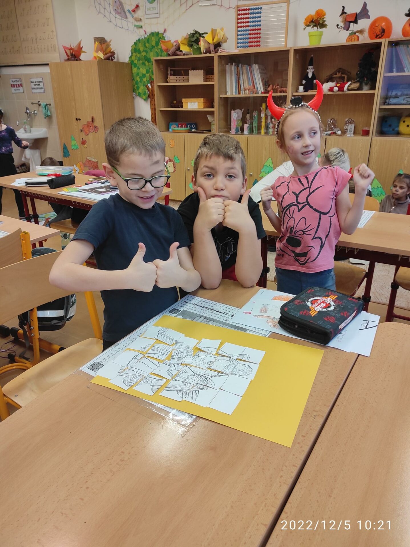 Dnešní den byl pro nás trochu neobvyklý. Měli jsme totiž „čertí školu“. I čerti a čertice potřebují umět počítat, číst a psát , aby dokázali zapsat, přečíst a spočítat hříšné dušičky. A protože v tento den chodí Mikuláš, Čert a Andělé, navštívili i naší čertí třídu. Někteří neposední čertíci uronili i slzičky a slíbili, že se opravdu polepší. Tak jim to budeme věřit.