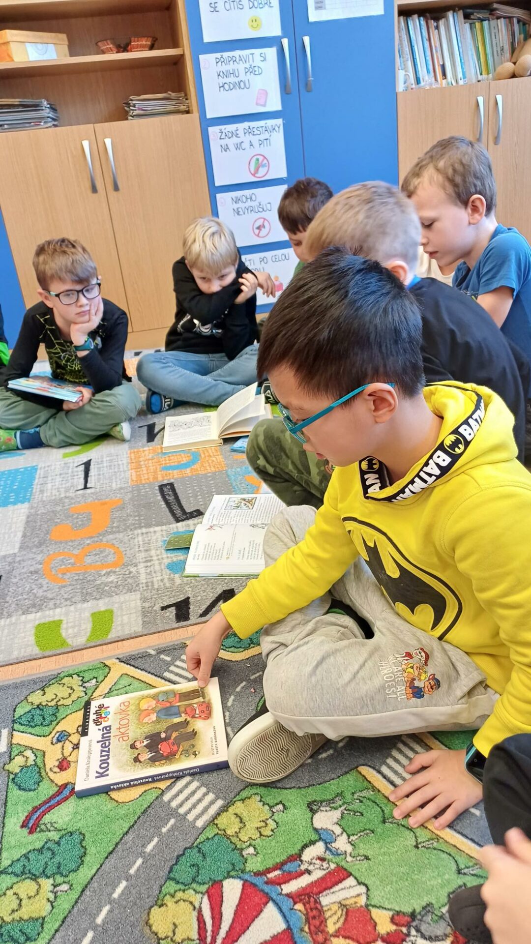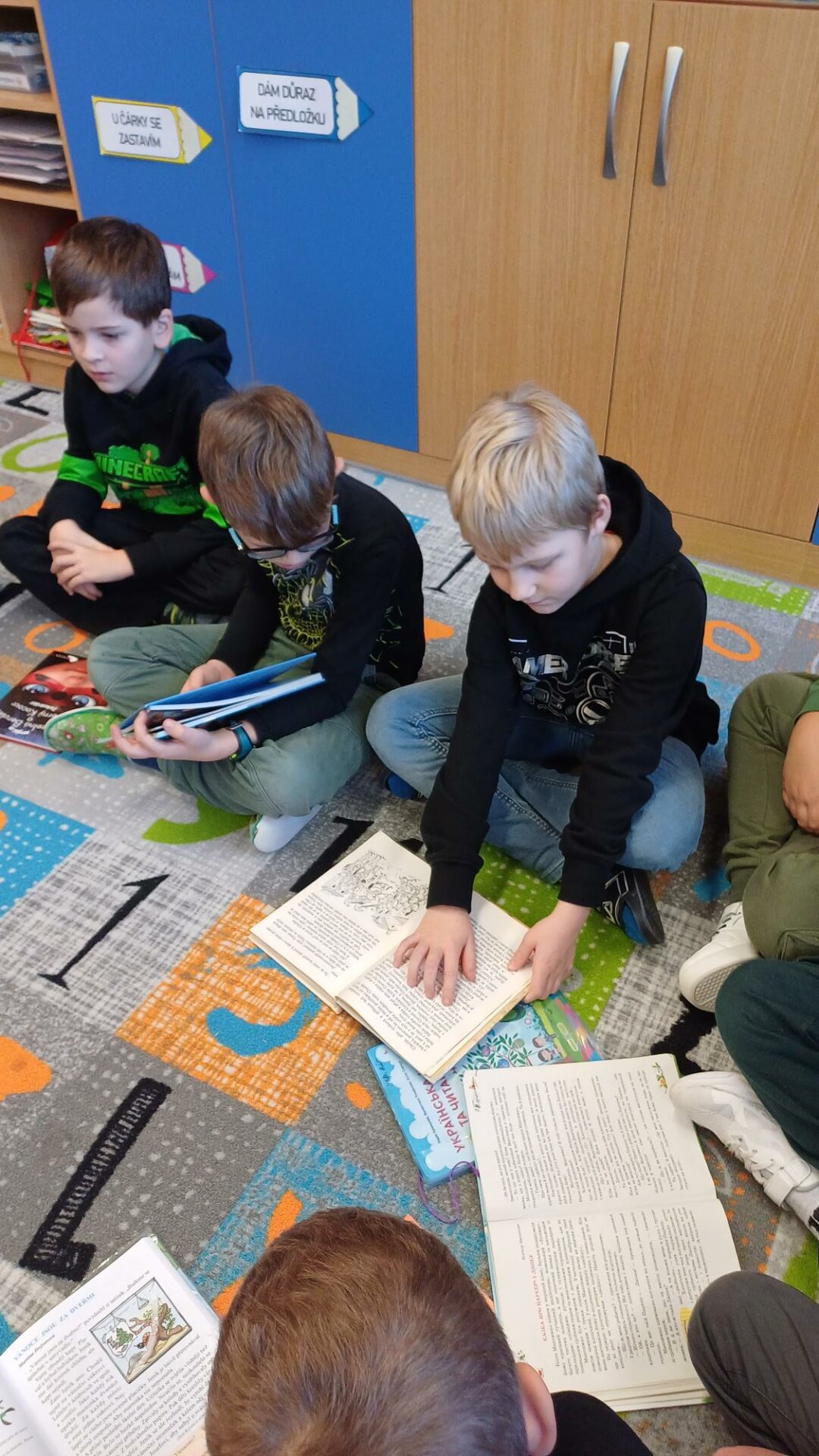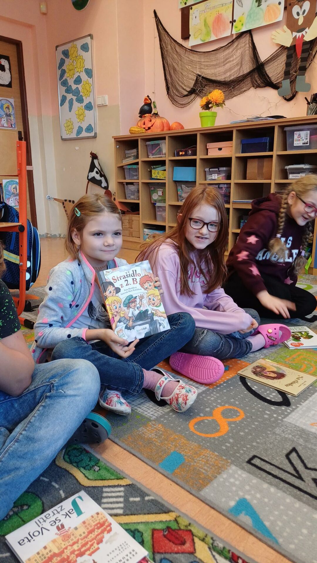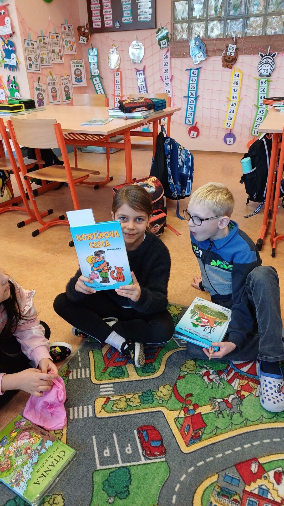 Našimi čtenářskými dílnami ve třídě navazujeme na návštěvy v knihovně. Dnes jsme si vzájemně představovali knihy, které čteme doma. Lesní skřítci z 2.B Další zprávyVýstava Večerníček slaví 60 let19. 9. 2025Přání na prázdniny od 3.B😉27. 6. 2025Poslední školní den 🤩27. 6. 2025Rozloučení se školou na bowlingovém turnaji třídy26. 6. 2025Olympijský běh živě18. 6. 2025Olympijský běh 18.6.202518. 6. 2025