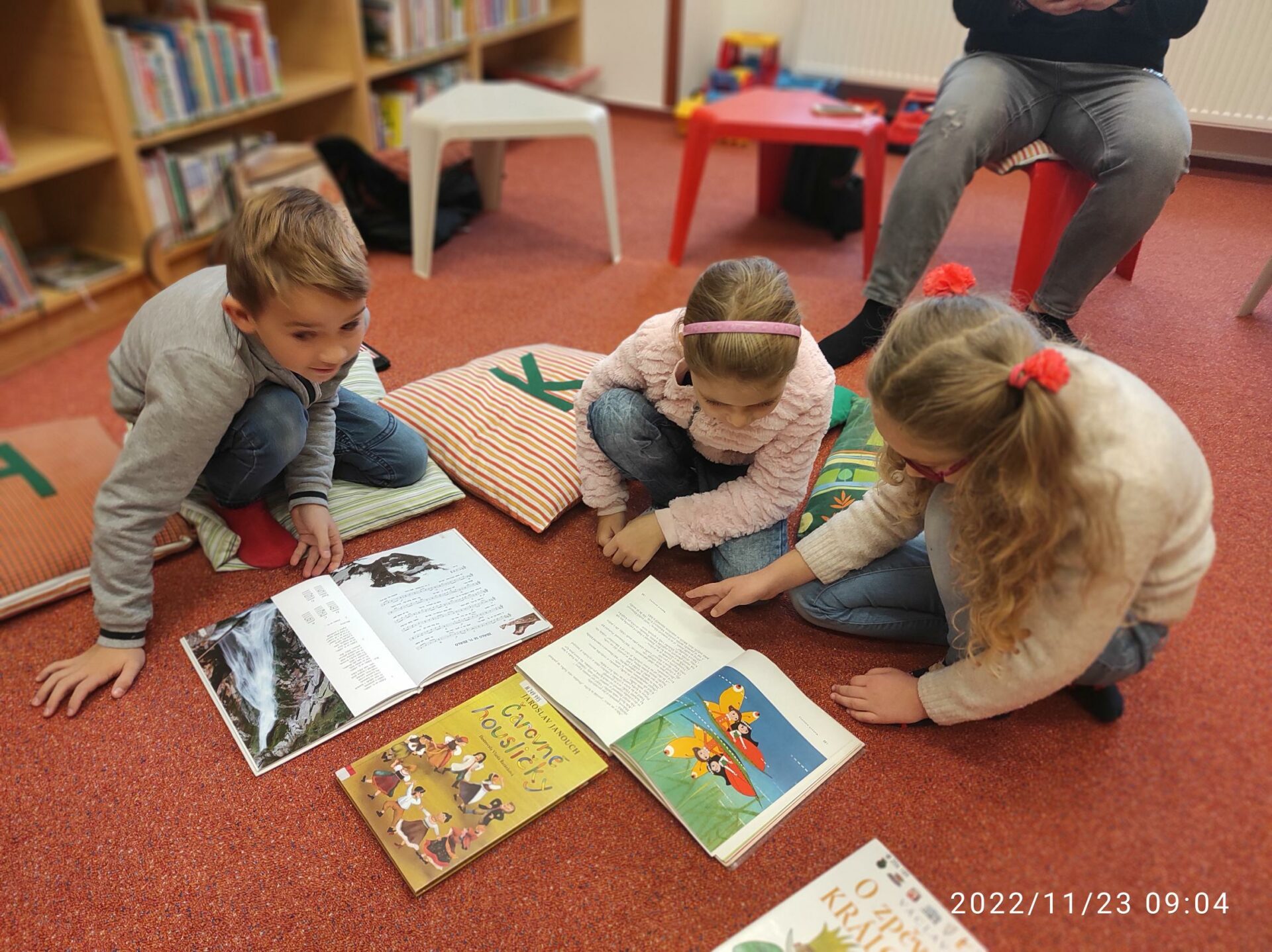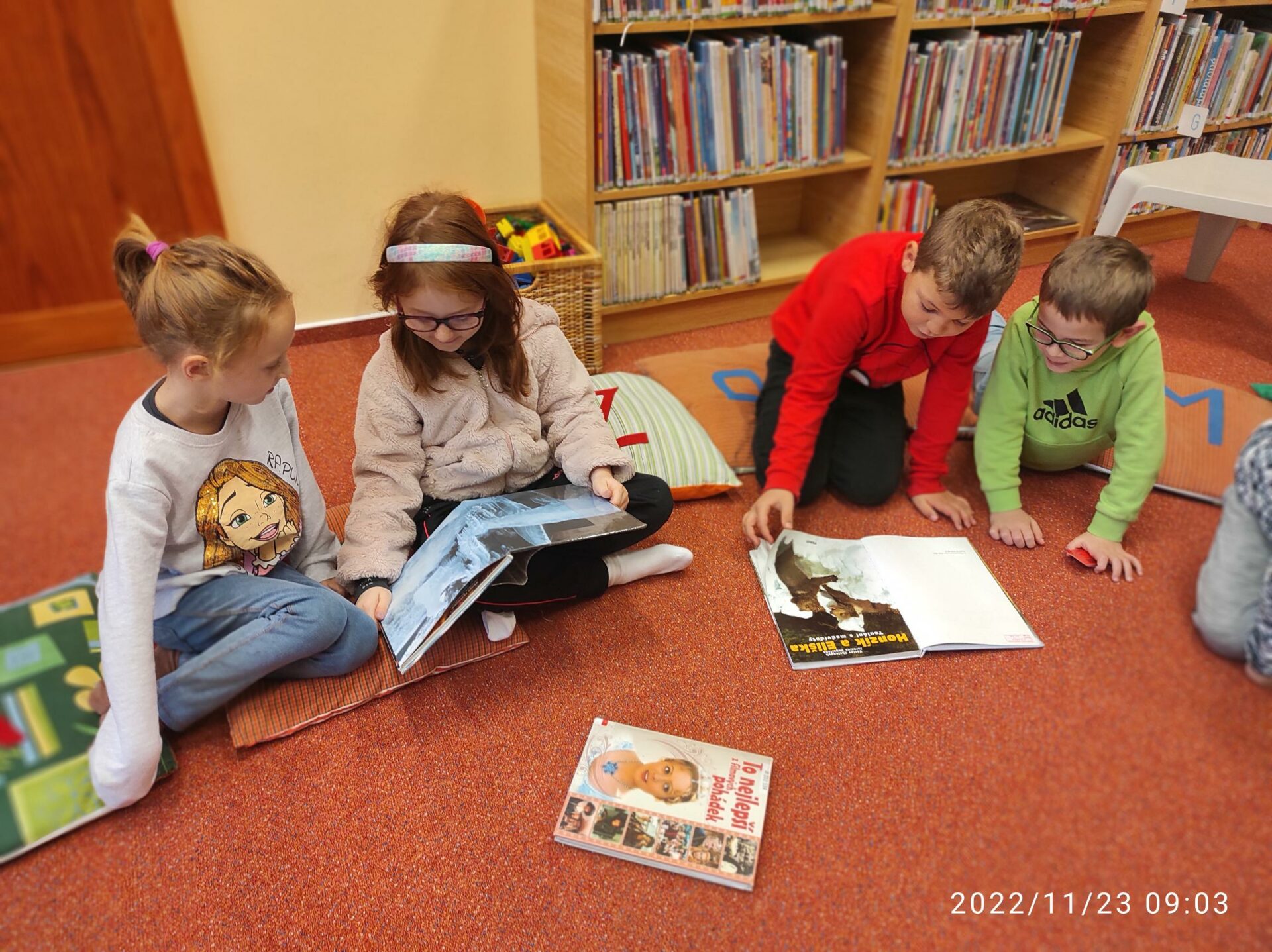 Podruhé jsme navštívili knihovnu v Lounech. Protože se blíží Vánoce, což je čas pohádek, bylo i naše druhé setkání s knížkami zaměřeno na pohádky. Tentokrát jsme je poznávali pomocí písniček. Lesní skřítci a víly z 1.B
