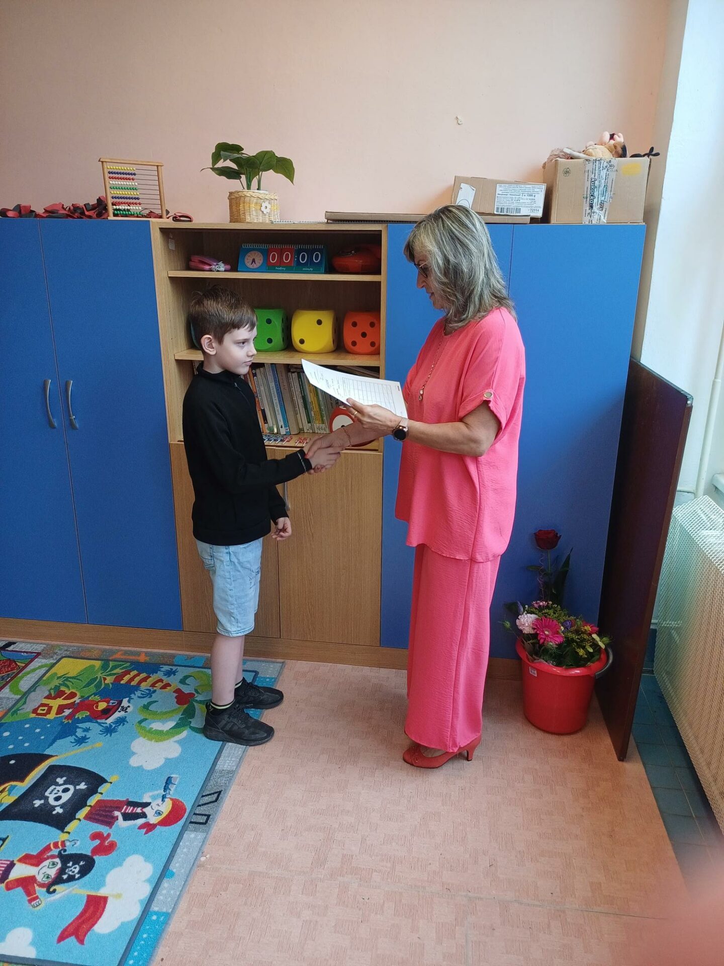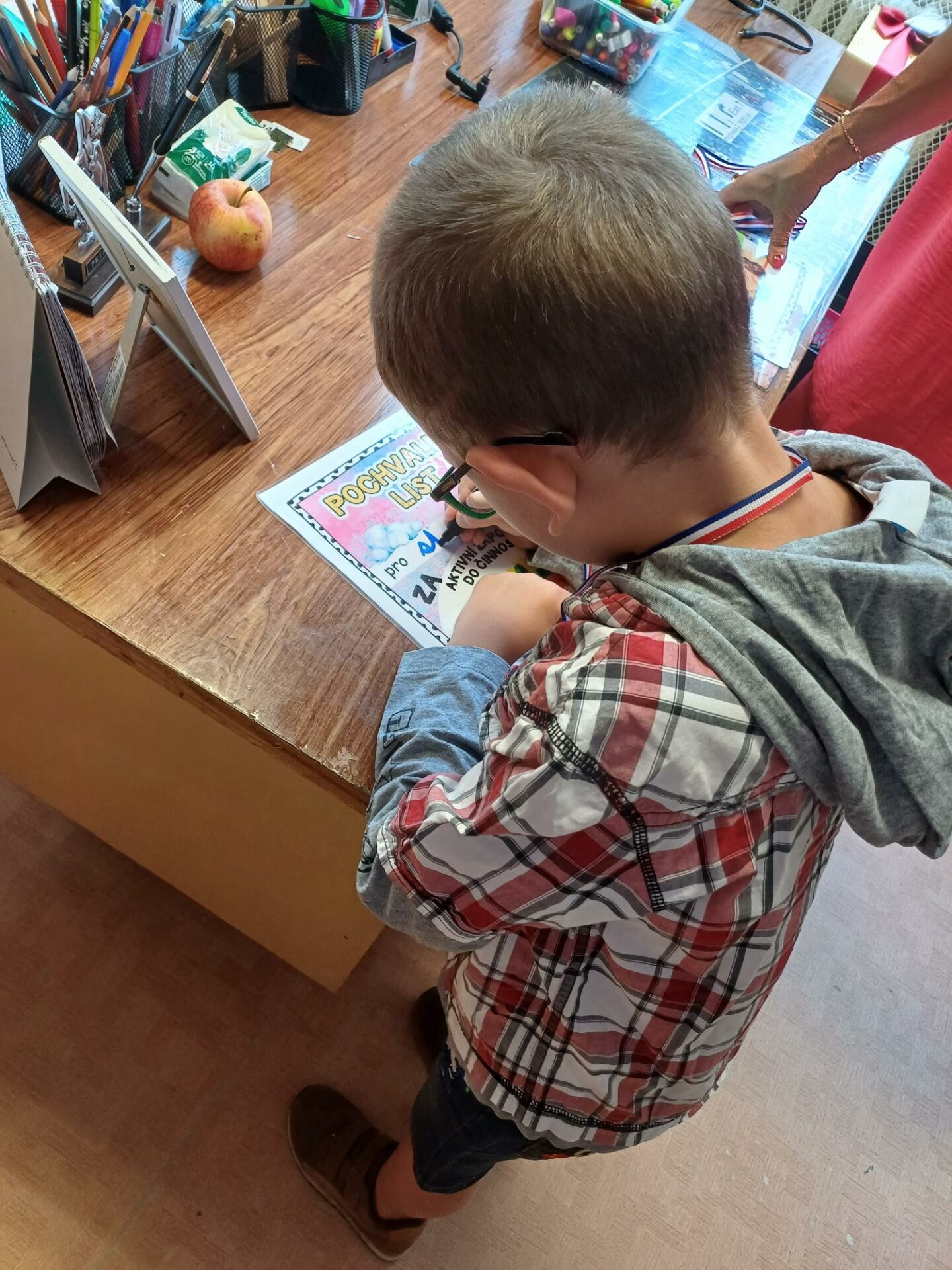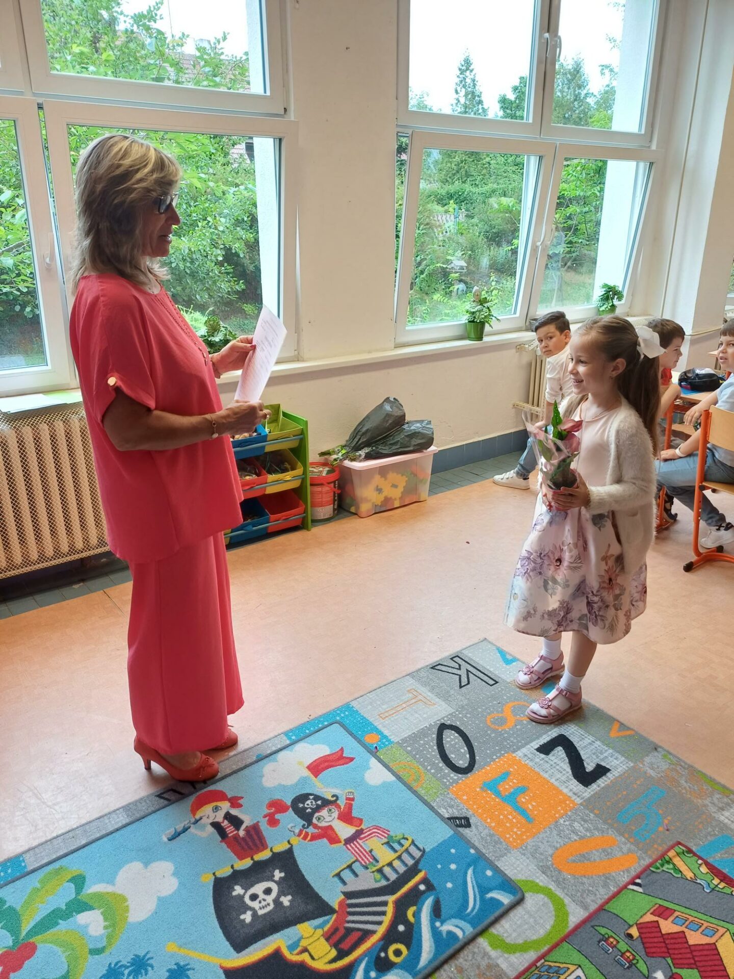 Školní rok utekl jako voda! Není to tak dávno, kdy jsme takto seděli v lavicích na začátku školního roku a nevěděli, co nás čeká. Teď už to víme! Za celý školní rok jsme udělali velký kus práce. Naučili jsme se číst, psát, počítat, ale nejen to! Poznali jsme nové kamarády, nové prostředí. Prostě jsme pochopili, že v bezva kolektivu se to lépe táhne a vše se lépe zvládne! Takže přejeme všem ostatním dětem, učitelům, učitelkám, vychovatelkám, ale i ženám v kuchyni , které se staraly o to, abychom neměli hlad(paní kuchařky), ve třídách bylo uklizeno (paní uklízečky), nikdo cizí se do školy nedostal (pan vrátný), aby jsme nespadli ze židle (pan školník), prostě všem zaměstnancům školy KRÁSNÉ PROŽITÍ PRÁZDNIN!!! Lesní skřítci z 1.B