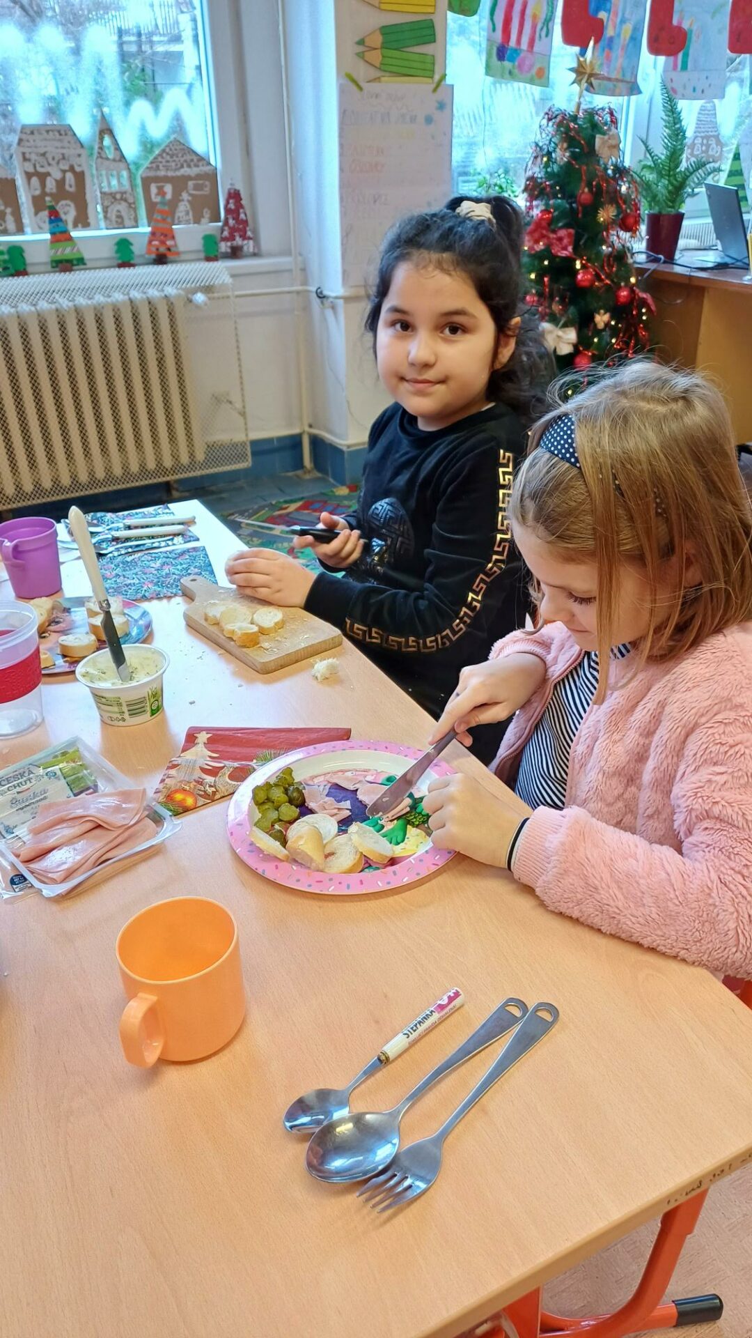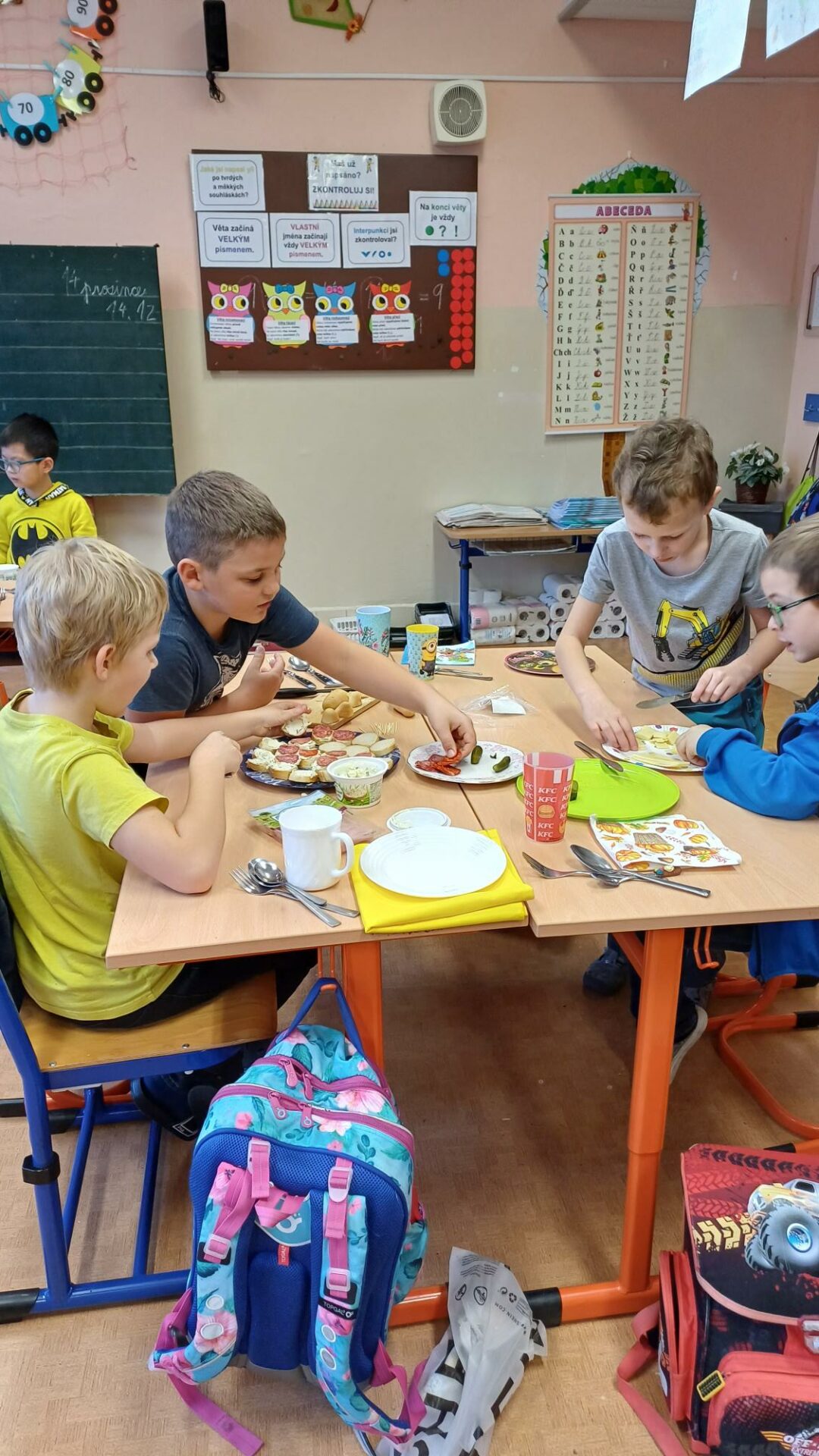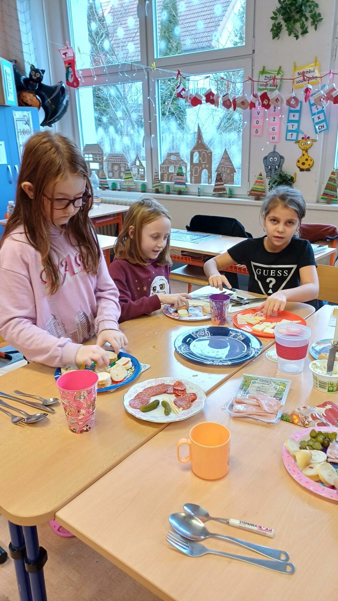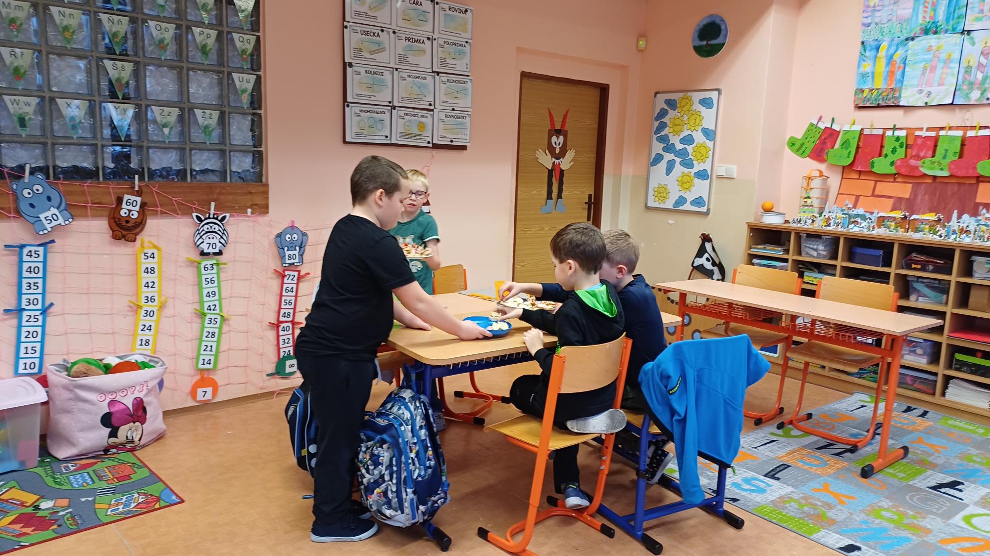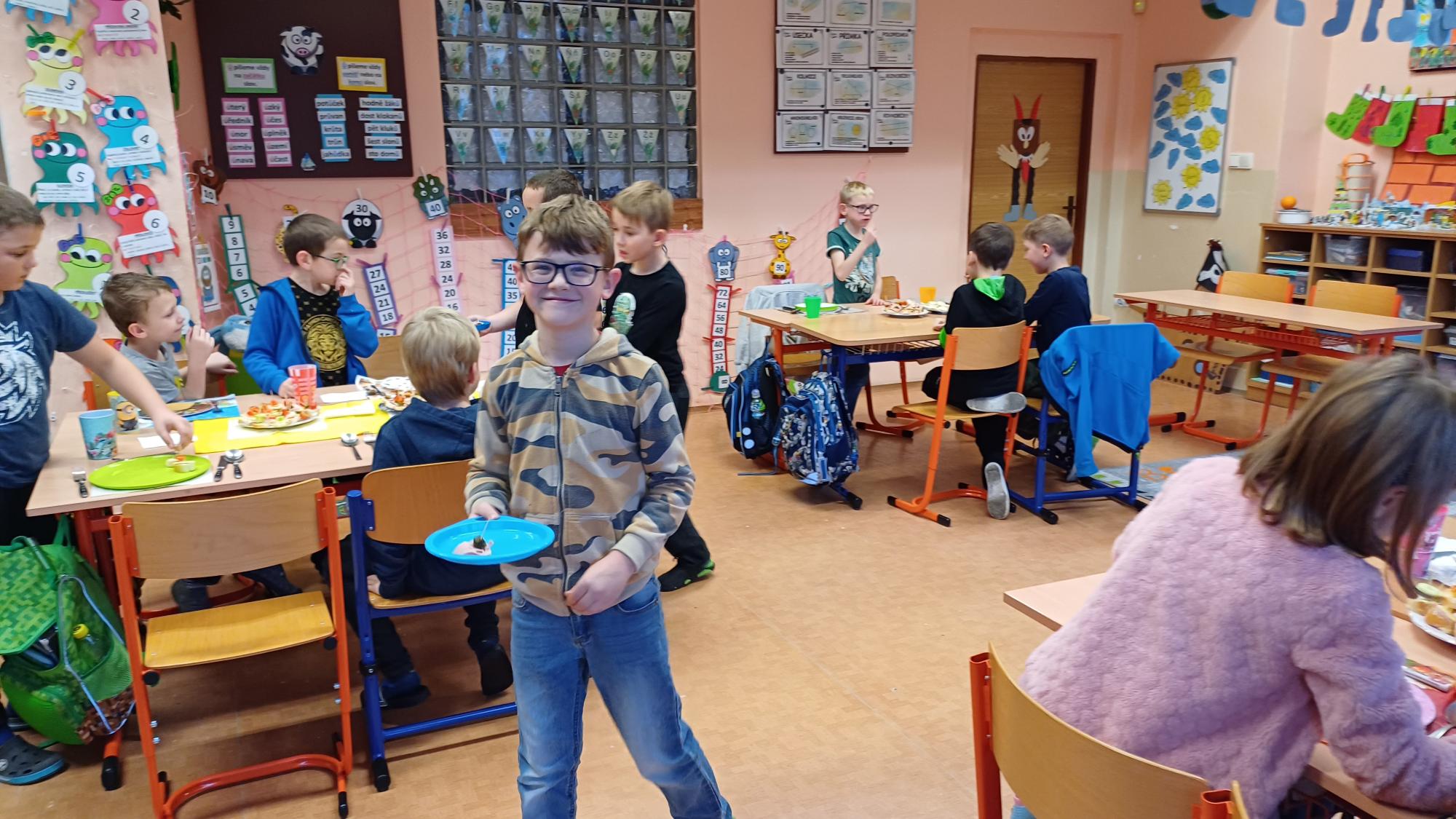 Jak správně stolovat, jak hezky připravit stůl ke slavnostním příležitostem nebo co použít na jednoduché občerstvení jsme si dnes vyzkoušeli v rámci pracovních činností. Každá skupina dostala potraviny, z kterých jsme měli připravit pohoštění pro ostatní žáky. Zahráli jsme si na známou soutěž s názvem MasterChef. Na závěr jsme vyhodnotili nejlepší tým. Lesní skřítci z 2.B