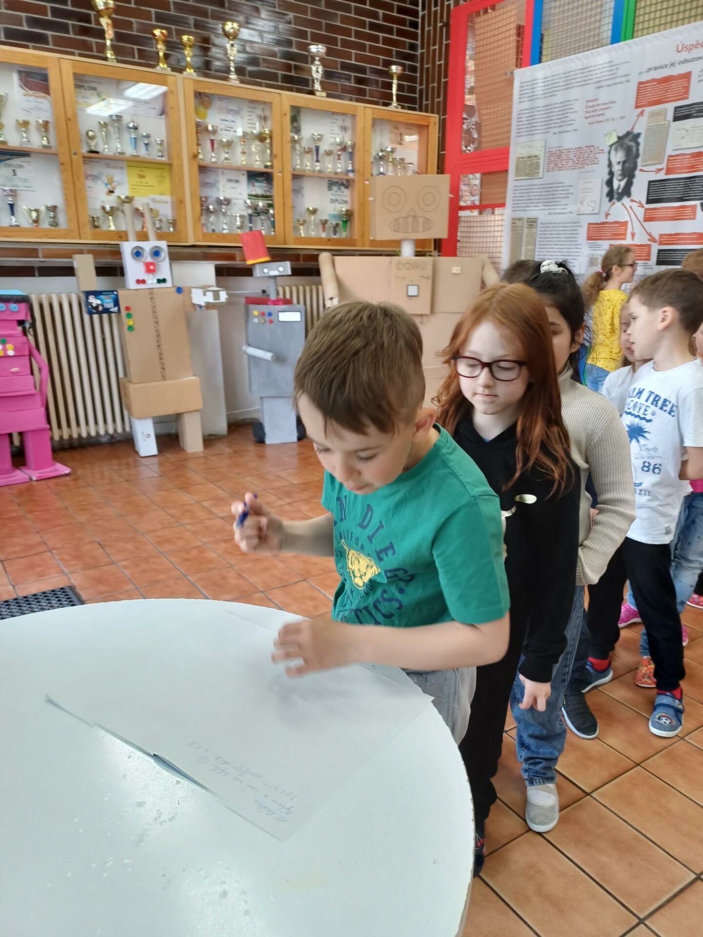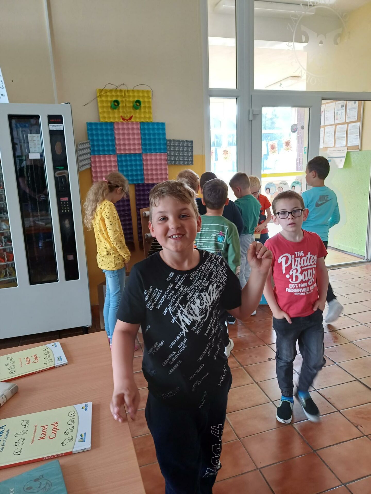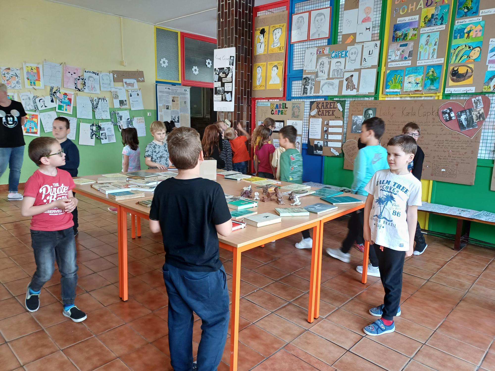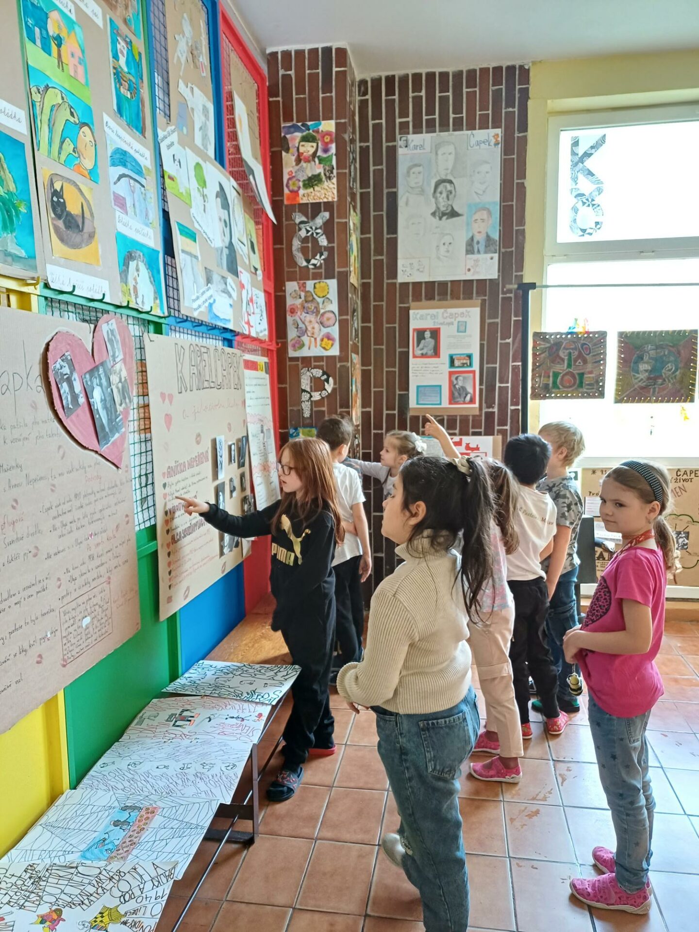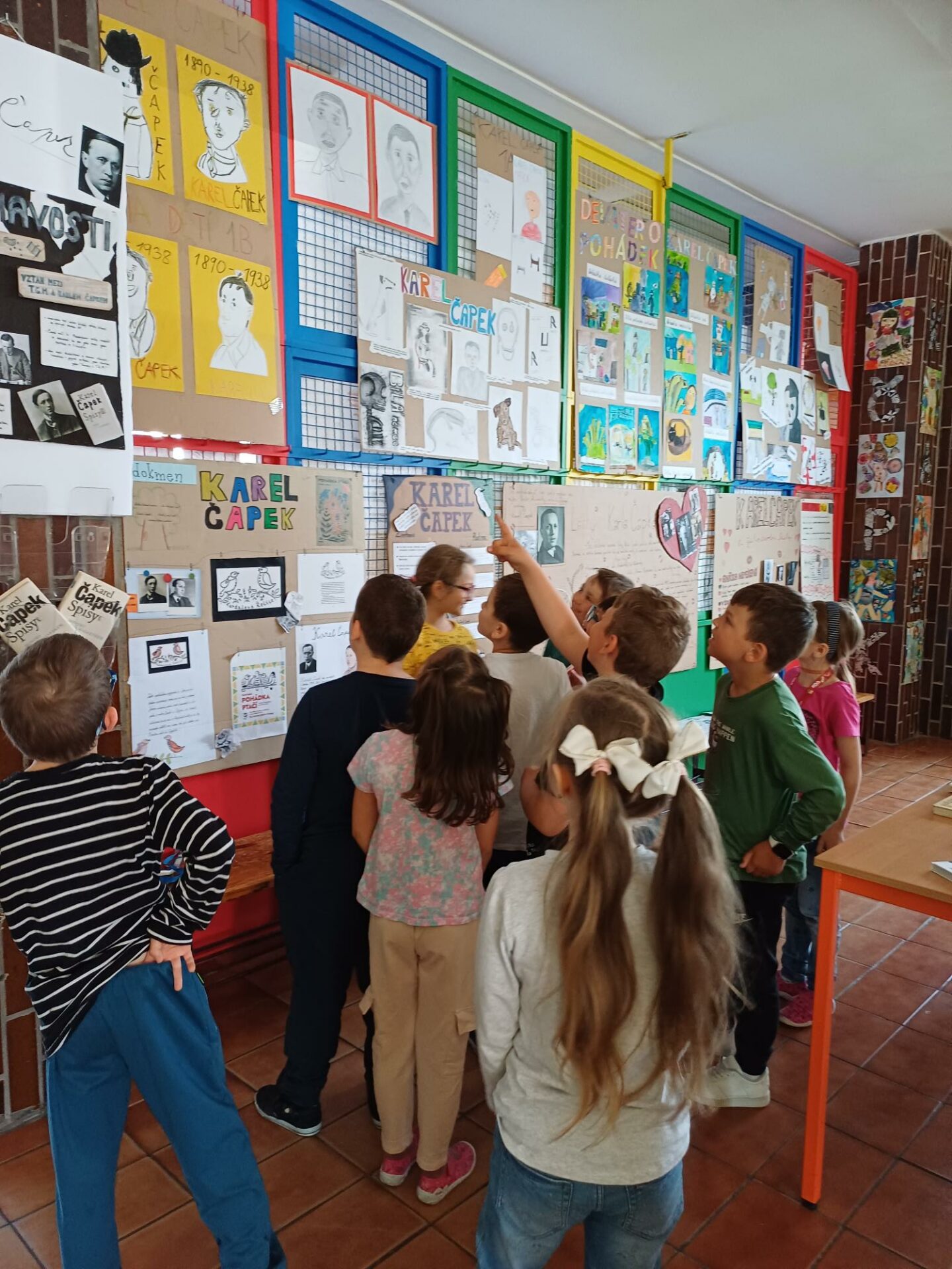 Dnes jsme si prohlédli výstavu, která probíhá v těchto dnech na naší škole a zapsali jsme se do Knihy návštěv. Moc se nám líbila a obdivovali jsme, co všechno dokázali naši spolužáci z ostatních tříd vytvořit. I my jsme přispěli svými výtvarnými pracemi. Hlavně nás potěšilo, že naše skupinová práce ( portréty Karla Čapka) byla vybrána jako upoutávka na pozvánce k této výstavě. Lesní skřítci z 1.B