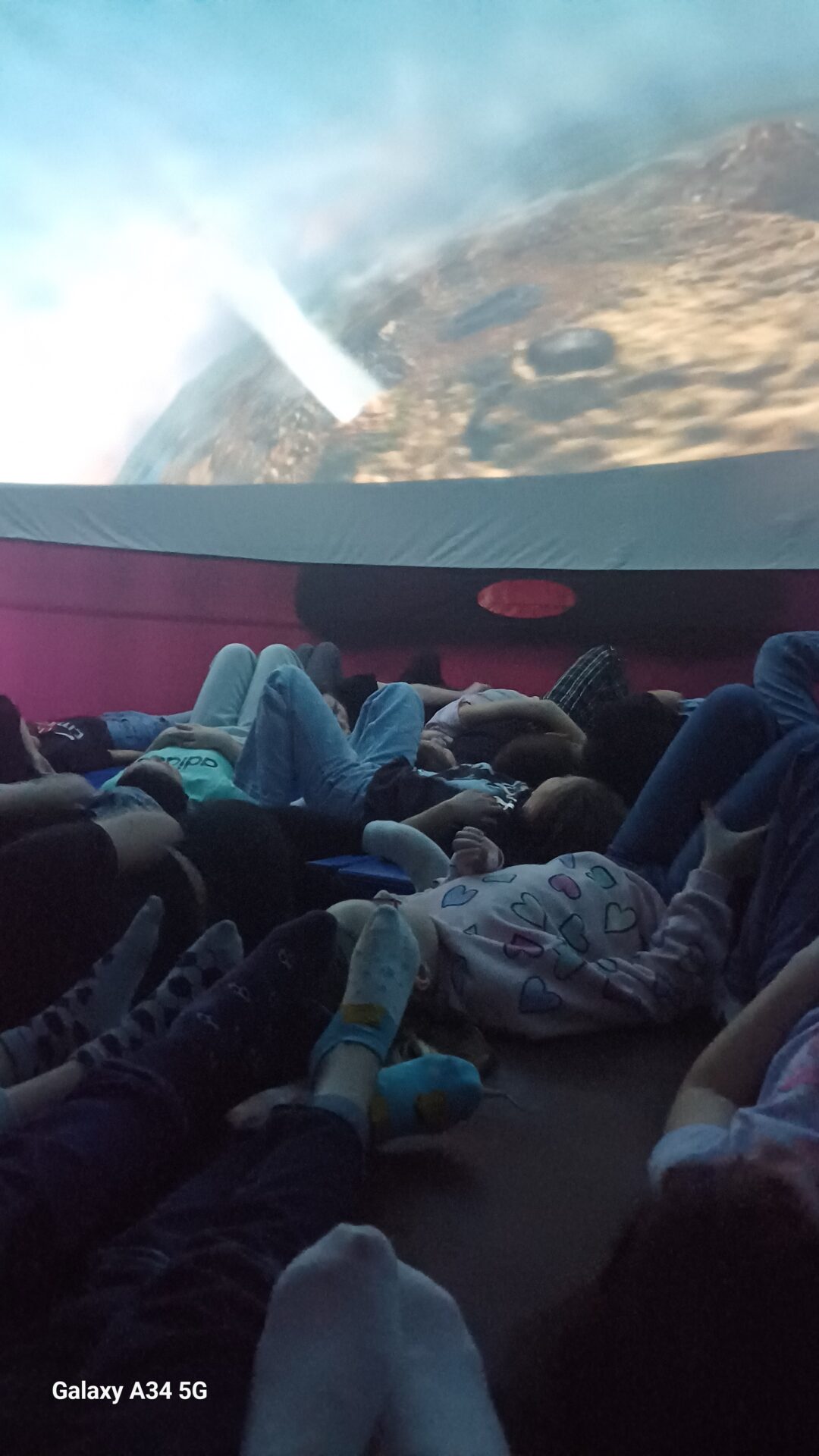 22.3. je Světový den vody. Proč je voda pro nás tolik důležitá, jaká jsou skupenství vody, co způsobuje znečišťování řek, vodních toků, jak vzniká gejzír, krápníky a mnoho dalších informací nám velmi pěknou interaktivní formou přiblížilo mobilní planetárium. Nejen že jsme se něco nového dozvěděli, ale hlavně jsme si upevnili znalosti o vodě z hodin prvouky.