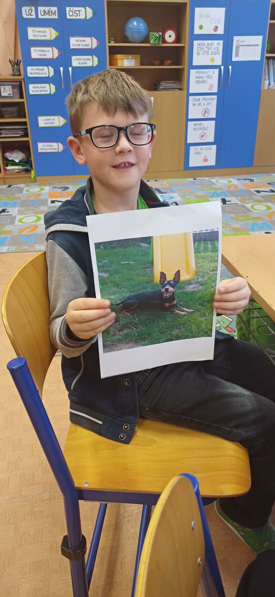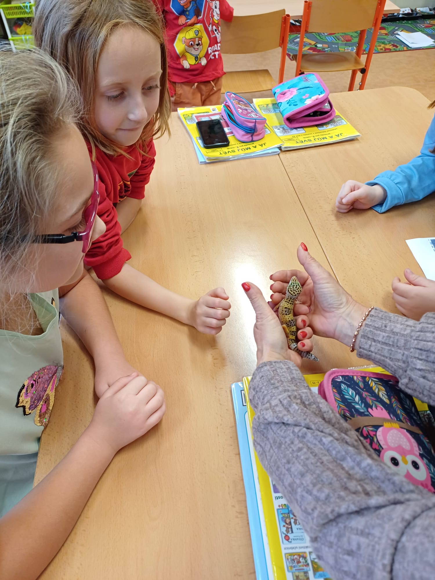 Tématem dnešní hodiny prvouky byli NAŠI DOMÁCÍ MAZLÍČCI. Jelikož nejde všechny Ty naše chlupaté, opeřené, holé či krunýřové mazlíčky přinést do školy, ukázali jsme si je aspoň na fotkách v mobilech, osobně či na videu. Lesní skřítci z 2.B