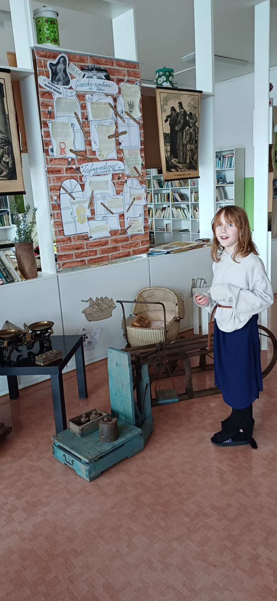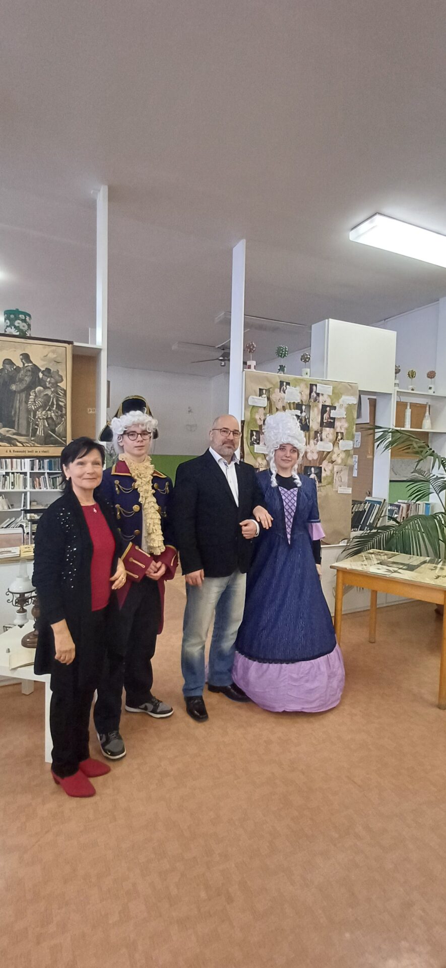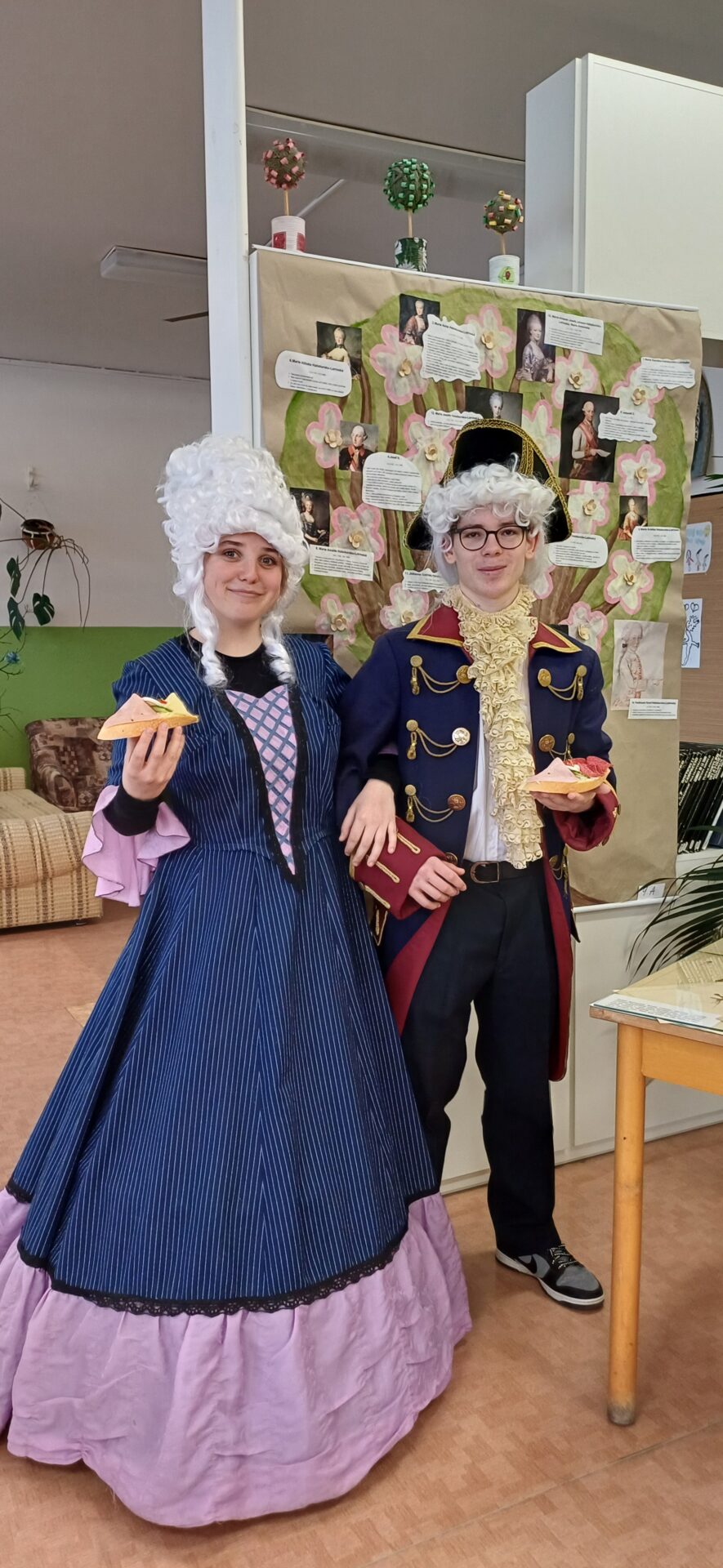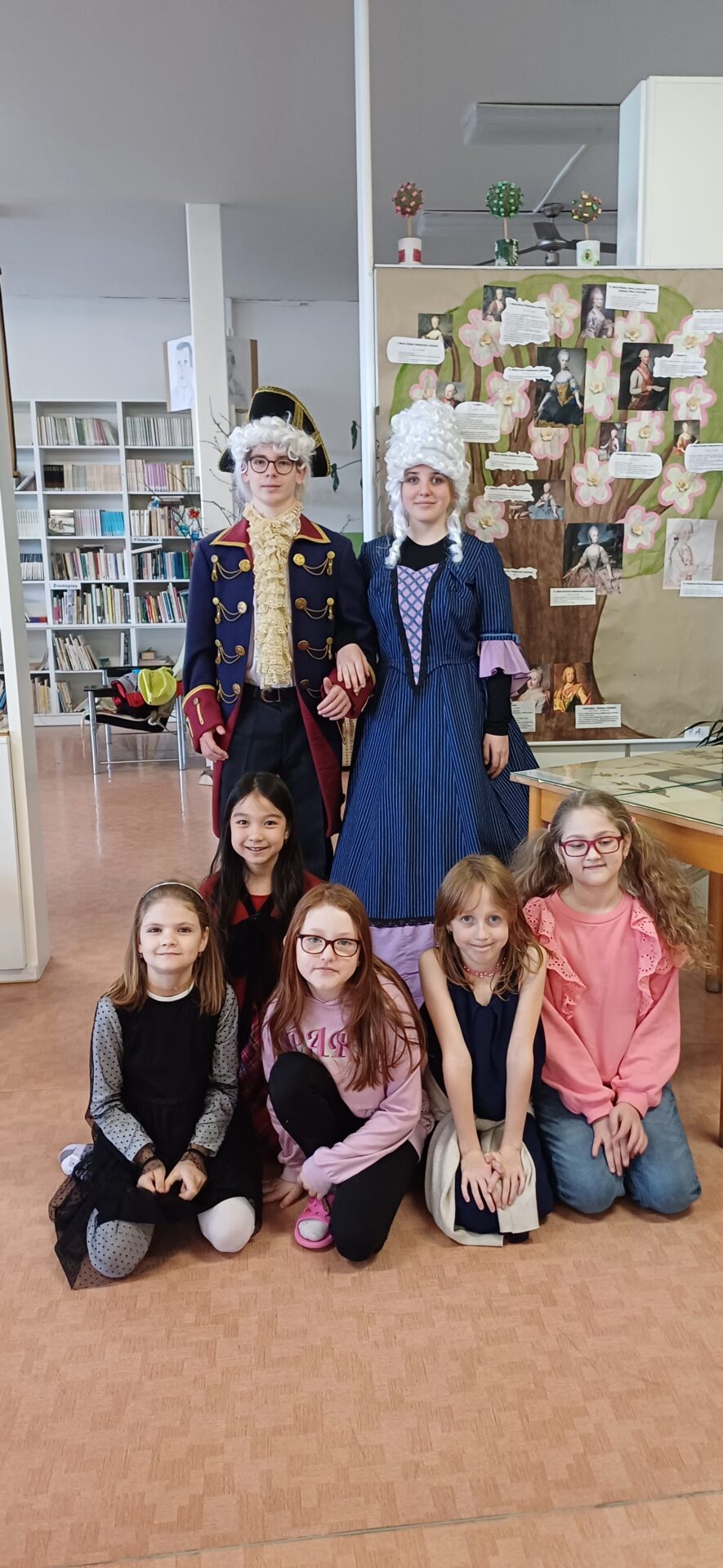 Vzácná návštěva z císařského dvora zavítala ve čtvrtek 4.4. do naší školy. Přivítali jsme Marii Terezii a jejího syna Josefa II. Po přivítání jsme shlédli výstavu s názvem Od doby Marie Terezie až po současnost. Lesní skřítci z 2.B