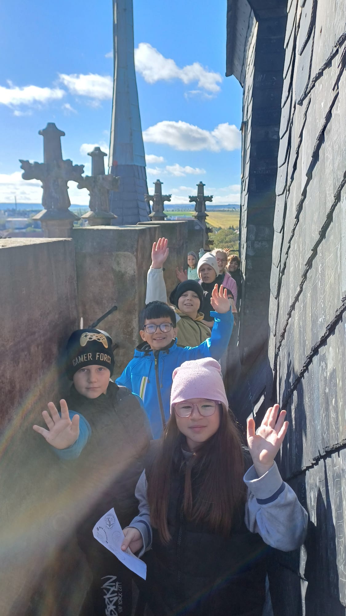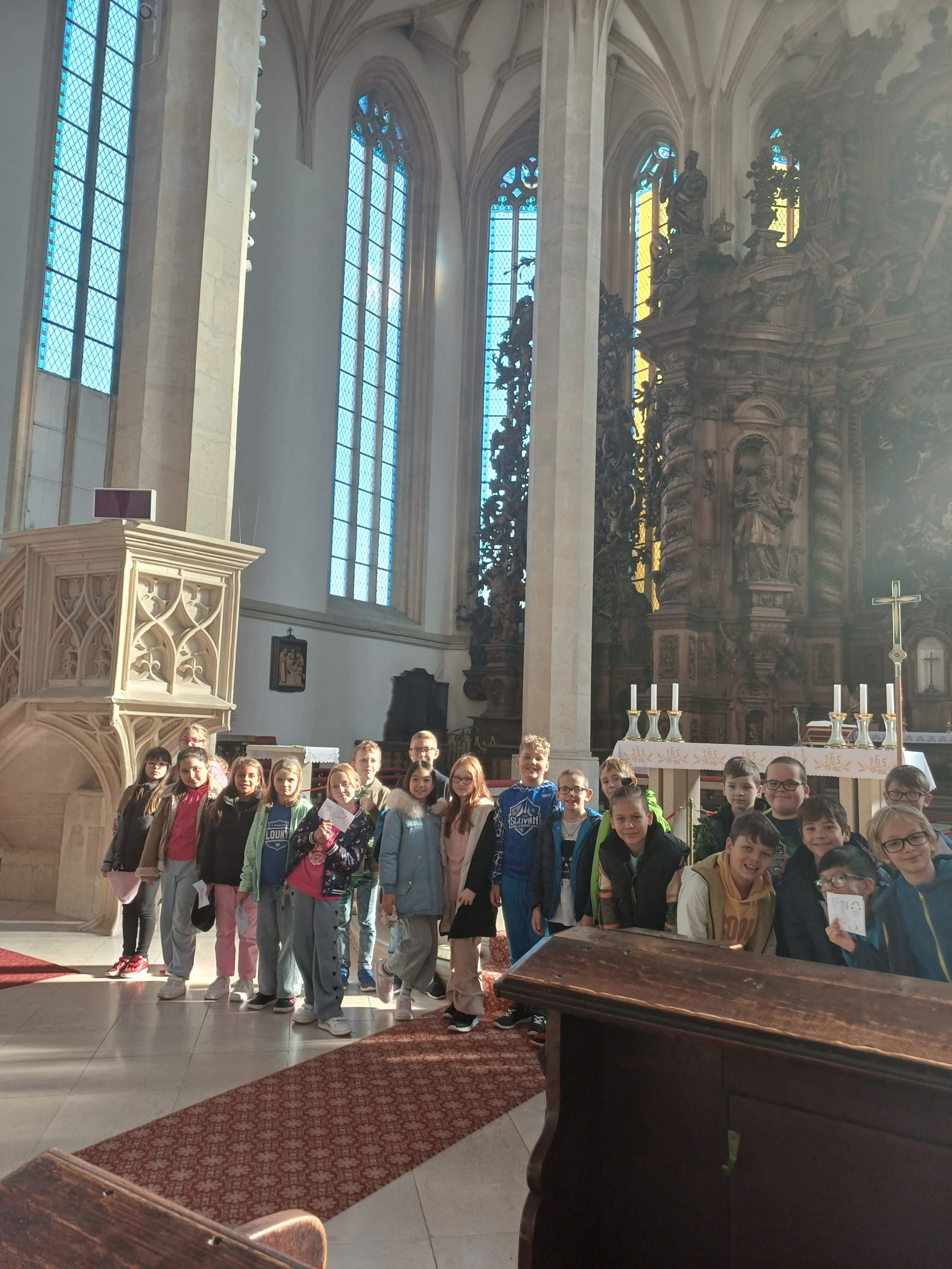 Dnešní den jsme v rámci prvouky navštívili Městské informační centrum v Lounech, kostel sv. Mikuláše a samozřejmě jsme nevynechali ani výstup na věž. Dozvěděli jsme se spoustu nových informací, třeba k čemu takové informační centrum slouží, co vše se zde dá zařídit, dozvědět atd. V kostele jsme shlédli největší nepozlacený dřevěný oltář v Evropě a při výstupu na věž jsme počítali schody, což je jeden z úkolů, které budeme ve škole plnit. Protože dnes bylo počasí opravdu nádherné, z věže se nám otevřel krásný pohled na naše město Louny. Exkurzi jsme si užili a zjistili mnoho naučných informací, které využijeme v prvouce. Žáci 3.B