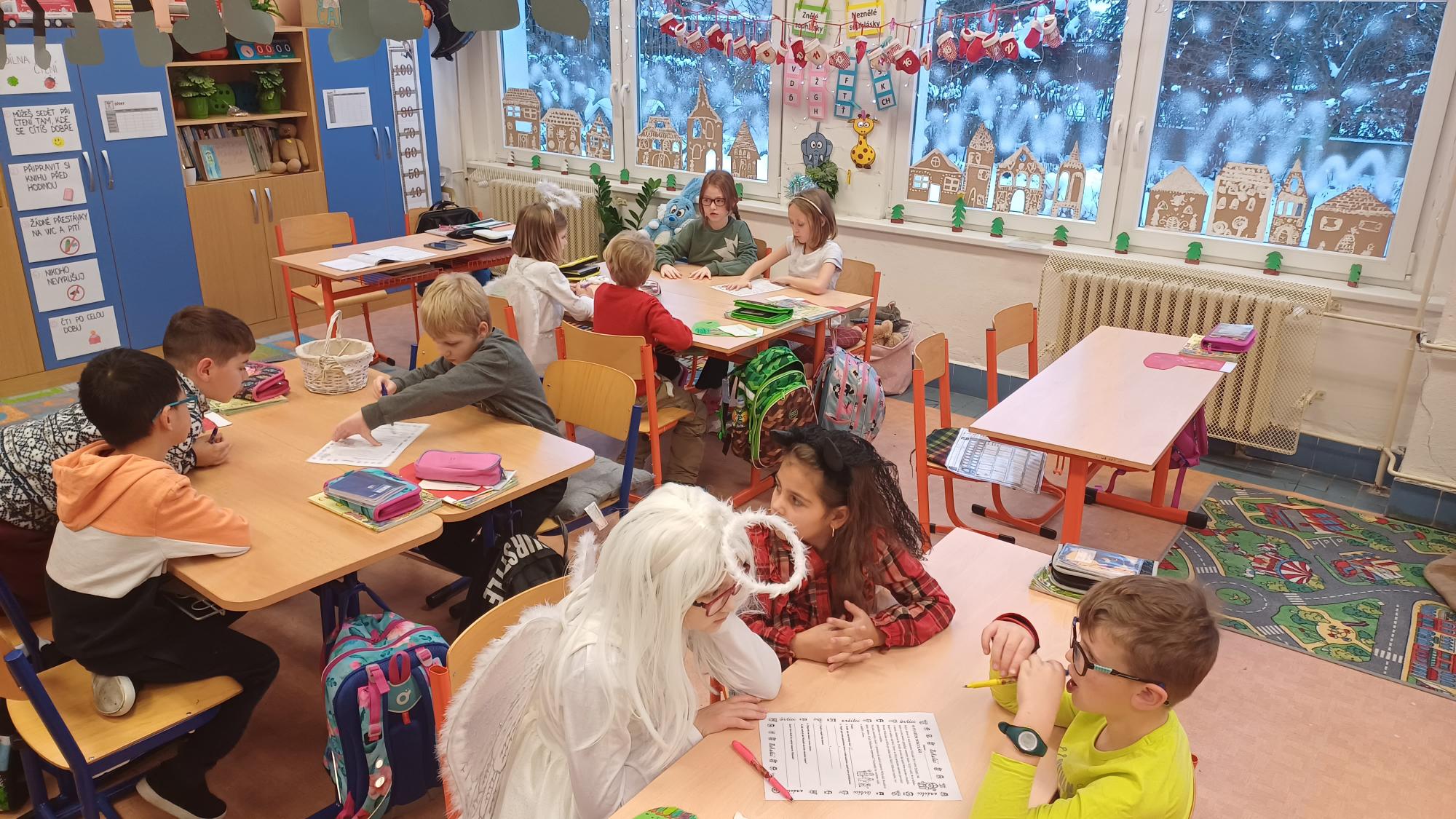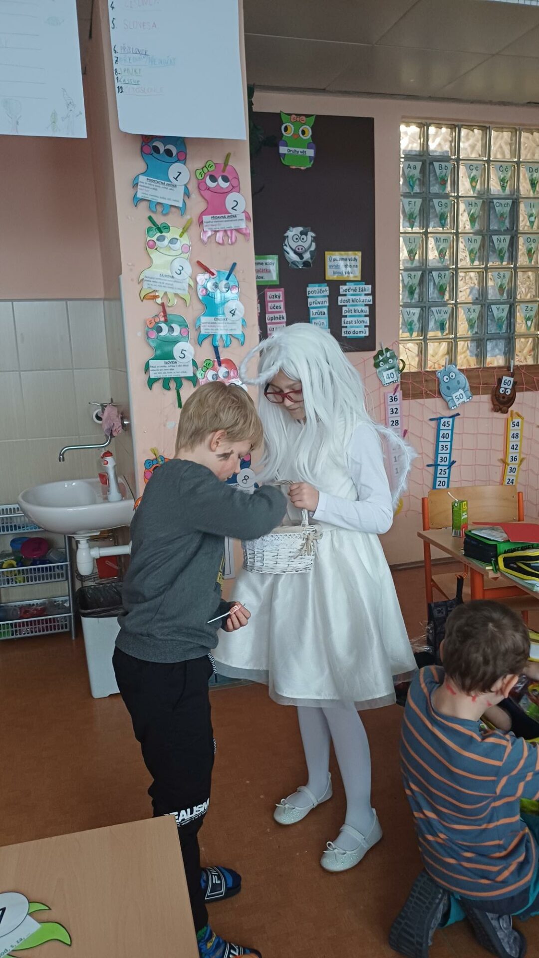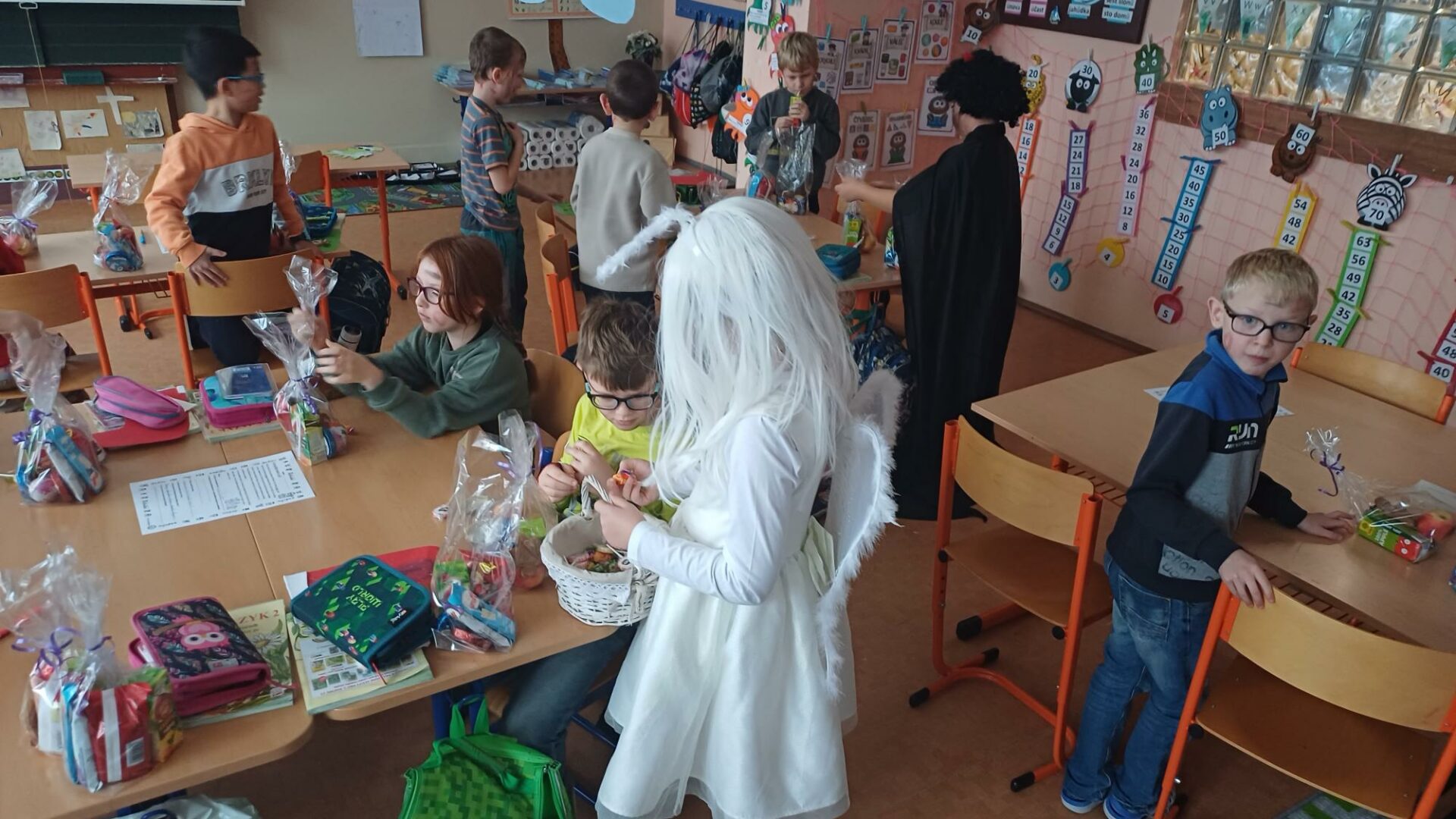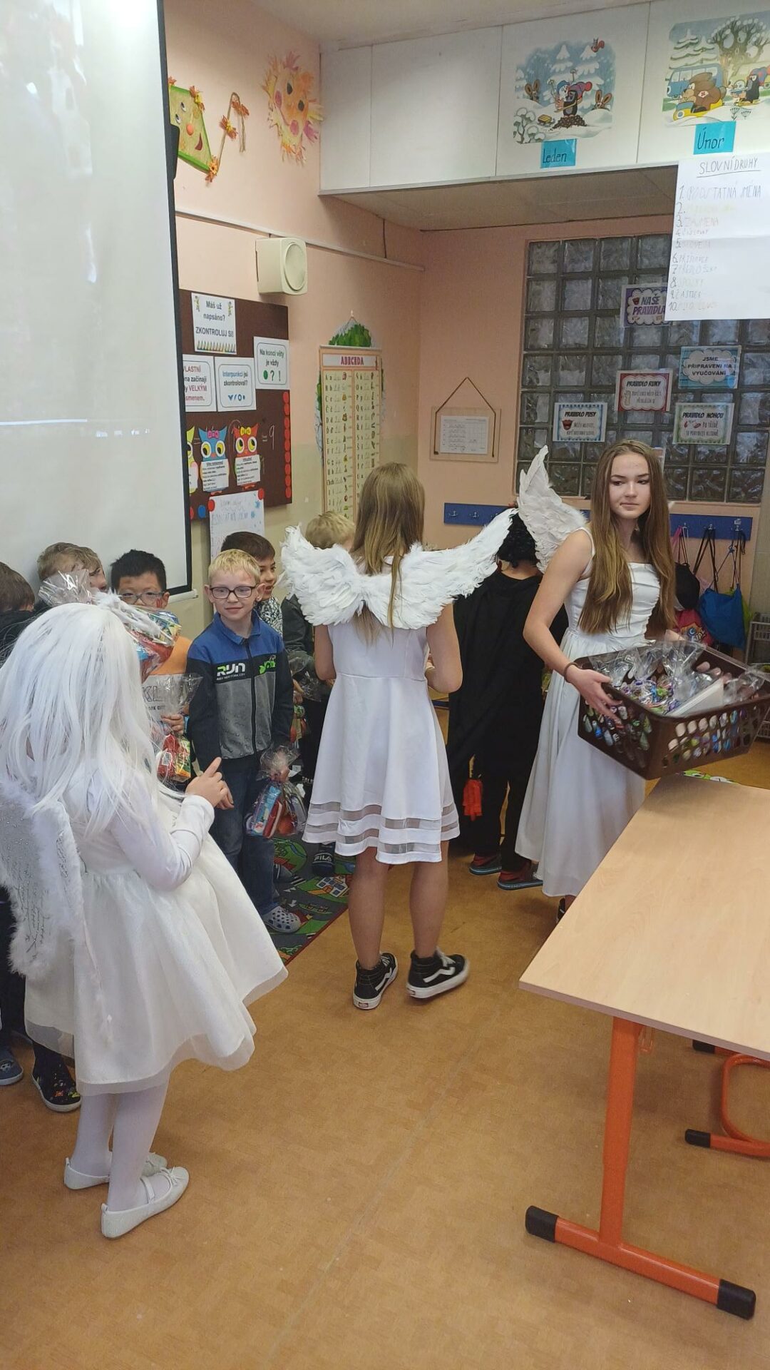 Dnešní dopoledne bylo plné očekávání, kdy už se konečně objeví Mikuláš se svou družinou. Nakonec jsme se dočkali! Společně jsme zazpívali píseň Nezbední čertíci a tím jsme zachránili před odnesením do pekla naše zlobivější kamarády. Pak už následovala nadílka. Lesní skřítci z 2.B