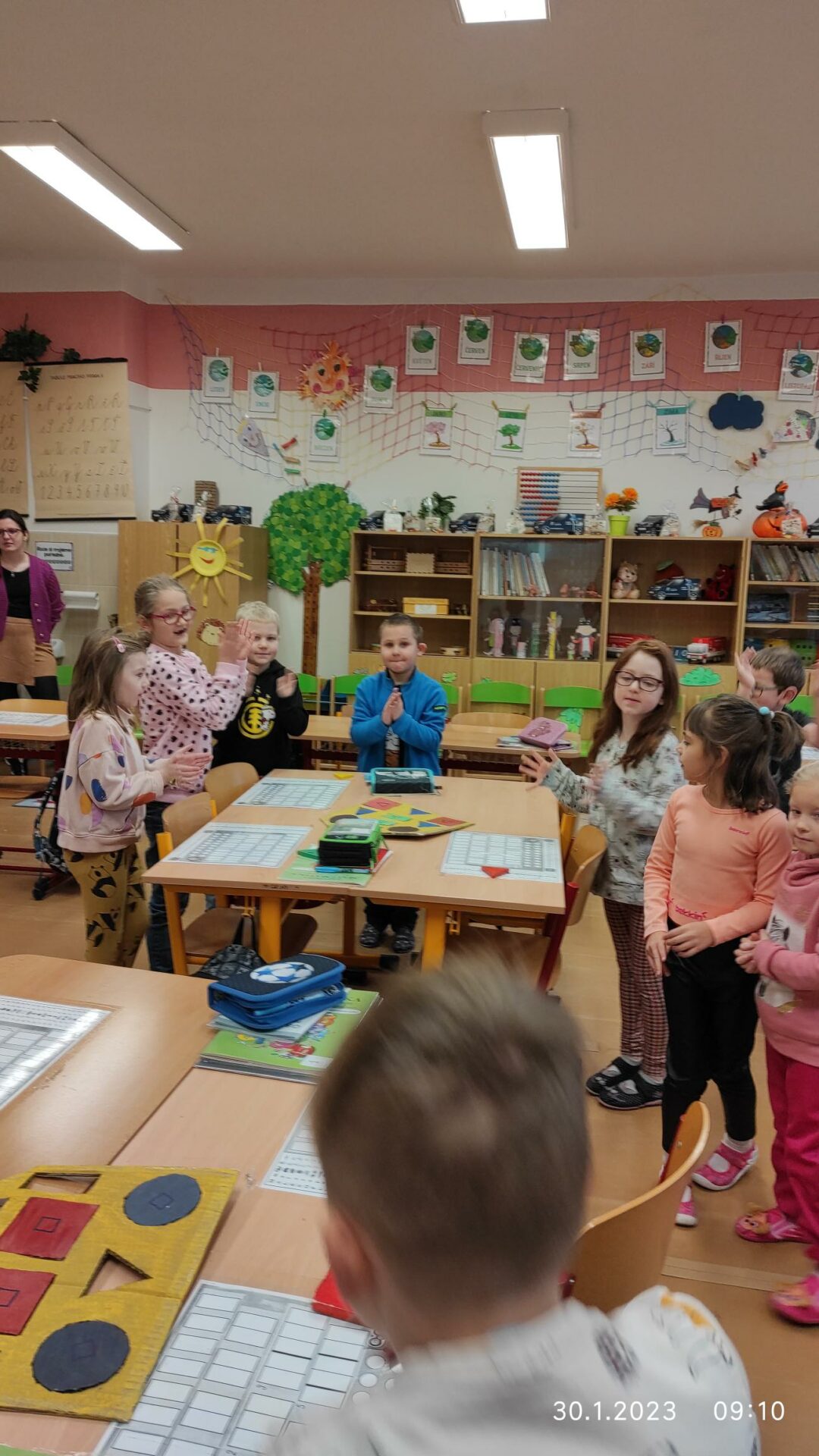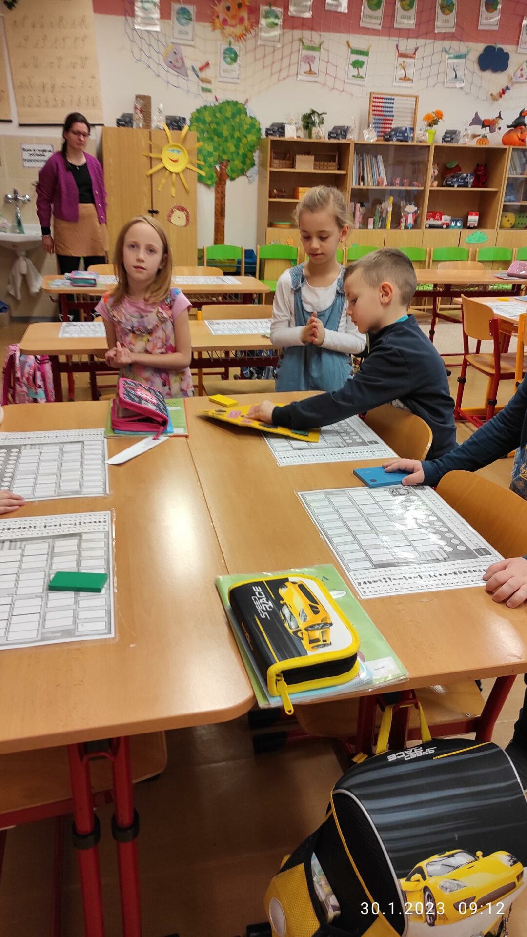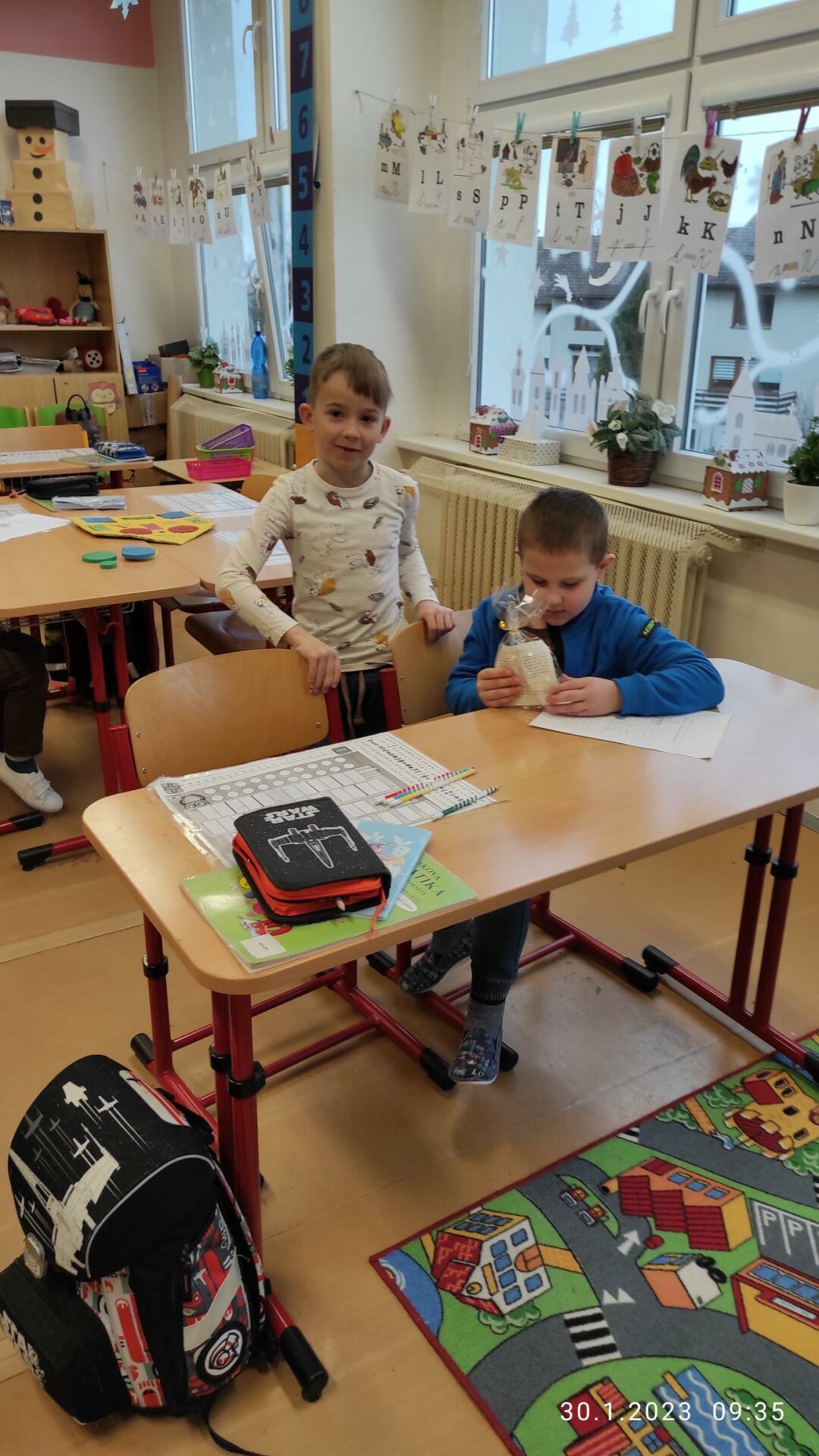 Dnes naší školu navštívili předškoláci ze Speciální mateřské školy Louny, aby se podívali, co je čeká v příštím školním roce. V novém prostředí si mohli aktivně prožít skutečnou vyučovací hodinu Matematiky a vyzkoušet si, jak se sedí ve školní lavici. Spolu se svými staršími kamarády z 1.B plnili s nadšením úkoly, zapojili se do skupinové práce a někteří z nich si vyzkoušeli i práci s interaktivní tabulí. Nakonec si děti vzájemně předaly sladkou odměnu. Přejeme jim hodně štěstí u zápisu!