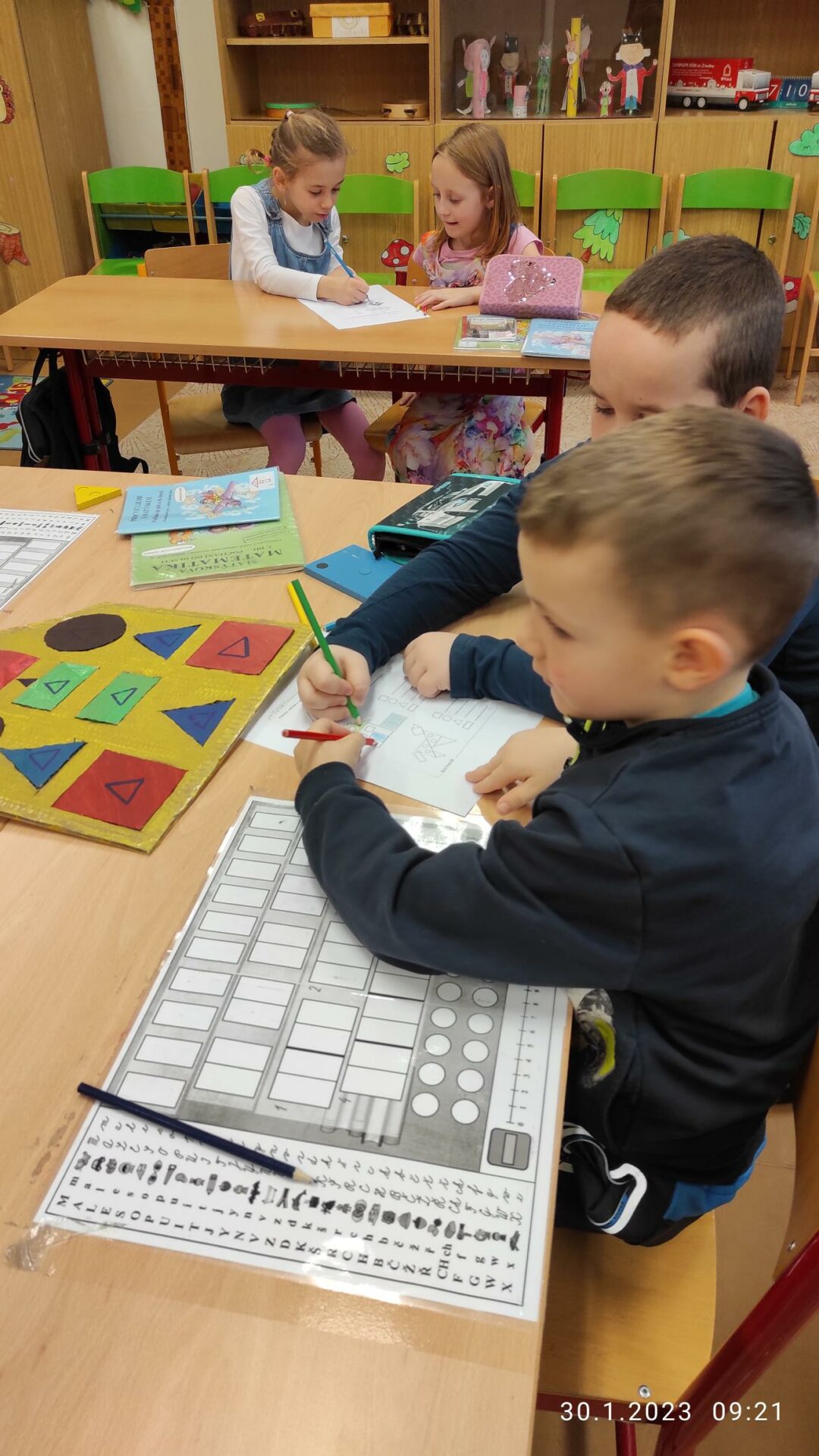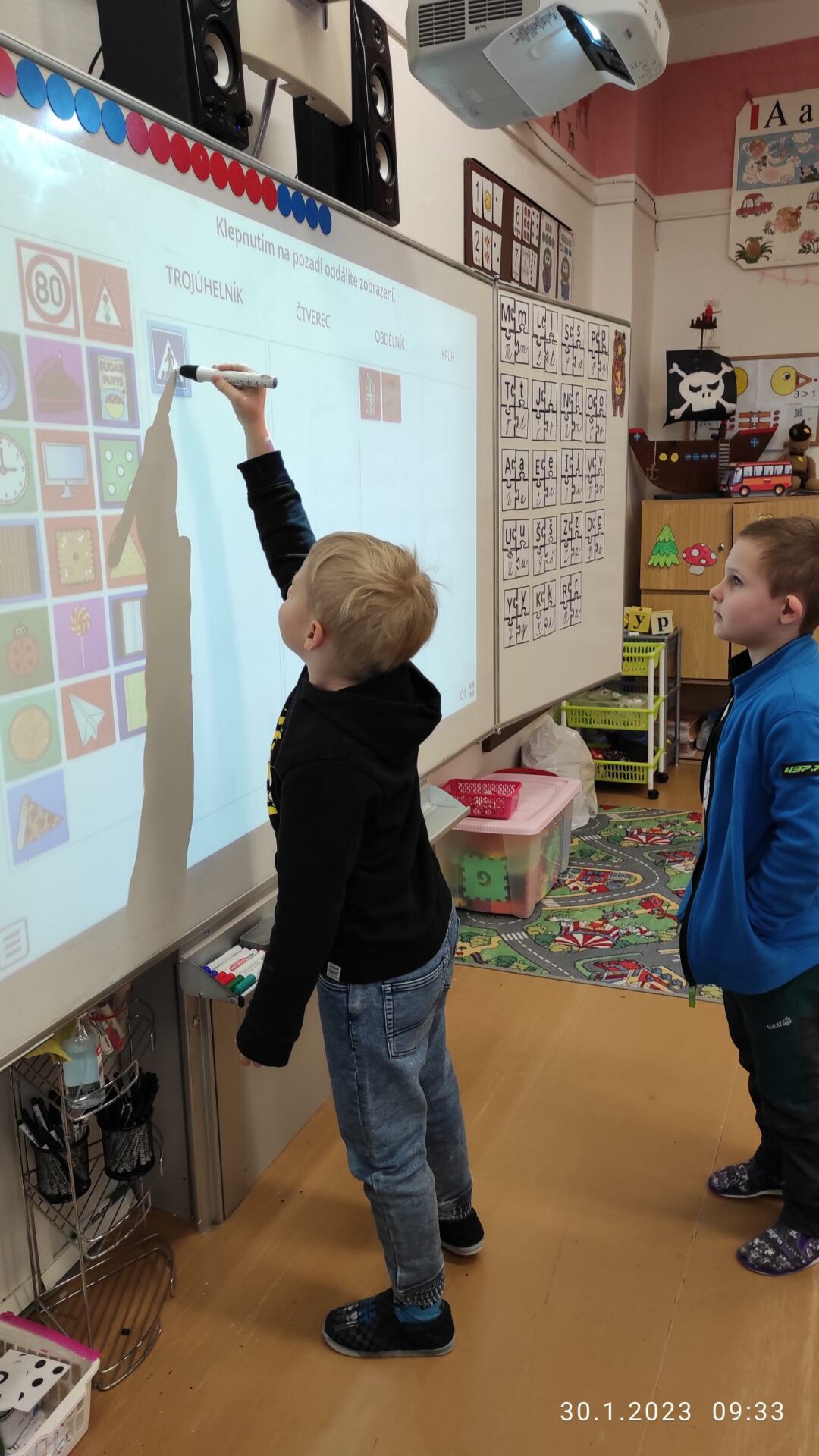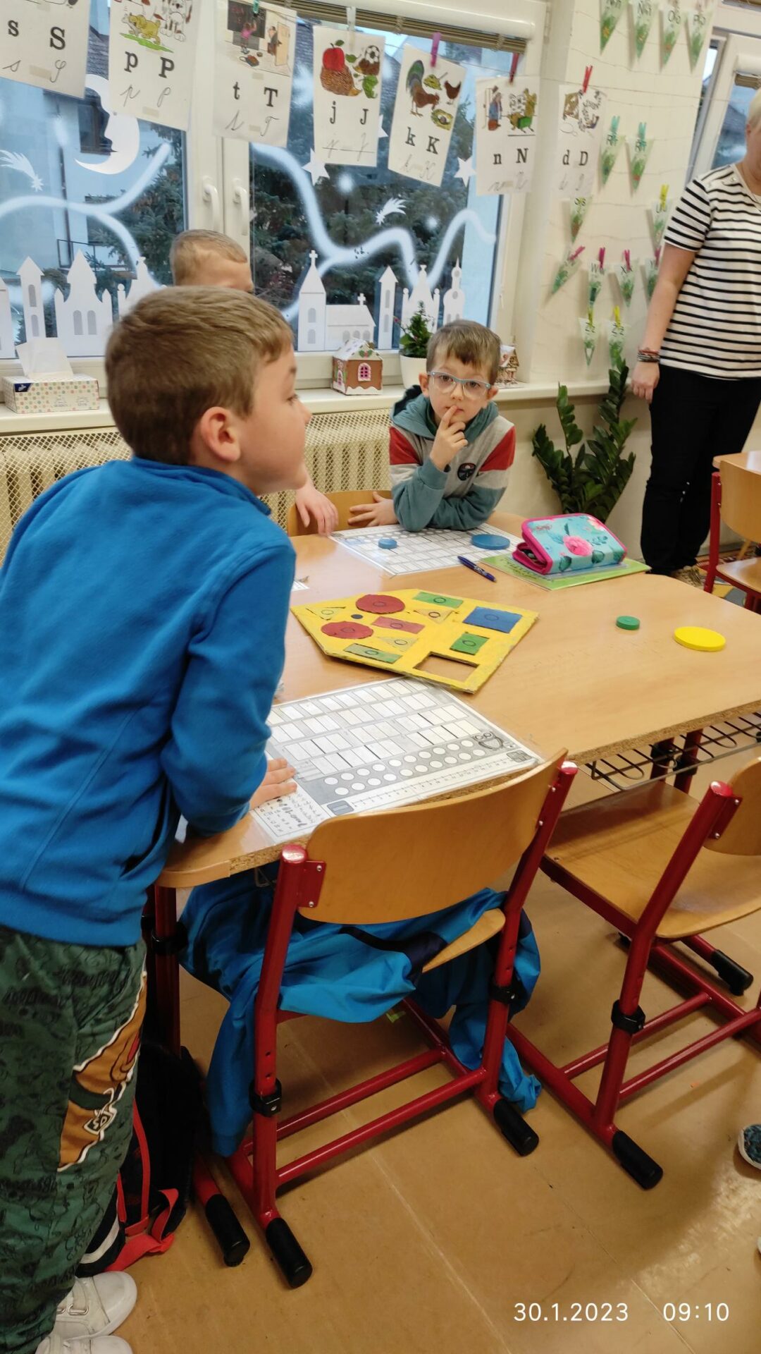 Dnes naší školu navštívili předškoláci ze Speciální mateřské školy Louny, aby se podívali, co je čeká v příštím školním roce. V novém prostředí si mohli aktivně prožít skutečnou vyučovací hodinu Matematiky a vyzkoušet si, jak se sedí ve školní lavici. Spolu se svými staršími kamarády z 1.B plnili s nadšením úkoly, zapojili se do skupinové práce a někteří z nich si vyzkoušeli i práci s interaktivní tabulí. Nakonec si děti vzájemně předaly sladkou odměnu. Přejeme jim hodně štěstí u zápisu!