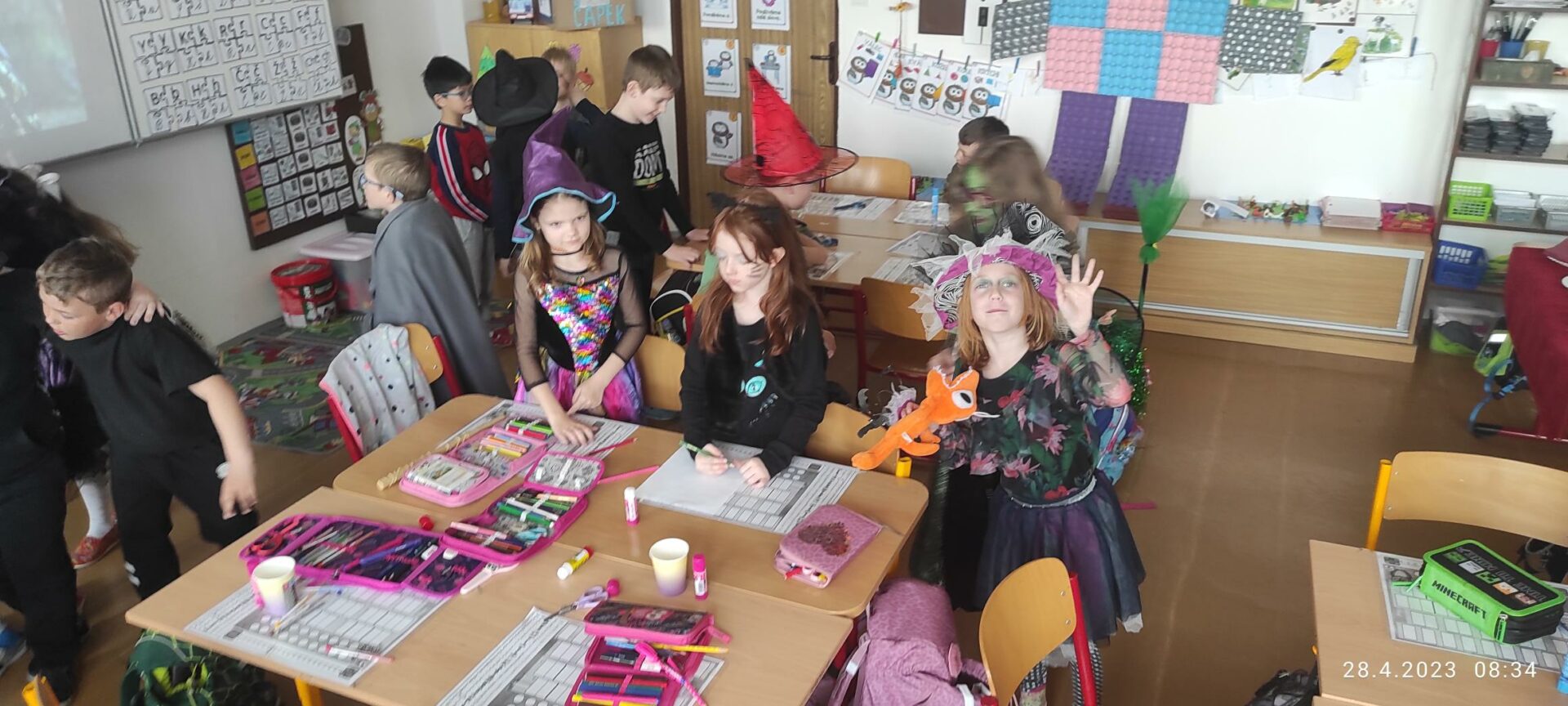 V projektovém vyučování s názvem Oslava svatojakubské noci – pálení čarodějnic jsme se dnes dostali do čarodějnické školy. S čarodějnicí Hátou jsme plnili úkoly z českého jazyka, matematiky, výtvarné výchovy a pracovních činností. Nechyběly ani kouzelné dobroty, které nám napekly naše maminky. Moc jim za to děkujeme! 🙂 Vše jsme zapili zázračným lektvarem. Lesní skřítci z 1.B