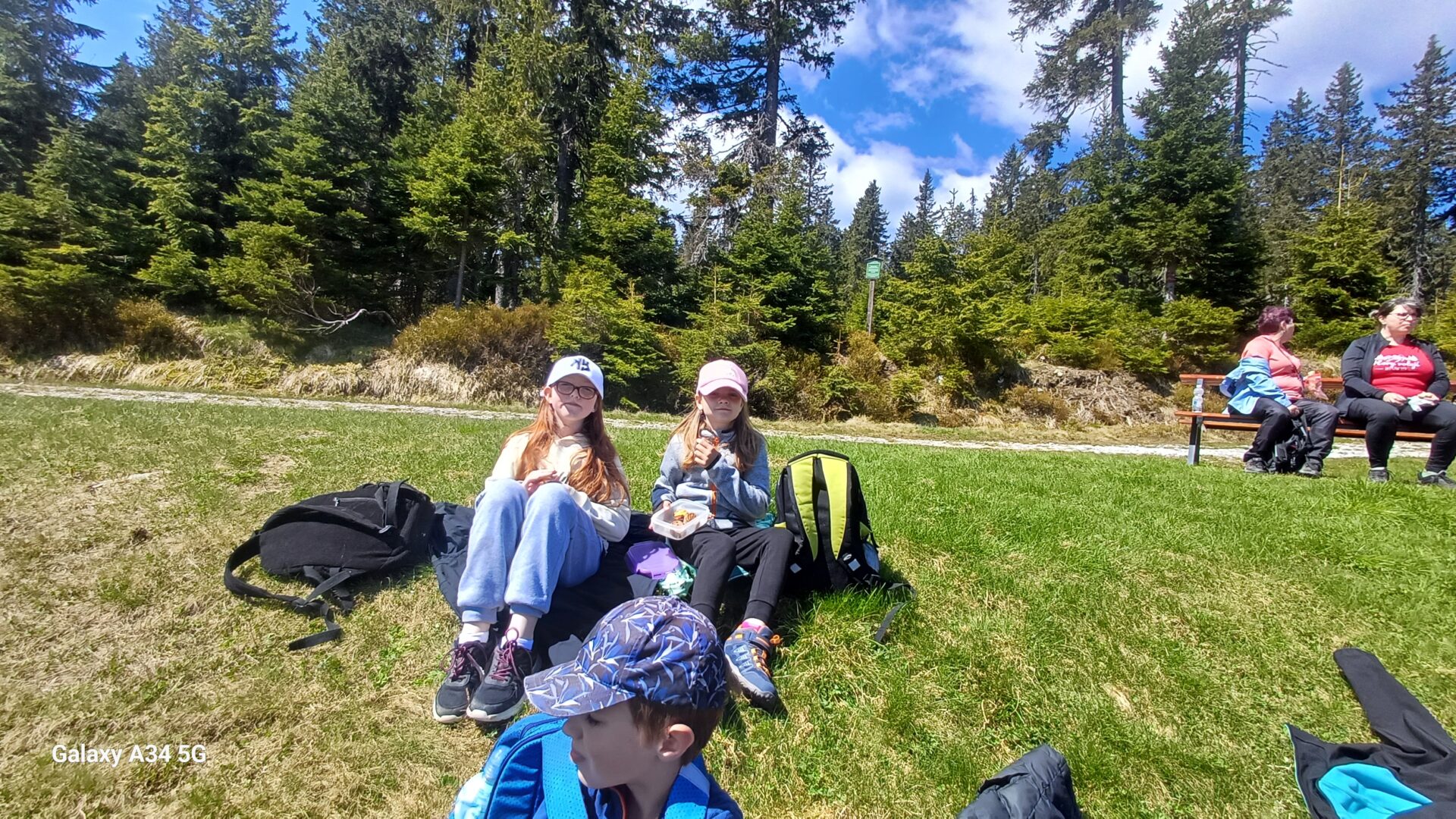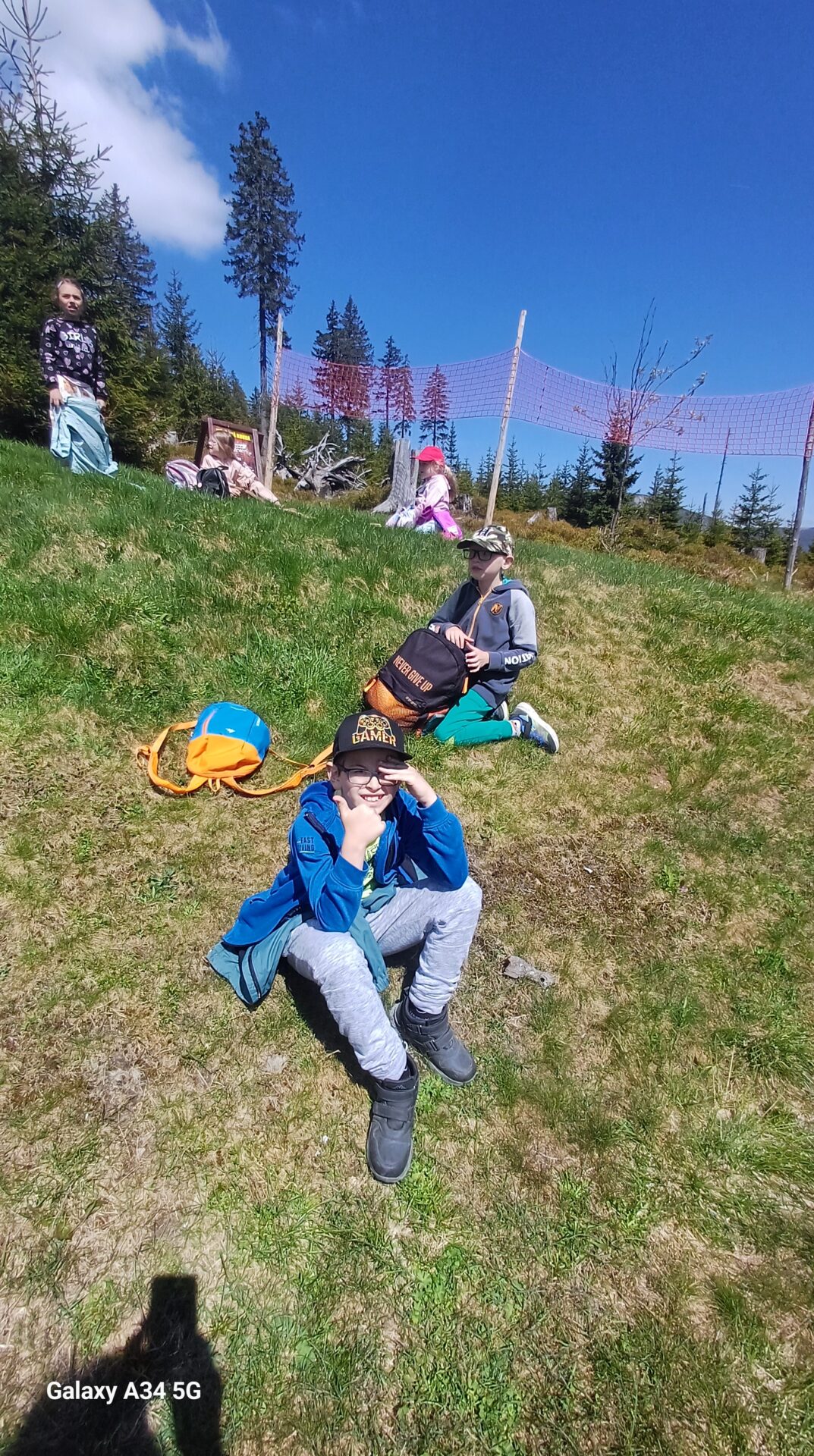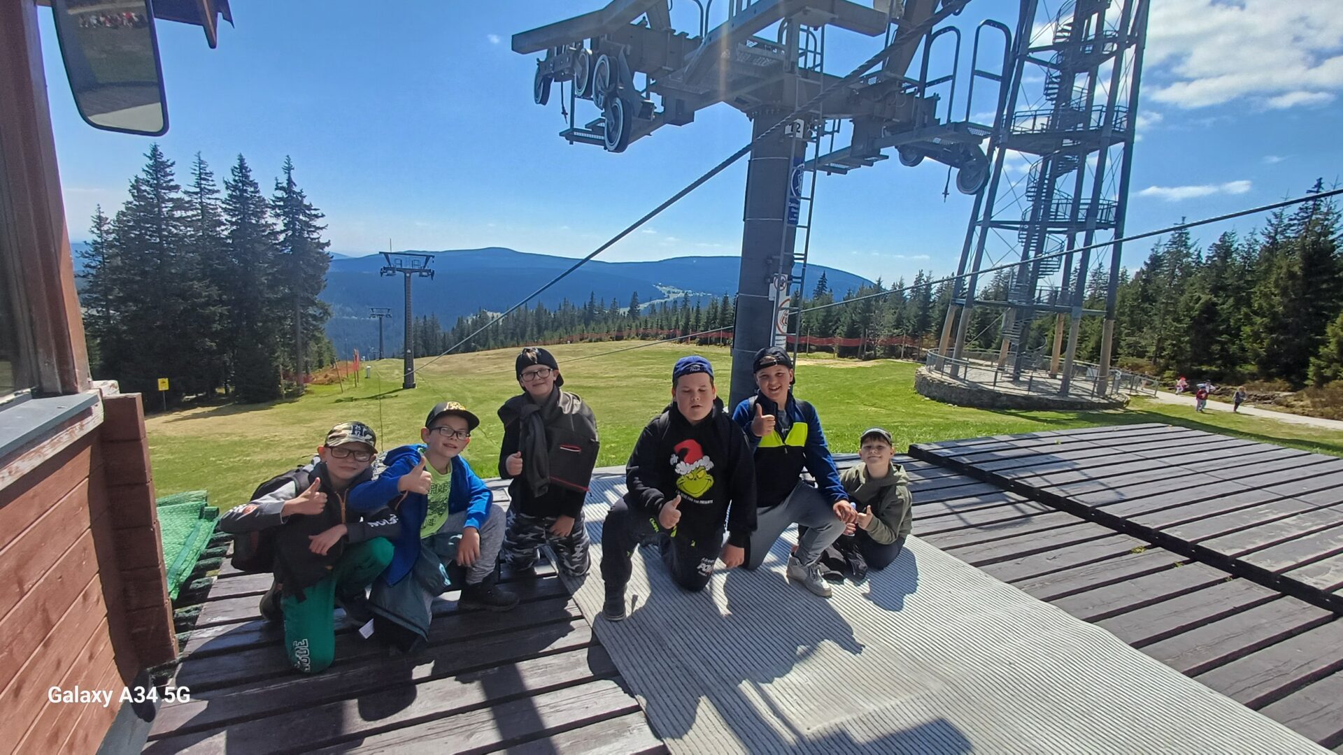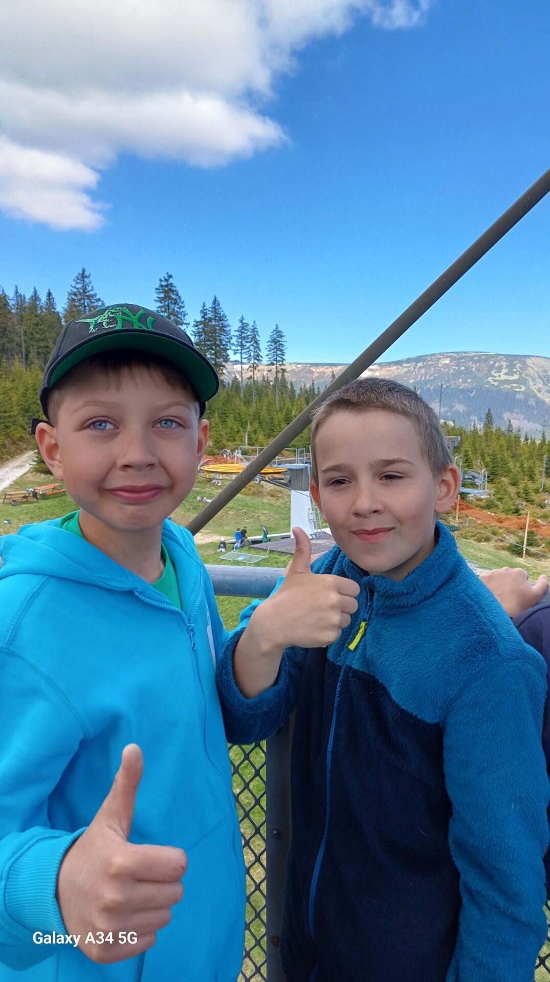 Ráno jsme se probudili do krásného, slunečného dne. Čekal nás úklid pokojů😜. Nic příjemného, ale zvládli jsme to. Všichni jsme si do svých kartiček nalepili ježky ze Sněžky. Po vydatné snídani jsme vyrazili na Hnědý vrch – rozhledna. Po takovém výšlapu přišel oběd vhod. Odpoledne nás čekala stavba chaloupek z přírodnin. Všechny naše cesty jsme si zaznamenali po večeři do svých map s příběhem. Zítra nás čeká výlet na naší nejvyšší horu, Sněžku. Tak nám držte kamarádi palce a my se vám zase ozveme. ✋️🙋♂️🙋🙋♀️