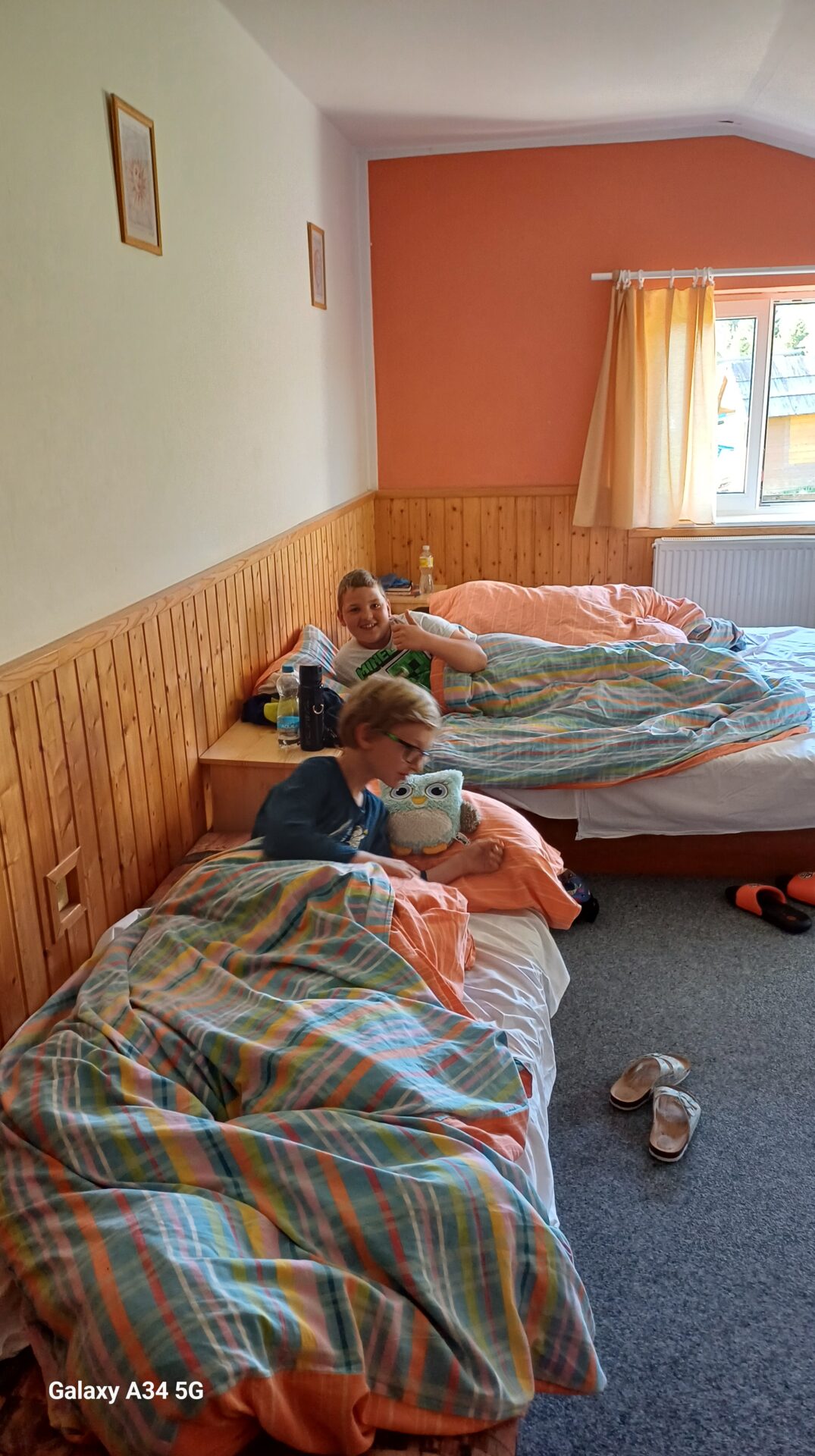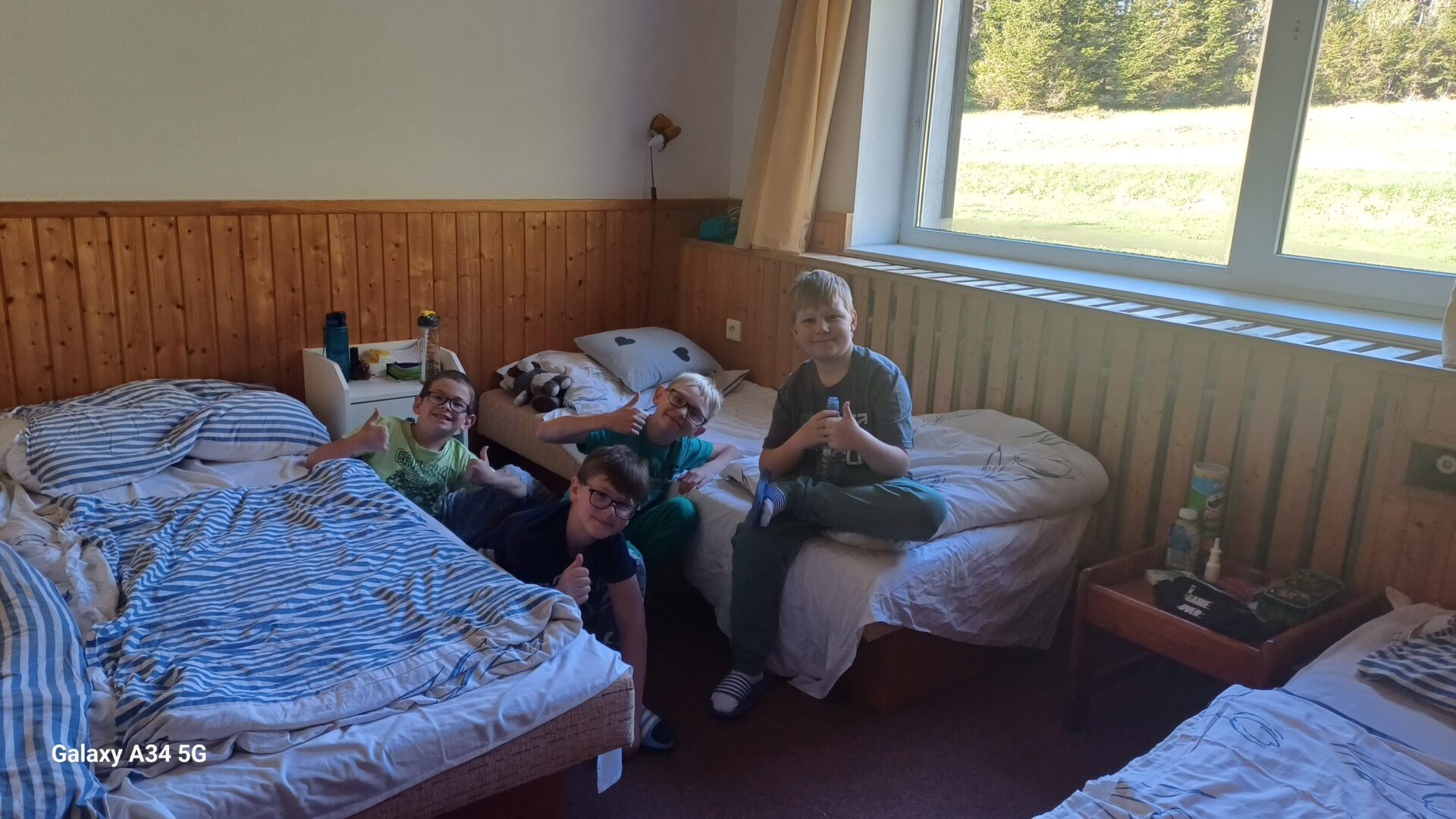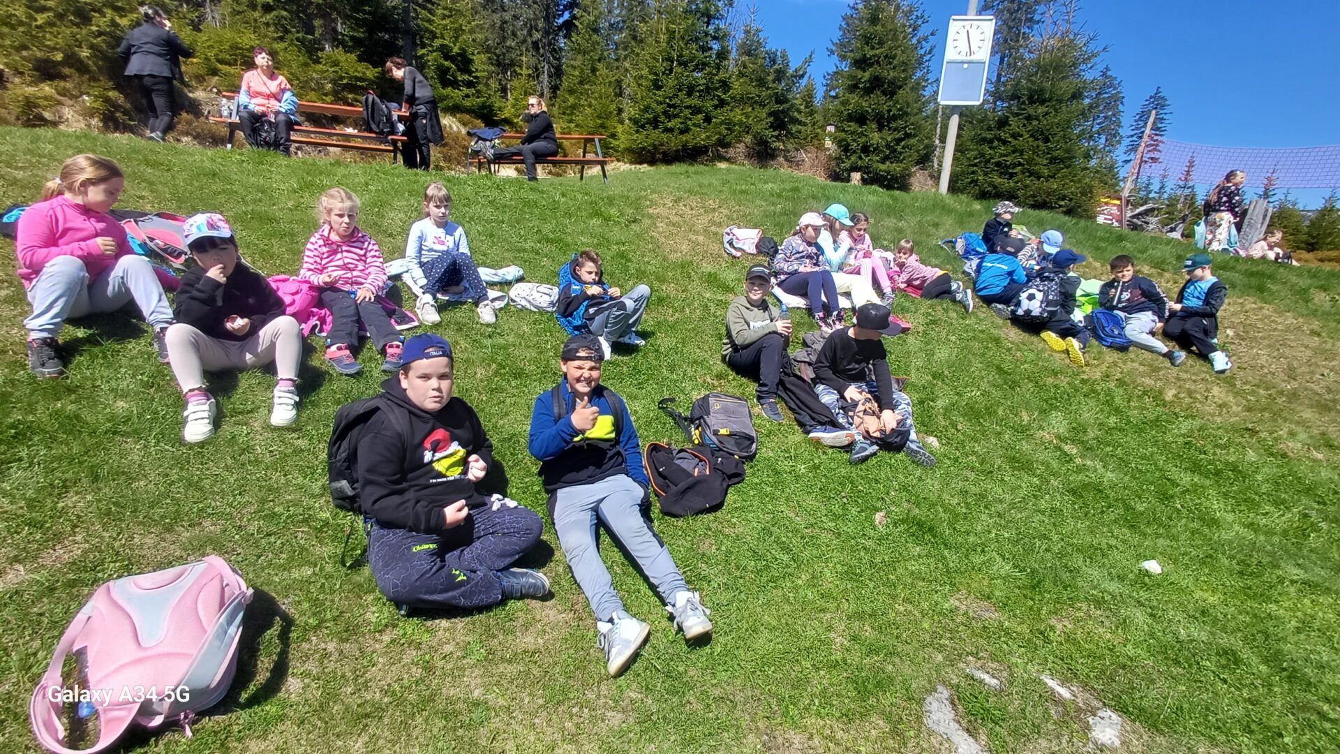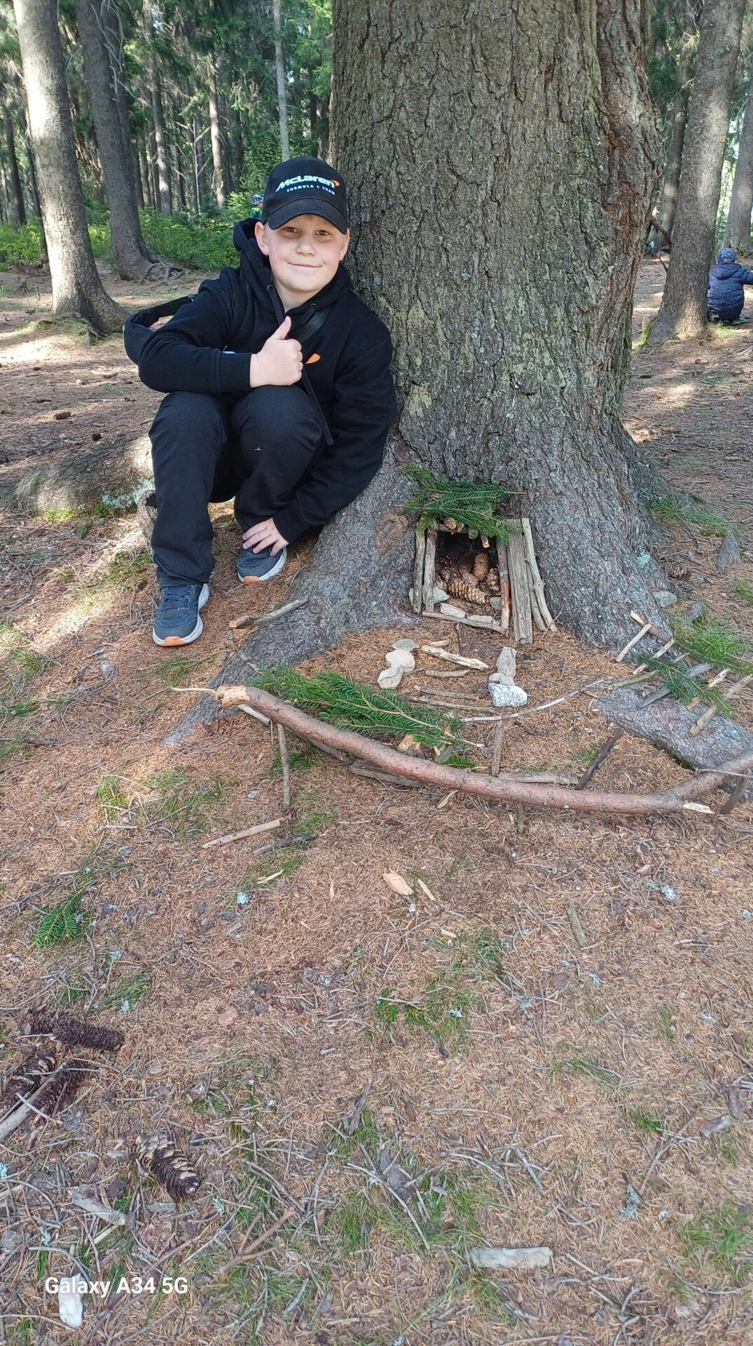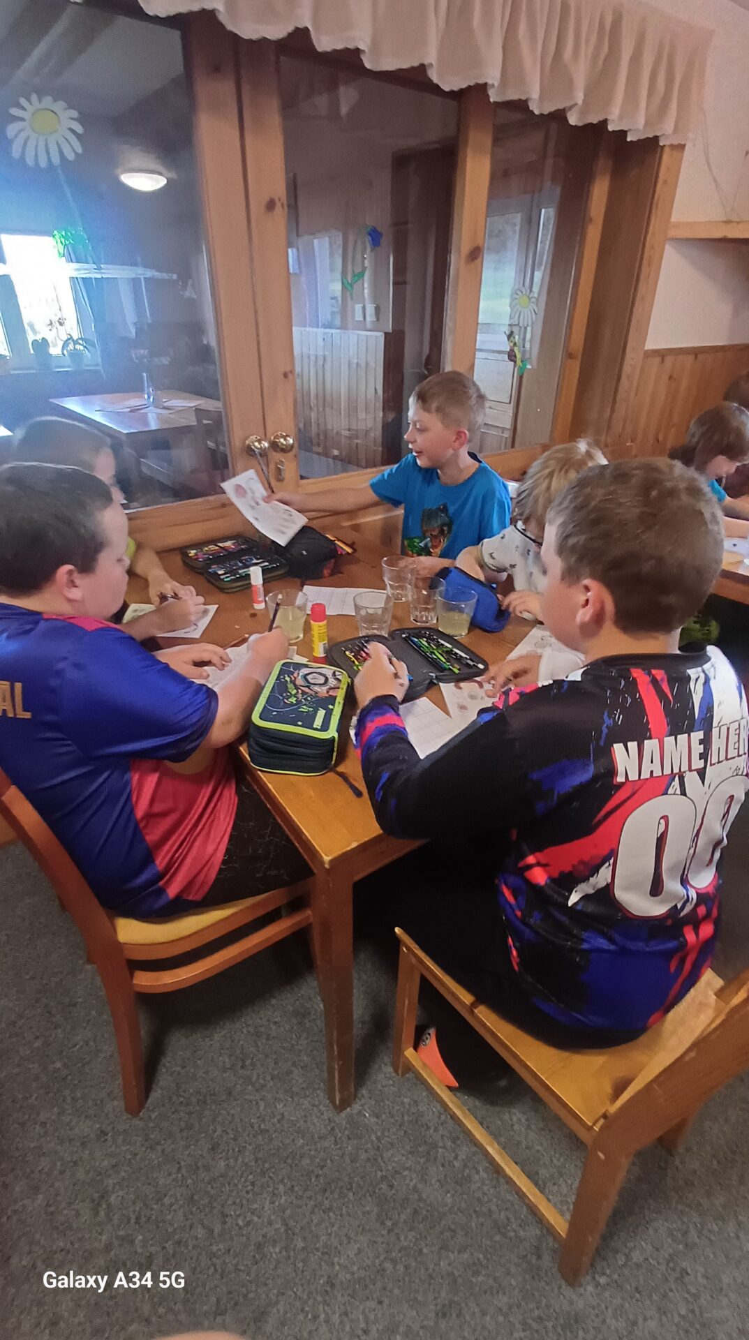 Ráno jsme se probudili do krásného, slunečného dne. Čekal nás úklid pokojů😜. Nic příjemného, ale zvládli jsme to. Všichni jsme si do svých kartiček nalepili ježky ze Sněžky. Po vydatné snídani jsme vyrazili na Hnědý vrch – rozhledna. Po takovém výšlapu přišel oběd vhod. Odpoledne nás čekala stavba chaloupek z přírodnin. Všechny naše cesty jsme si zaznamenali po večeři do svých map s příběhem. Zítra nás čeká výlet na naší nejvyšší horu, Sněžku. Tak nám držte kamarádi palce a my se vám zase ozveme. ✋️🙋♂️🙋🙋♀️