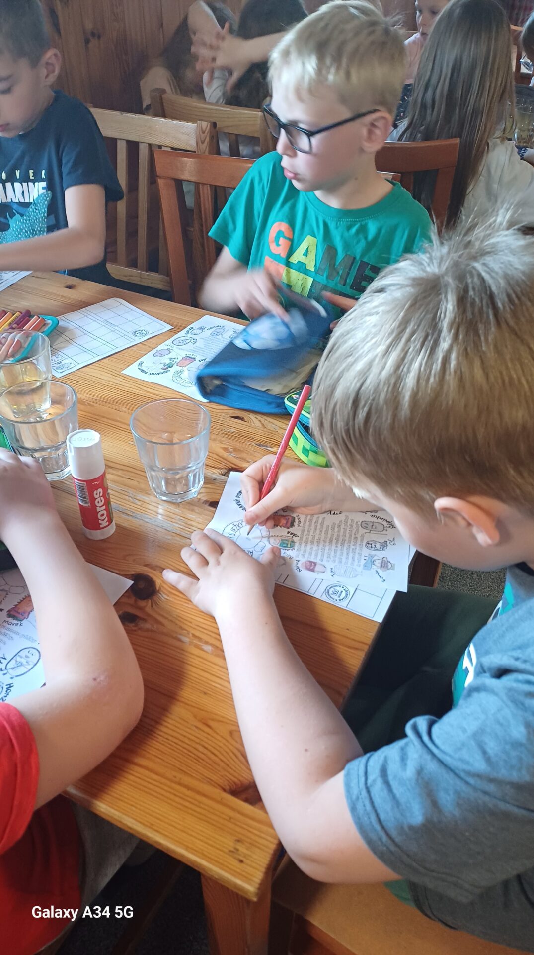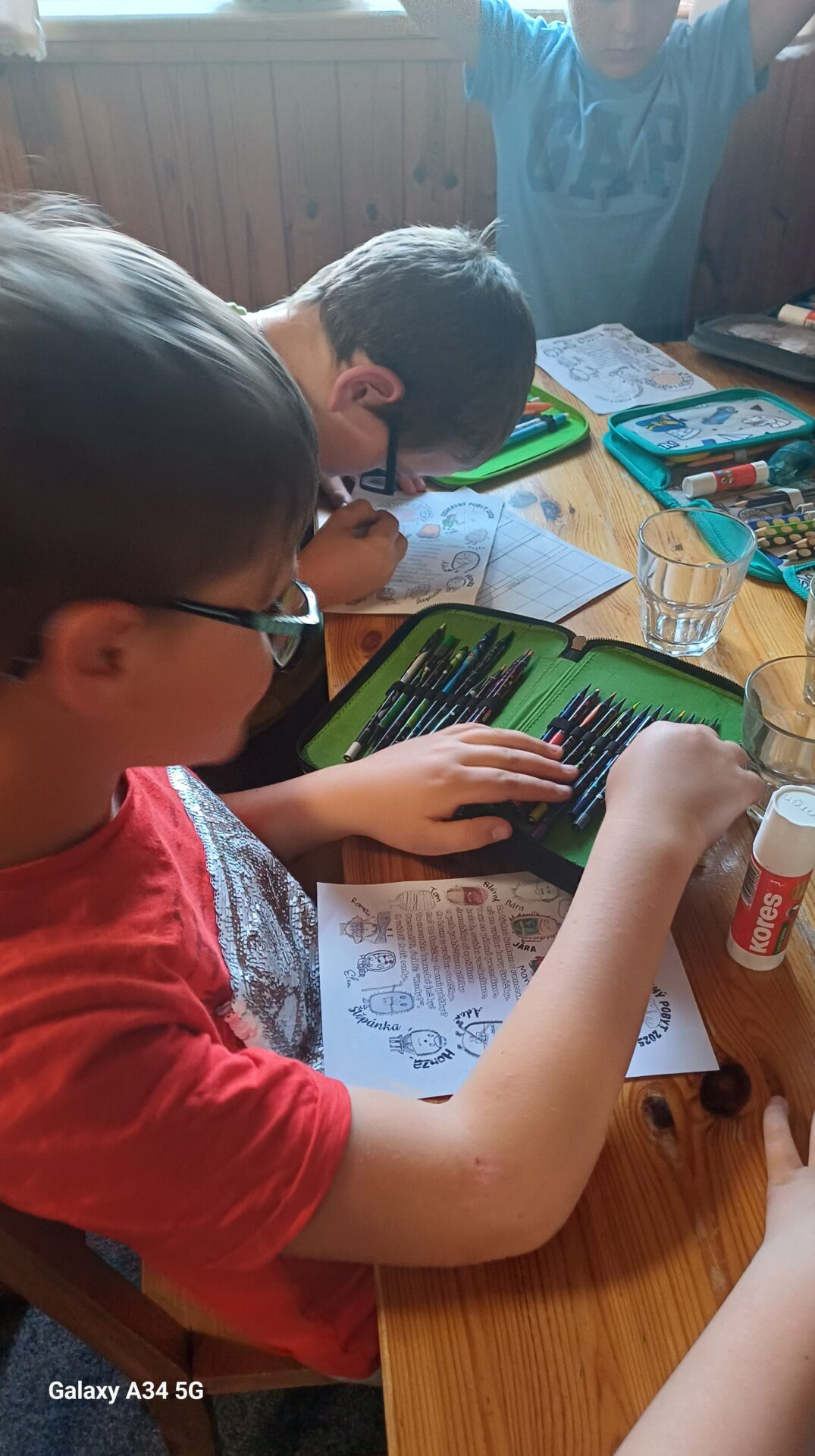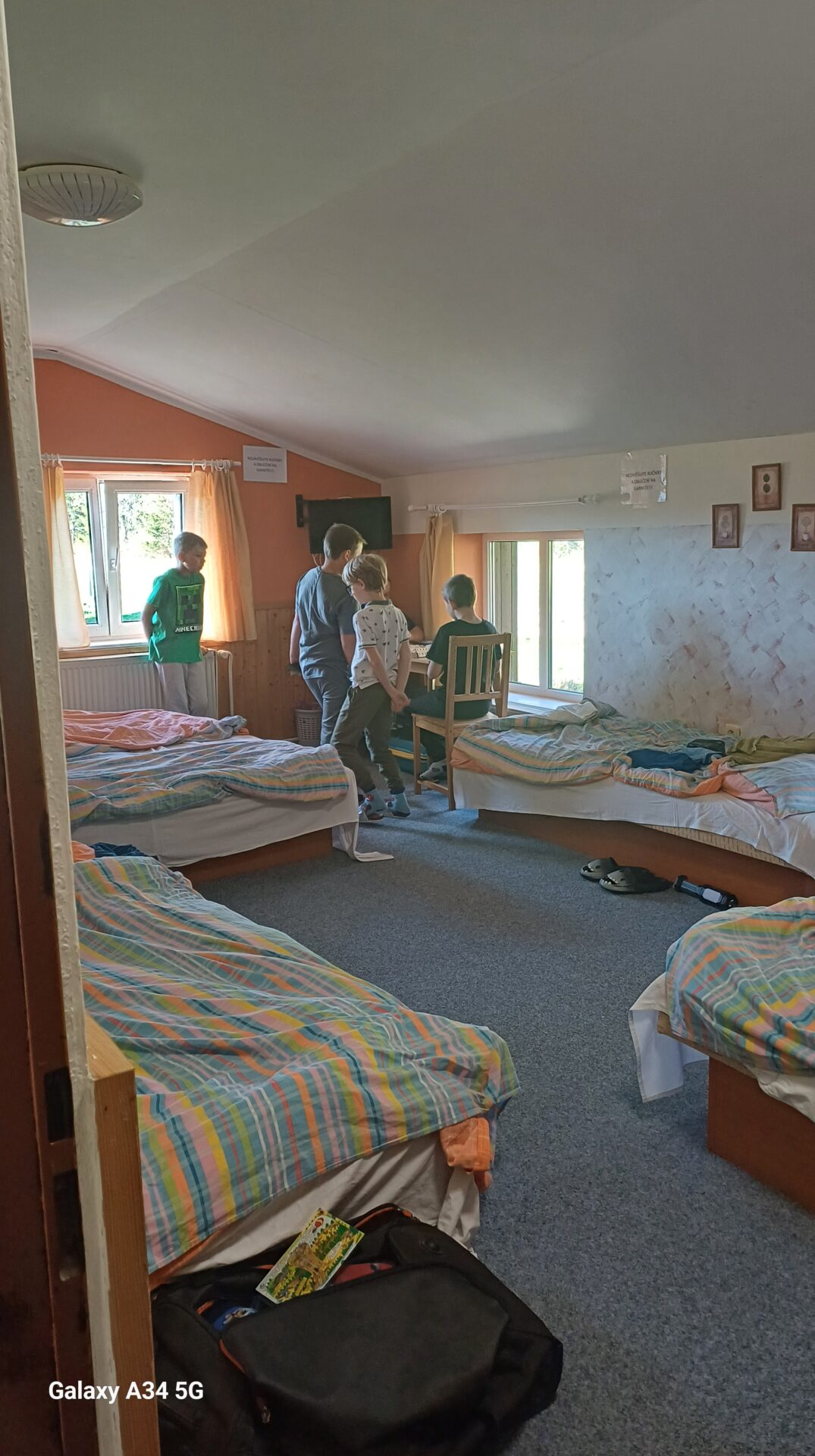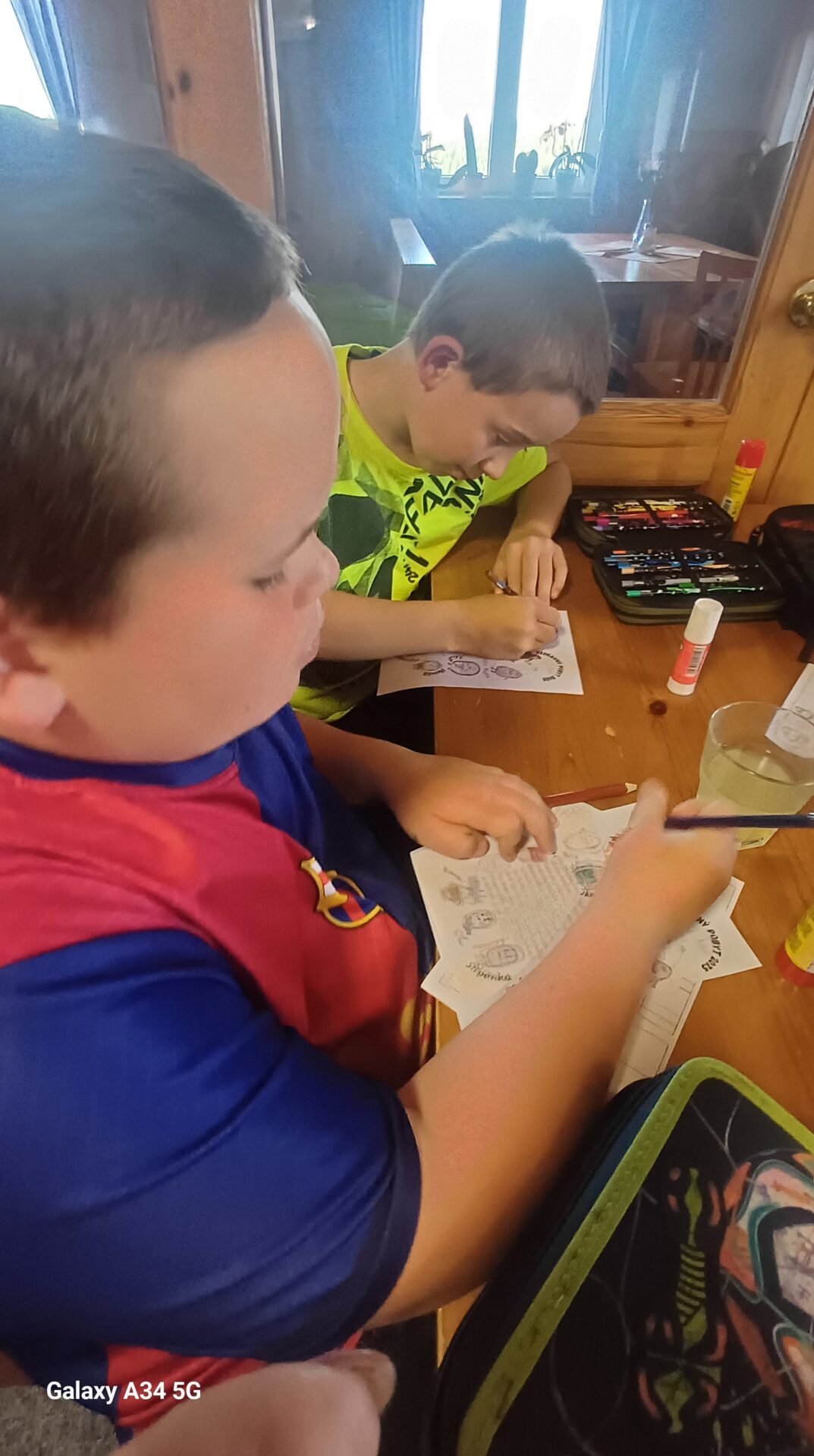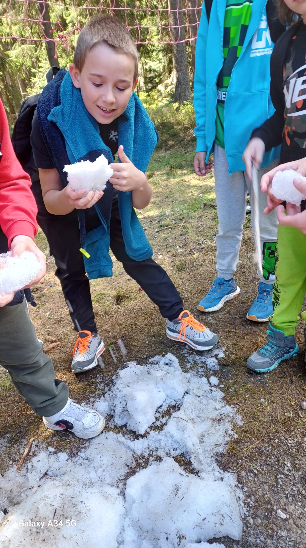 Ráno jsme se probudili do krásného, slunečného dne. Čekal nás úklid pokojů😜. Nic příjemného, ale zvládli jsme to. Všichni jsme si do svých kartiček nalepili ježky ze Sněžky. Po vydatné snídani jsme vyrazili na Hnědý vrch – rozhledna. Po takovém výšlapu přišel oběd vhod. Odpoledne nás čekala stavba chaloupek z přírodnin. Všechny naše cesty jsme si zaznamenali po večeři do svých map s příběhem. Zítra nás čeká výlet na naší nejvyšší horu, Sněžku. Tak nám držte kamarádi palce a my se vám zase ozveme. ✋️🙋♂️🙋🙋♀️