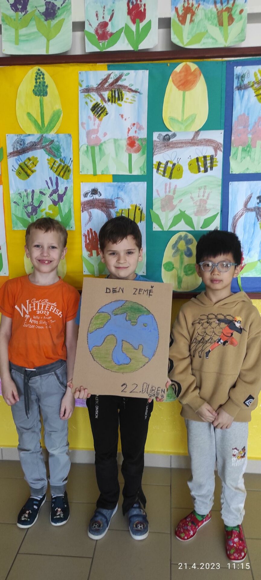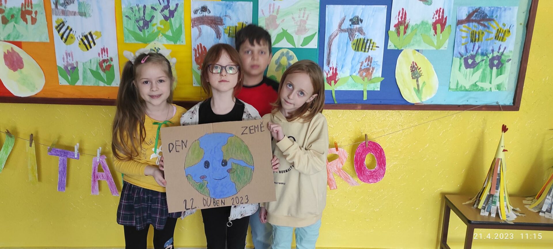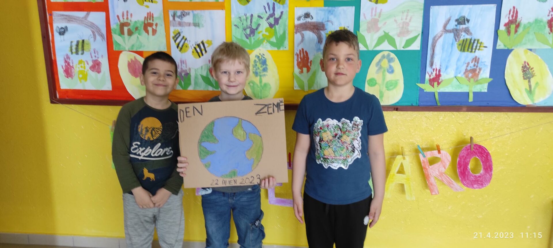 Den Země je každoroční celosvětová událost organizovaná 22.dubna a zaměřená na propagaci a podporu ochrany životního prostředí, a proto jsme se i my, Lesní skřítci z 1.B , zapojili do této akce. Po shlédnutí krátkého motivačního videa jsme se rozdělili do skupin. V průběhu prvních dvou vyučovacích hodin jsme vytvořili výtvarné dílo s ekologickou tematikou a leporelo s otázkami a úkoly zaměřené na toto téma. Po svačině nastalo plnění úkolů z Čj a Ma na našem zábavném hřišti. Po splnění jednotlivých aktivit jsme zamířili ven, uklidit zelený prostor před naší školou. Posbírané odpadky jsme roztřídili a vyhodili podle barev do kontejnerů. Celé dopolední snažení jsme zhodnotili poslední vyučovací hodinu a slíbili si, že se budeme i nadále snažit chránit naší planetu ZEMI! Lesní skřítci z 1.B