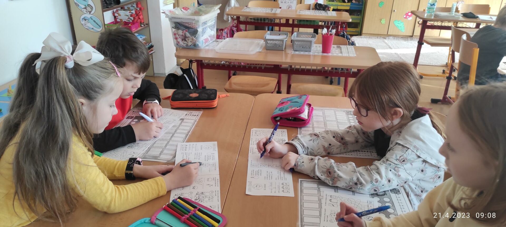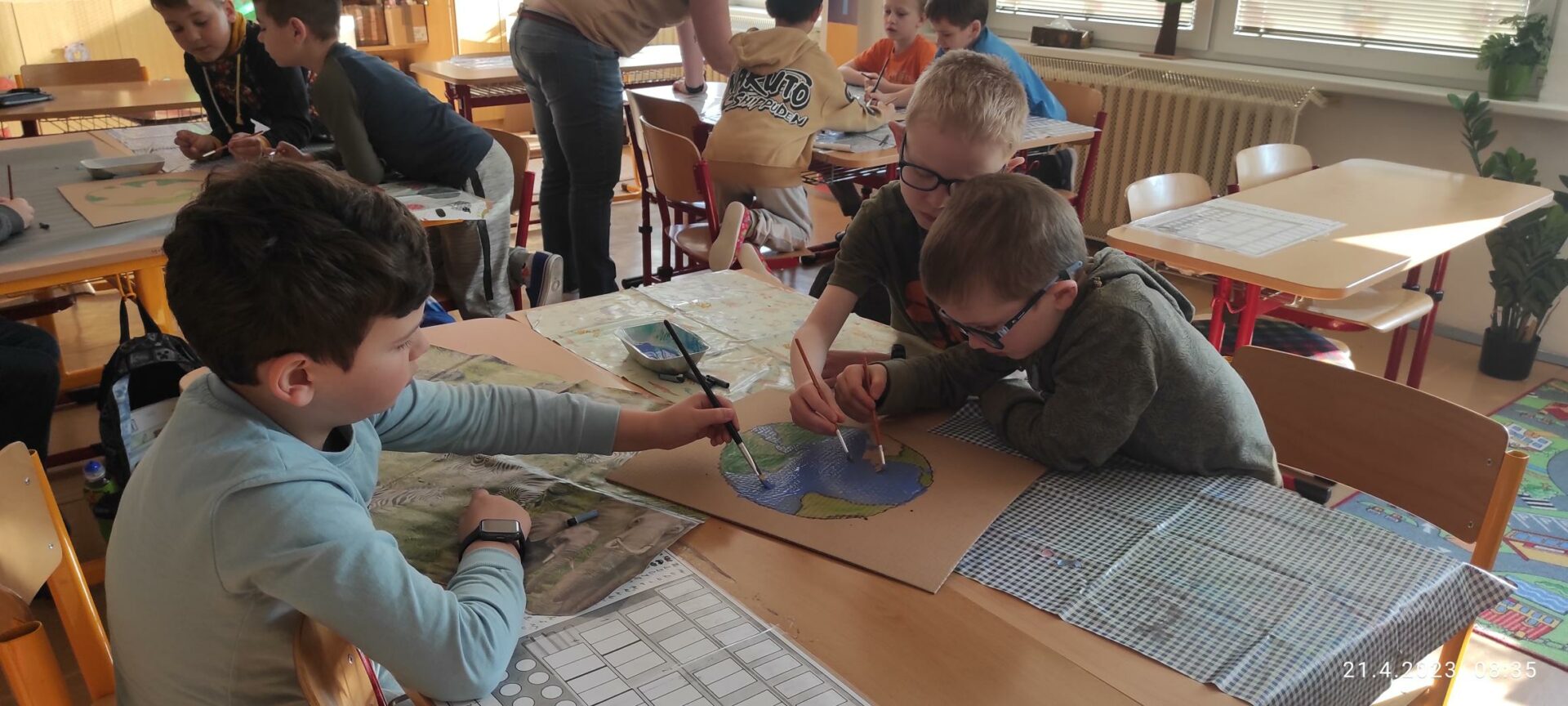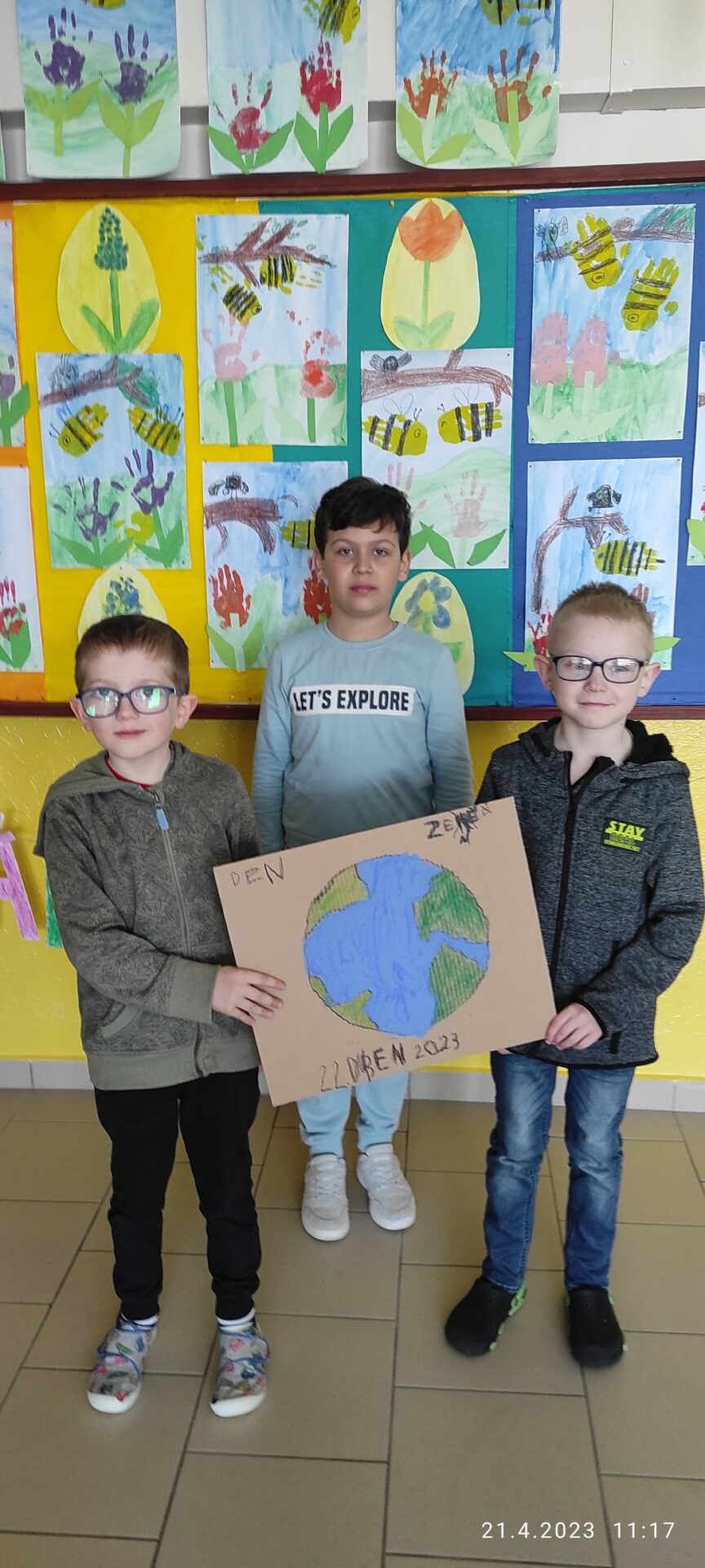 Den Země je každoroční celosvětová událost organizovaná 22.dubna a zaměřená na propagaci a podporu ochrany životního prostředí, a proto jsme se i my, Lesní skřítci z 1.B , zapojili do této akce. Po shlédnutí krátkého motivačního videa jsme se rozdělili do skupin. V průběhu prvních dvou vyučovacích hodin jsme vytvořili výtvarné dílo s ekologickou tematikou a leporelo s otázkami a úkoly zaměřené na toto téma. Po svačině nastalo plnění úkolů z Čj a Ma na našem zábavném hřišti. Po splnění jednotlivých aktivit jsme zamířili ven, uklidit zelený prostor před naší školou. Posbírané odpadky jsme roztřídili a vyhodili podle barev do kontejnerů. Celé dopolední snažení jsme zhodnotili poslední vyučovací hodinu a slíbili si, že se budeme i nadále snažit chránit naší planetu ZEMI! Lesní skřítci z 1.B