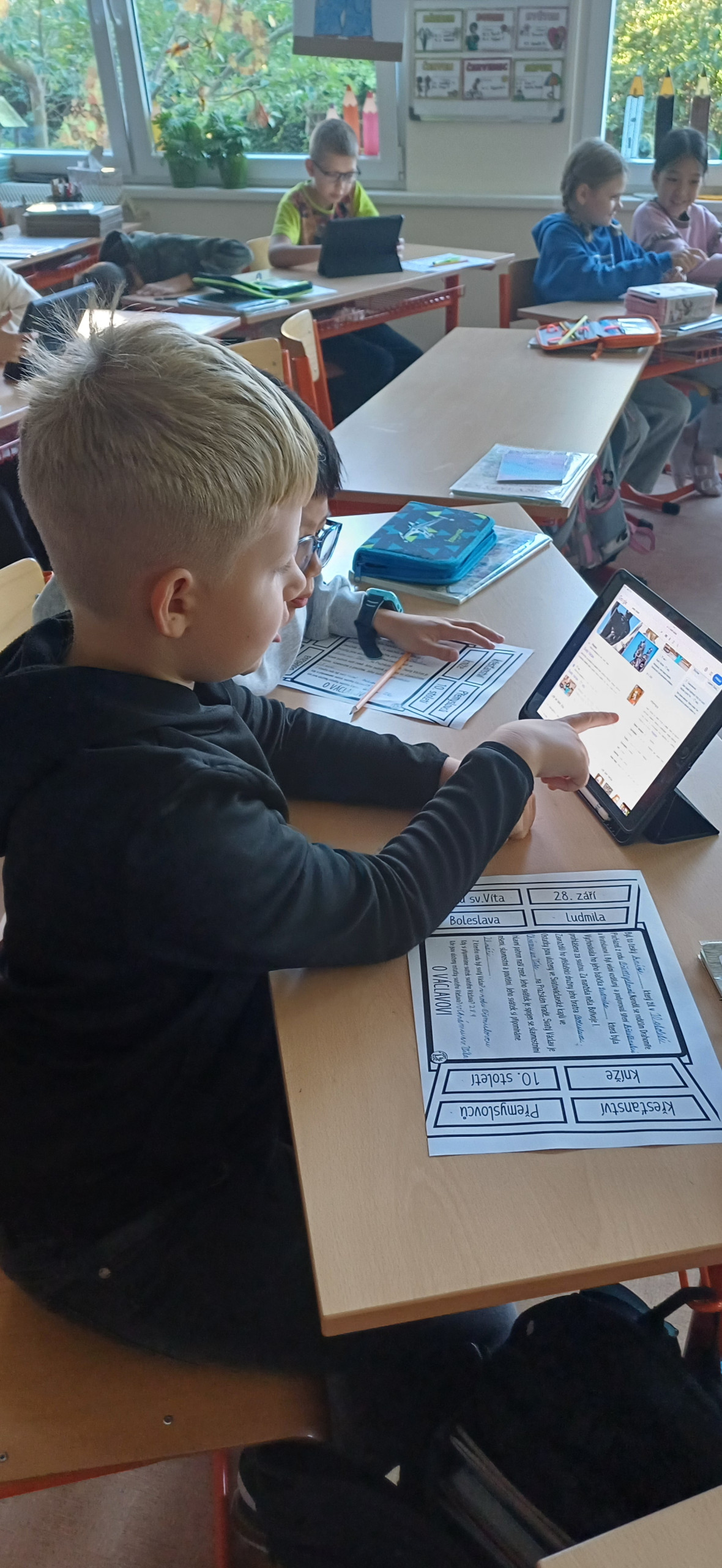 Dnes jsme si během hodin českého jazyka, matematiky a čtení připomněli, jaký svátek slavíme zítra, tj. 28.září. K vyhledávání informací o sv. Václavu jsme v českém jazyce a čtení využili iPady, v matematice nám zase český kníže pomohl procvičit malou násobilku. Získali jsme další cenné informace z naší historie. Vytvořili jsme malý rodokmen rodu Přemyslovců a určitě vyzkoušíme doma naše rodiče, co si pamatují ze školy:) .