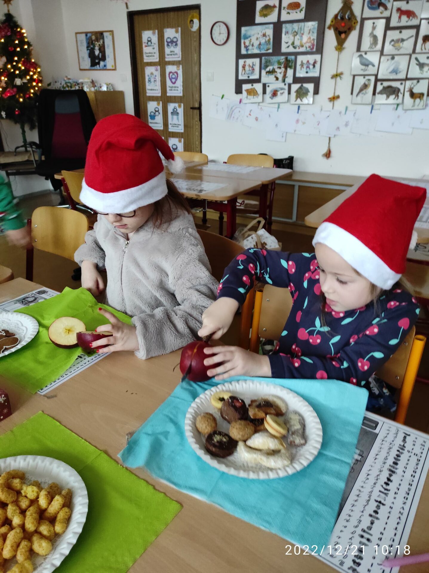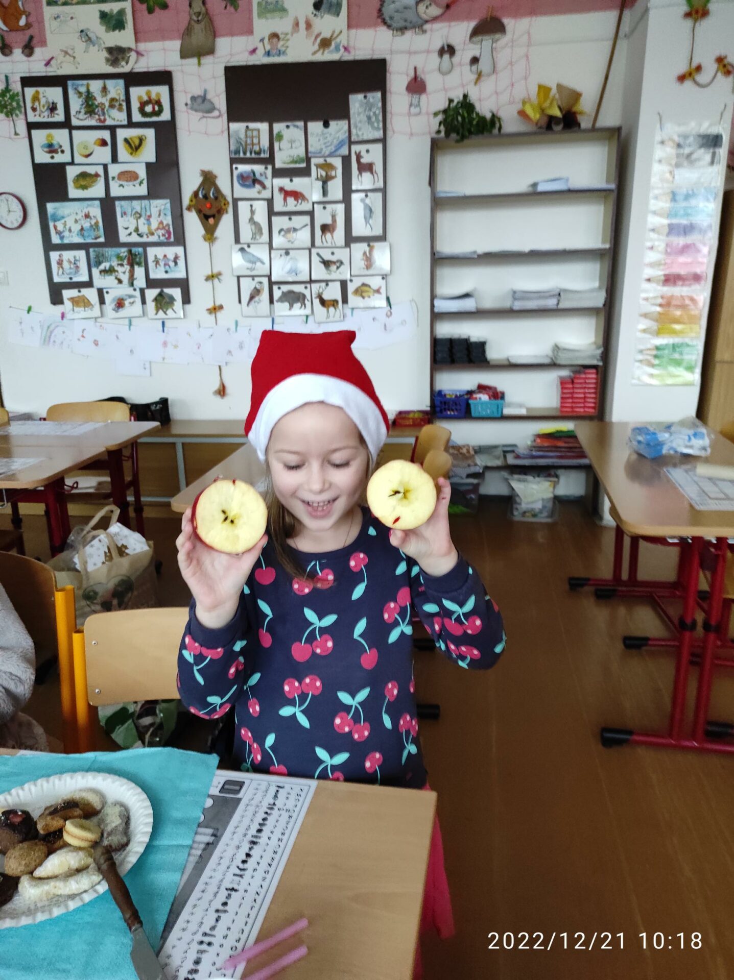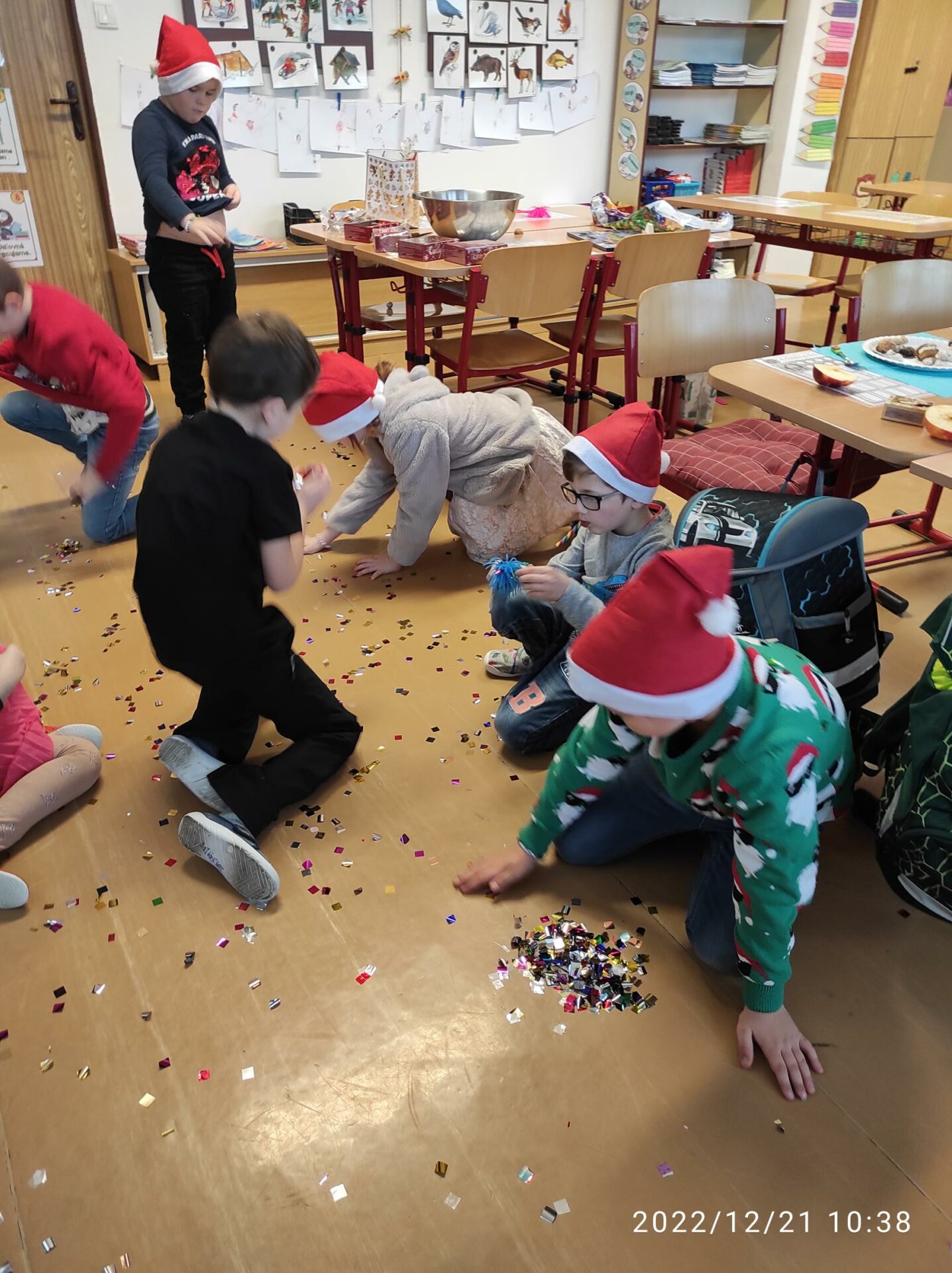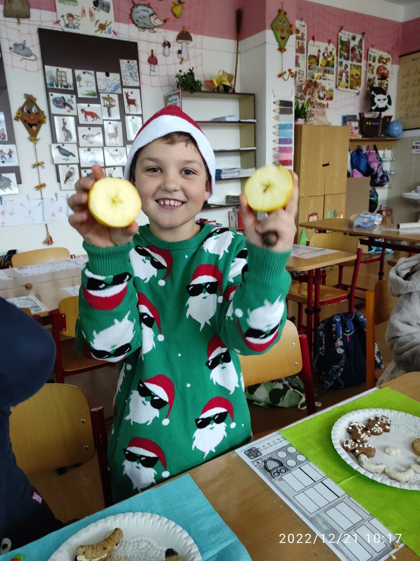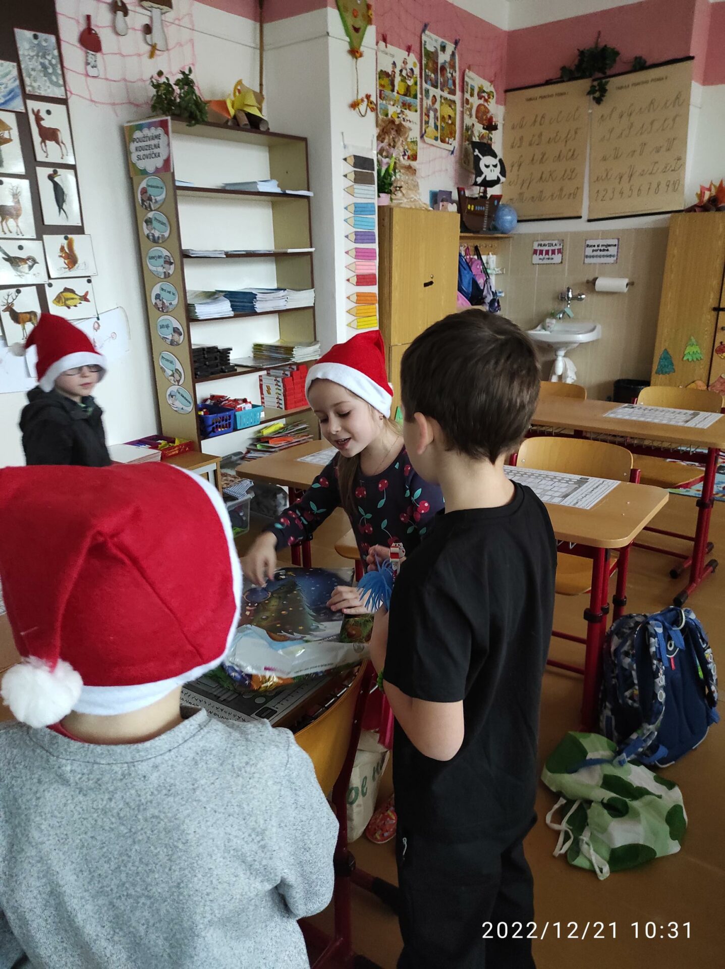 Jaké jsou vánoční tradice a zvyky se dnes na své první vánoční besídce dozvěděli naši prvňáčci. Od rána zjišťovali, kdy už ta besídka konečně začne. 🙂 Nakonec se přeci jen dočkali, a i když spousta jejich spolužáků zůstala doma kvůli nemoci, pořádně si jí užili. Na naše nemocné skřítky jsme ale nezapomněli. Spojili jsme se s nimi přes aplikaci WhatsApp videohovorem a aspoň trochu jim tu třídní vánoční atmosféru poslali. Přejeme všem krásné Vánoce ! 🙂