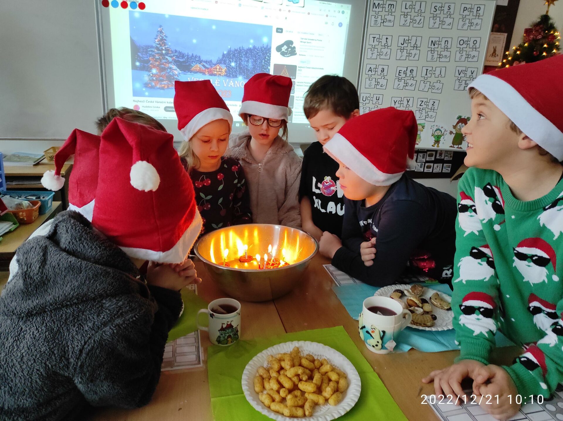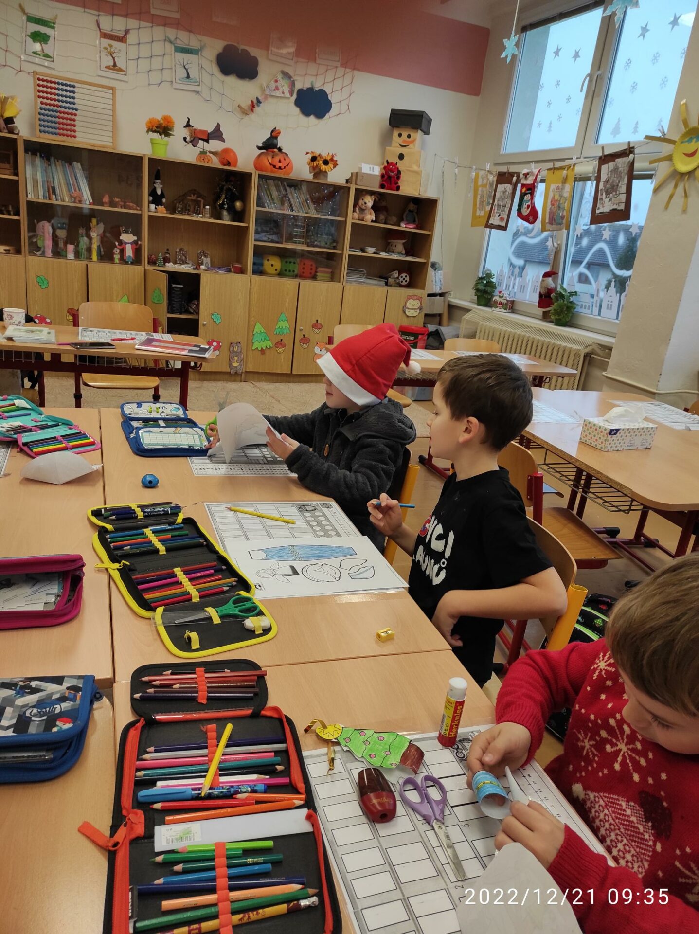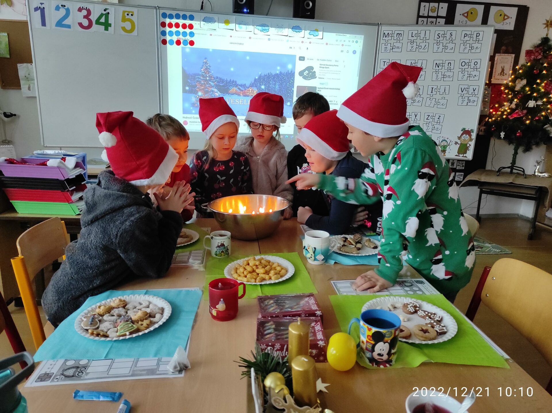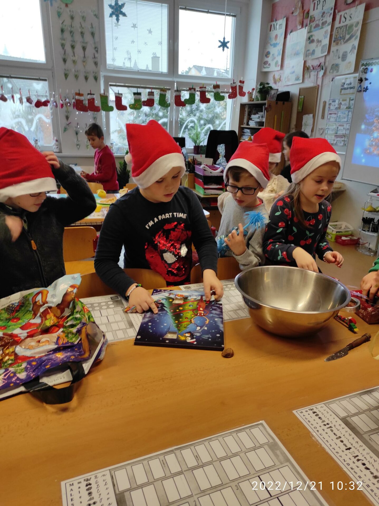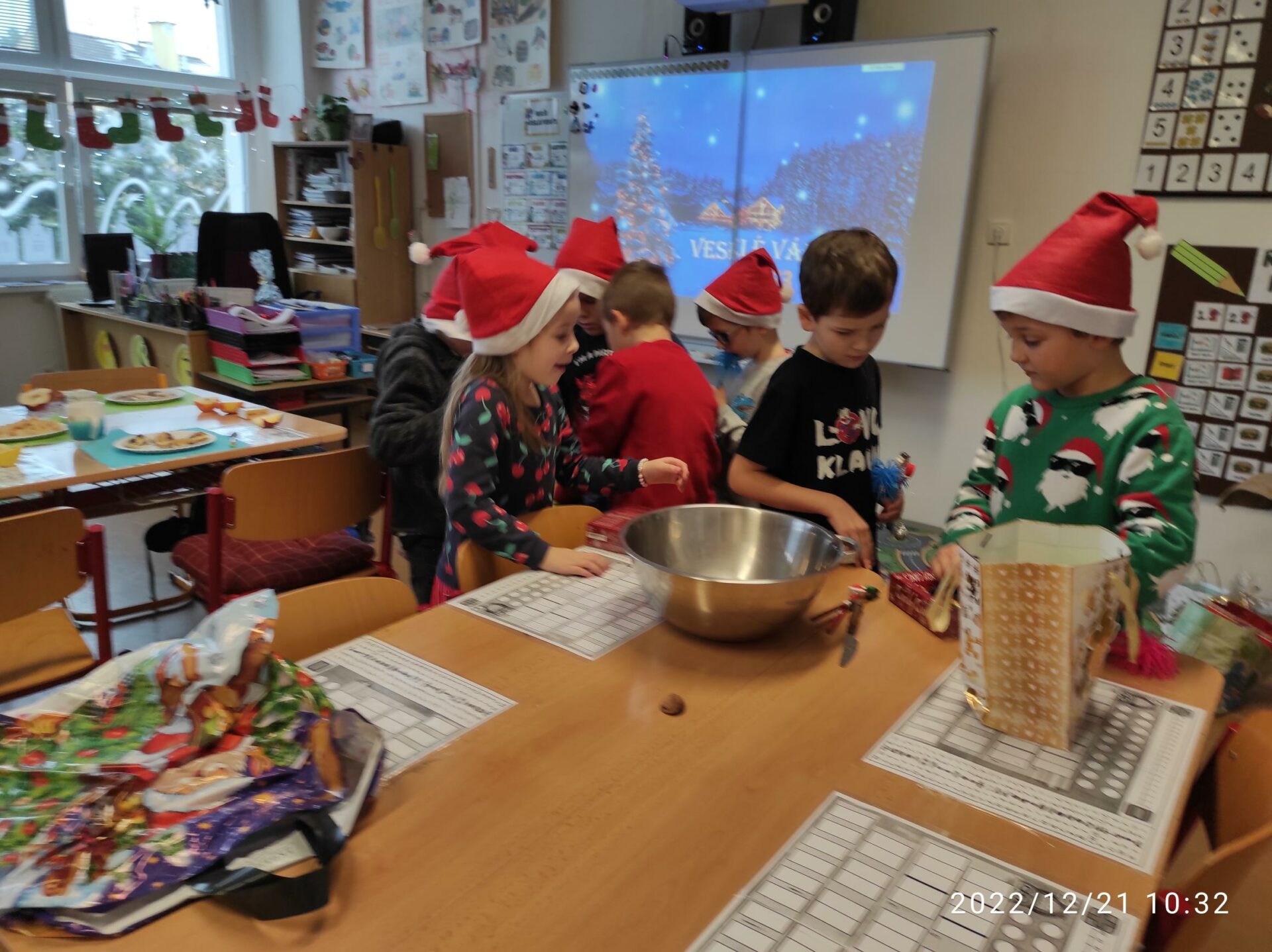 Jaké jsou vánoční tradice a zvyky se dnes na své první vánoční besídce dozvěděli naši prvňáčci. Od rána zjišťovali, kdy už ta besídka konečně začne. 🙂 Nakonec se přeci jen dočkali, a i když spousta jejich spolužáků zůstala doma kvůli nemoci, pořádně si jí užili. Na naše nemocné skřítky jsme ale nezapomněli. Spojili jsme se s nimi přes aplikaci WhatsApp videohovorem a aspoň trochu jim tu třídní vánoční atmosféru poslali. Přejeme všem krásné Vánoce ! 🙂