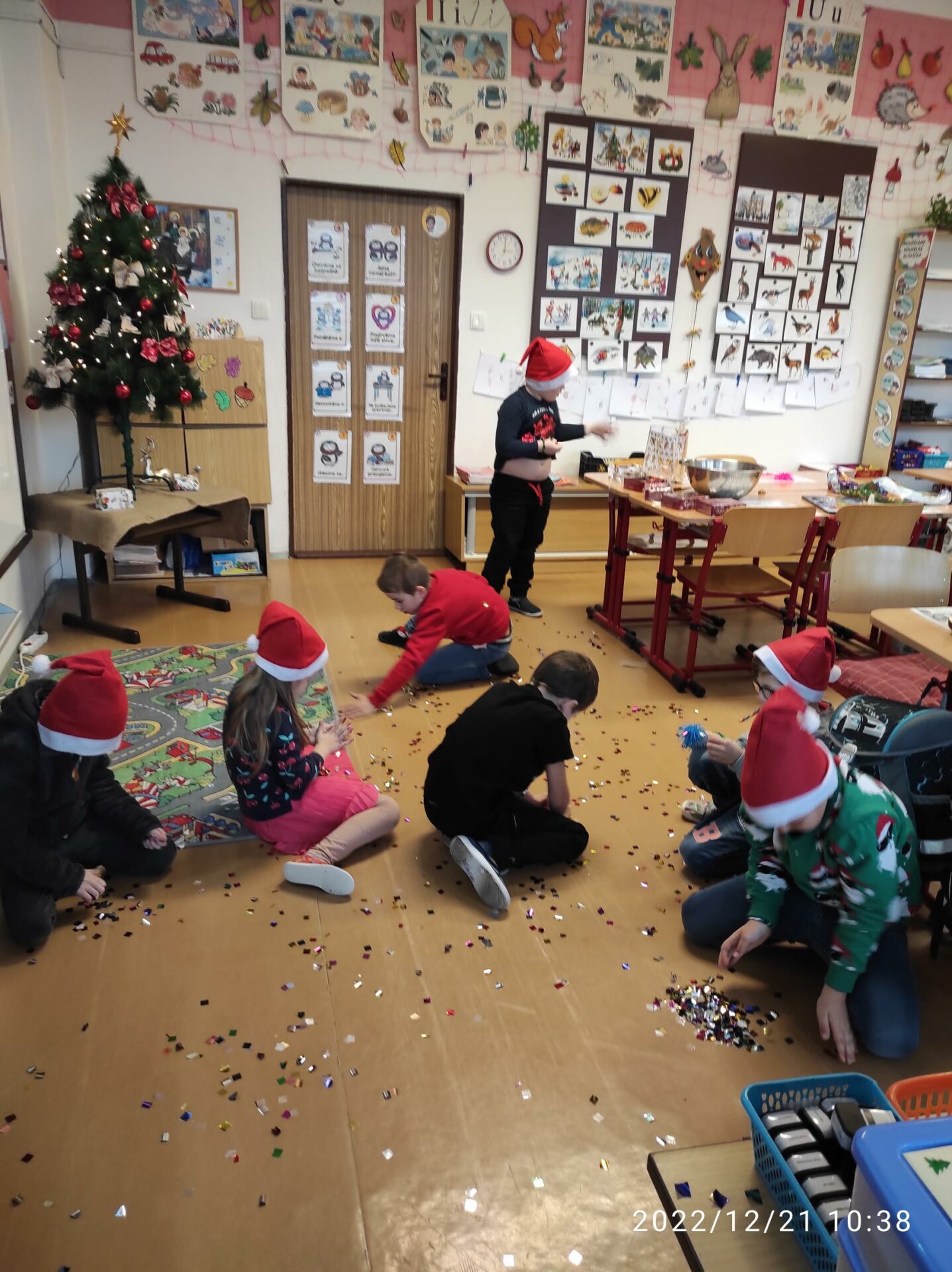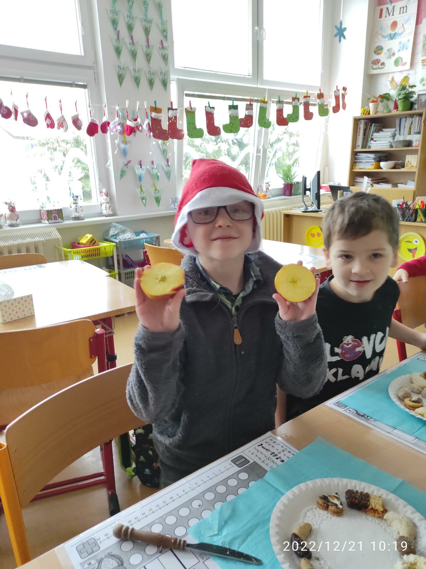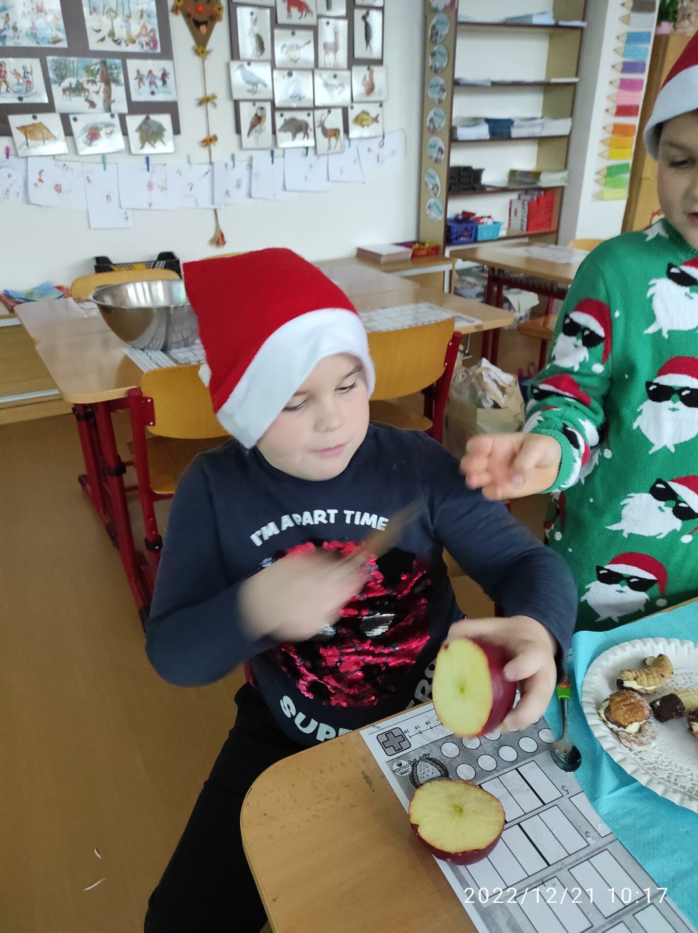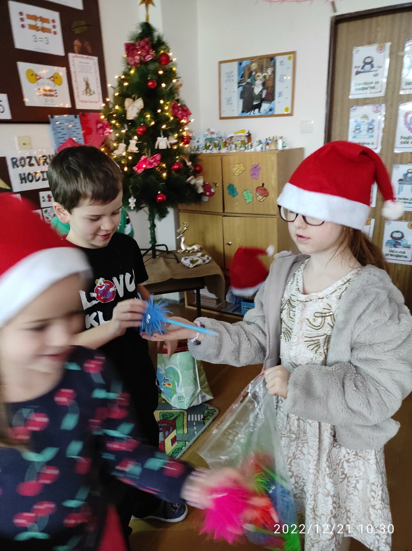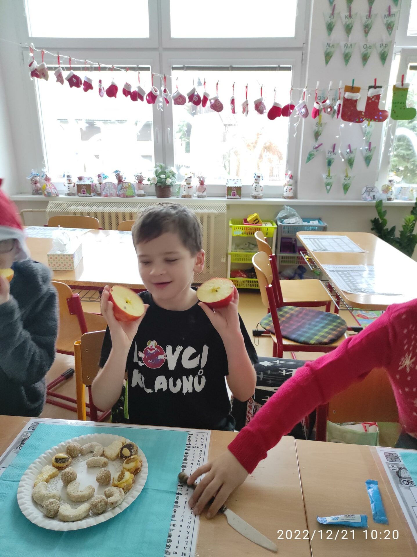 Jaké jsou vánoční tradice a zvyky se dnes na své první vánoční besídce dozvěděli naši prvňáčci. Od rána zjišťovali, kdy už ta besídka konečně začne. 🙂 Nakonec se přeci jen dočkali, a i když spousta jejich spolužáků zůstala doma kvůli nemoci, pořádně si jí užili. Na naše nemocné skřítky jsme ale nezapomněli. Spojili jsme se s nimi přes aplikaci WhatsApp videohovorem a aspoň trochu jim tu třídní vánoční atmosféru poslali. Přejeme všem krásné Vánoce ! 🙂