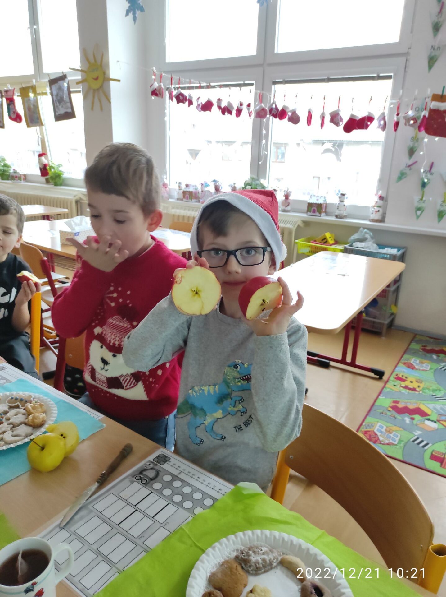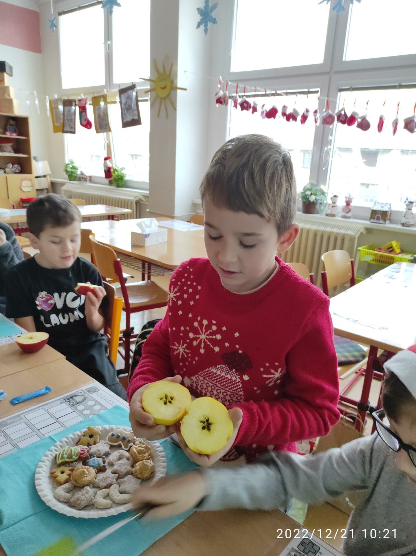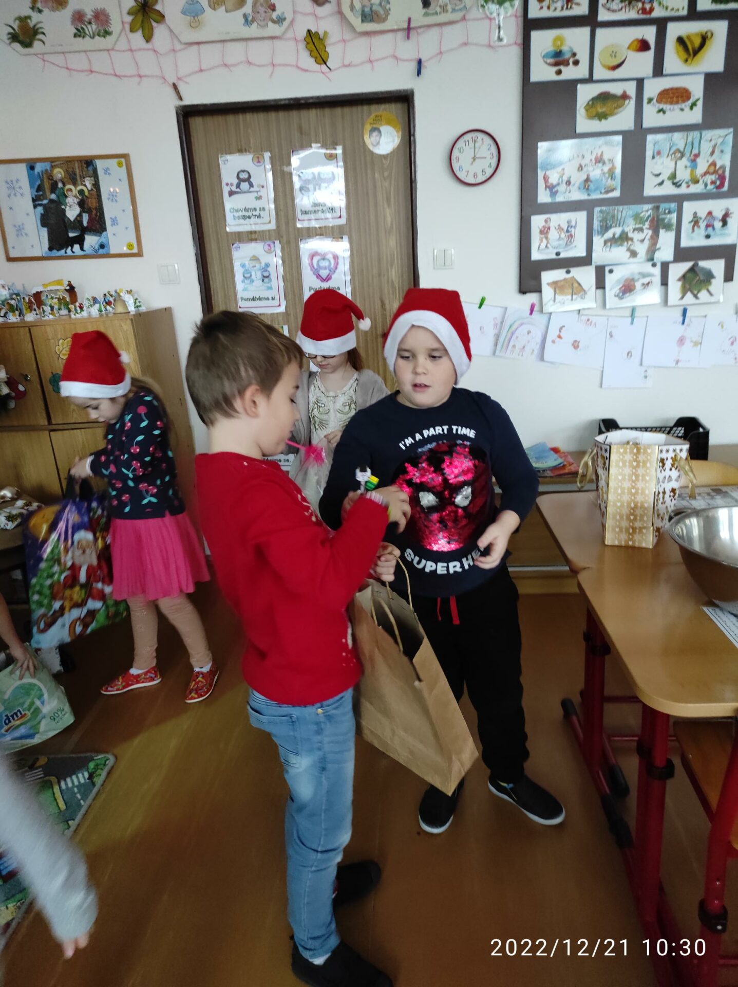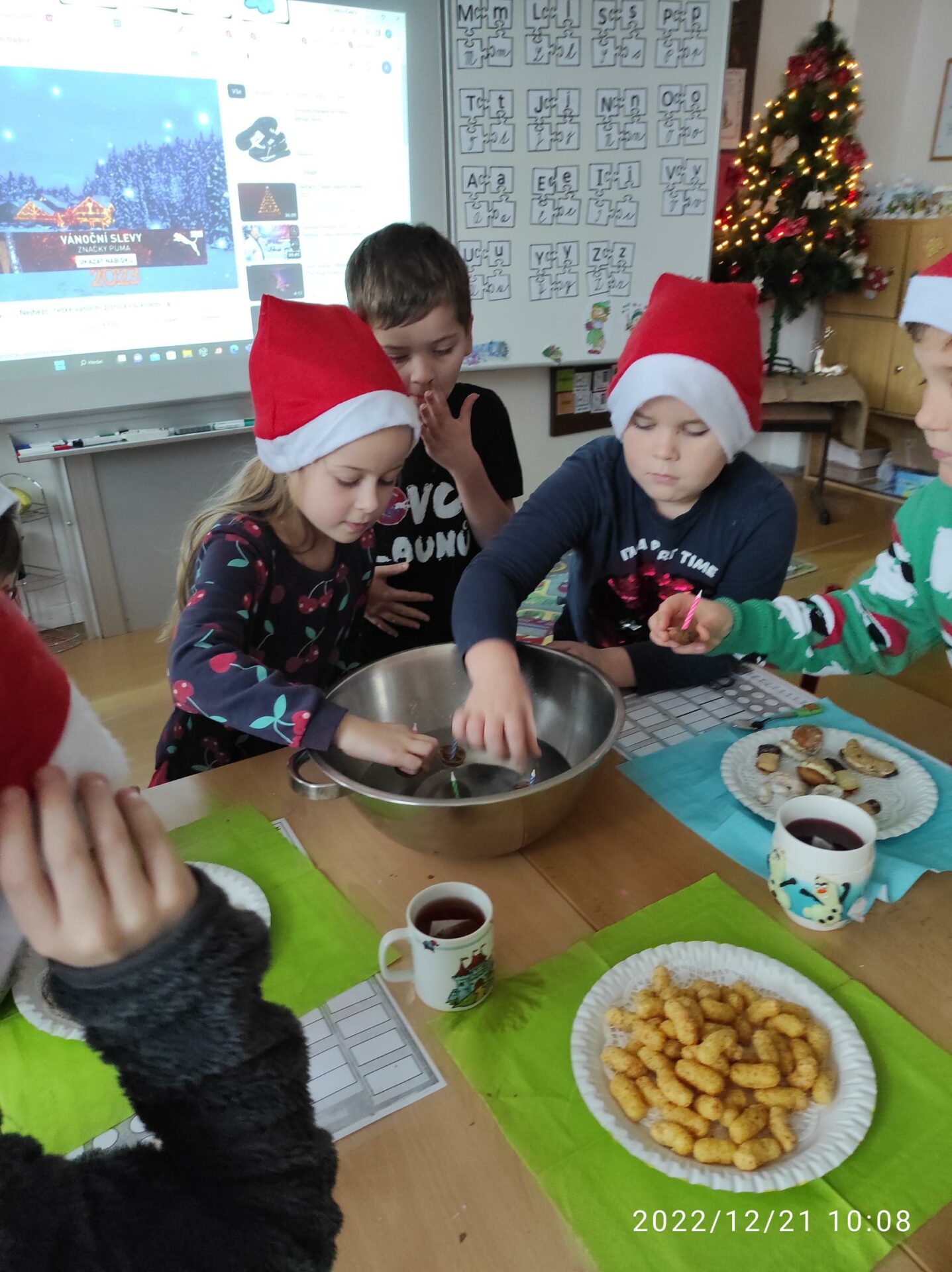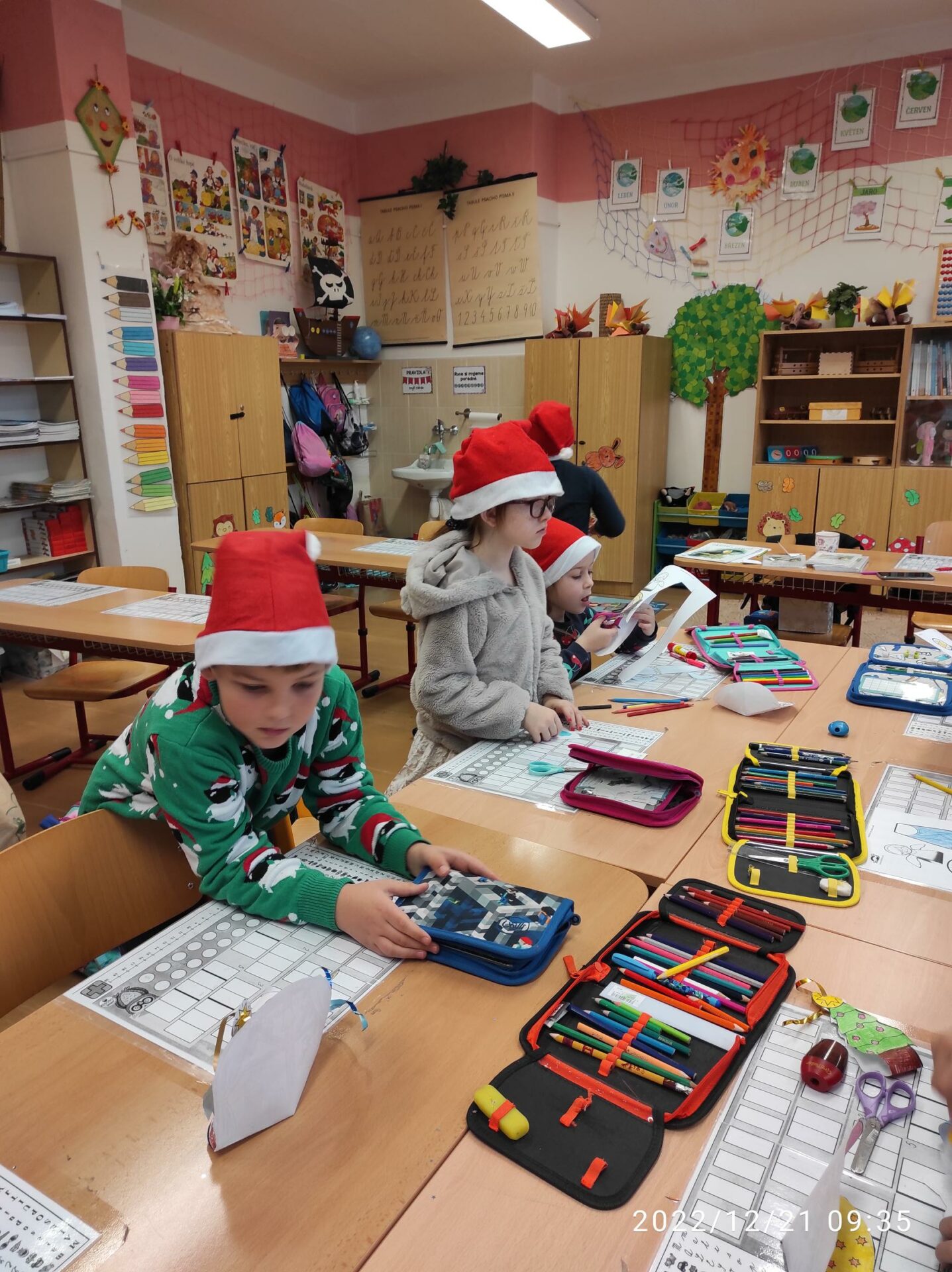 Jaké jsou vánoční tradice a zvyky se dnes na své první vánoční besídce dozvěděli naši prvňáčci. Od rána zjišťovali, kdy už ta besídka konečně začne. 🙂 Nakonec se přeci jen dočkali, a i když spousta jejich spolužáků zůstala doma kvůli nemoci, pořádně si jí užili. Na naše nemocné skřítky jsme ale nezapomněli. Spojili jsme se s nimi přes aplikaci WhatsApp videohovorem a aspoň trochu jim tu třídní vánoční atmosféru poslali. Přejeme všem krásné Vánoce ! 🙂