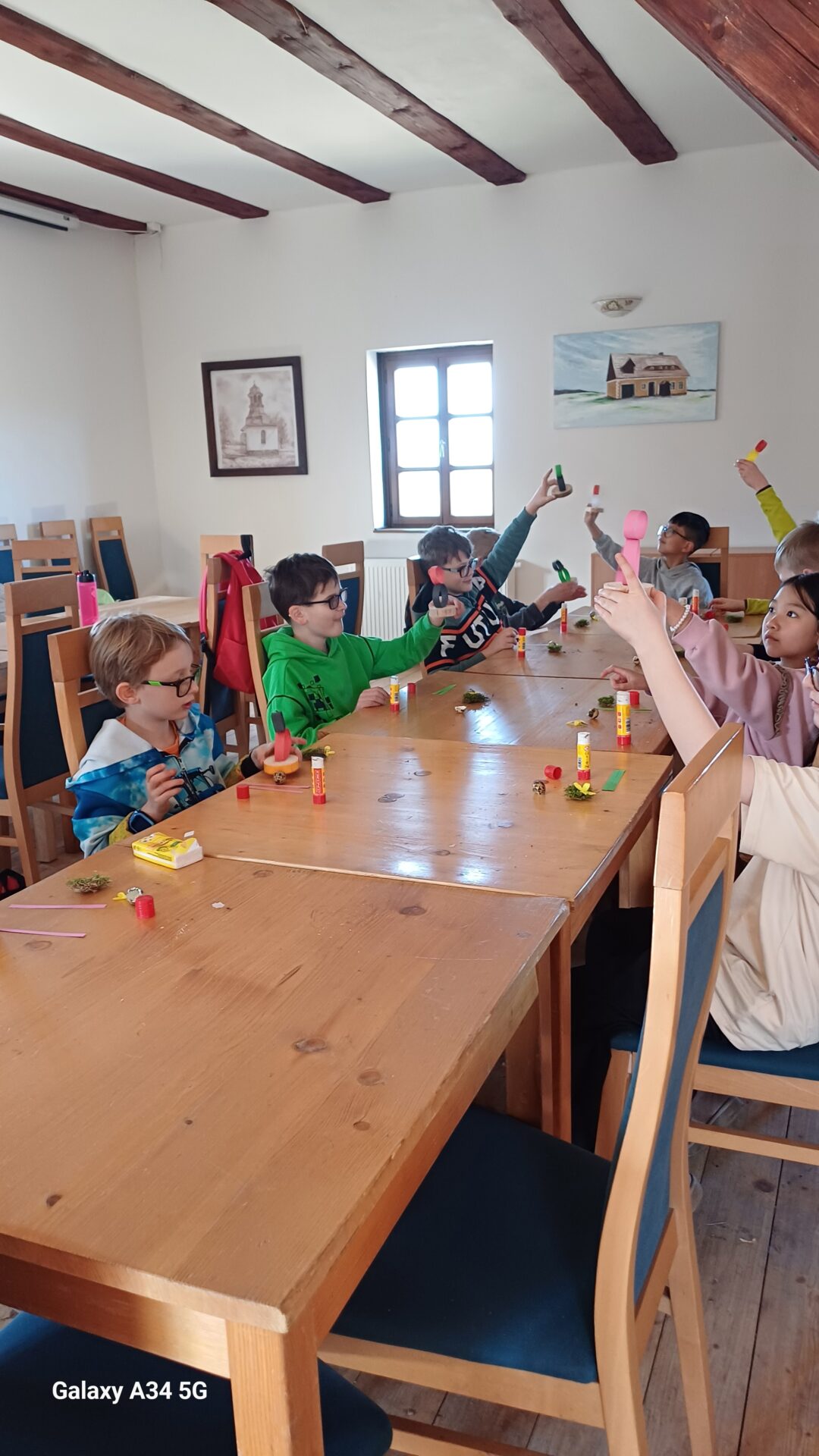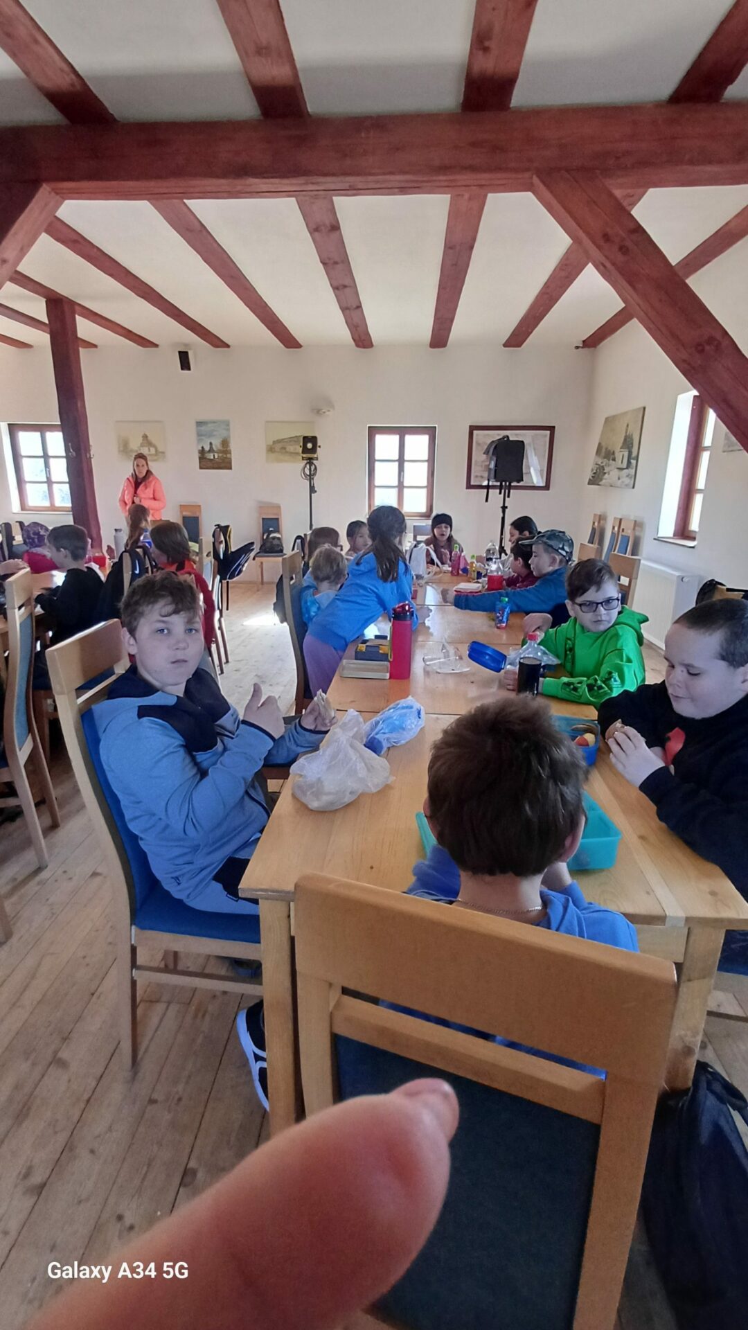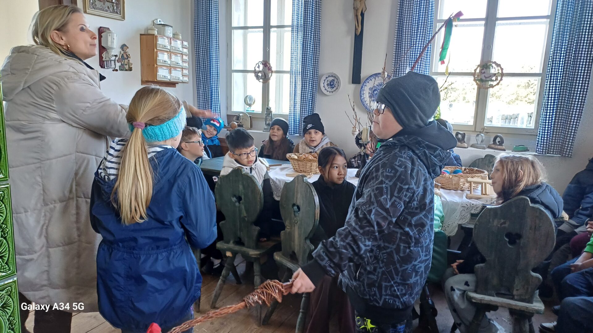 Moderovaný interaktivní program nás naladil do té správné velikonoční nálady . V pestrém programu jsme poznali zvyky, tradice a symboly krušnohorských Velikonoc v období masopustu až po význam pašijového týdne. Nahlédli jsme do světa lidových či zlidovělých řemesel, spojených s velikonočními svátky, poznali jsme zvuk řehtaček a klapáčů. V rukodělných dílničkách jsme si vlastnoručně vyrobili velikonoční dekorace s jarní tématikou. Ve velikonočním průvodu jsme pomocí řehtaček a říkadel vyhnali zlé duchy z chalupy a rozloučili se s paní zimou. Měli jsme také možnost setkat se s malými hospodářskými zvířátky. Program jsme zakončili nákupem suvenýrů pro naše blízké a vrátklu se zpět do školy. Žáci 3.B 🐑🐣🐇👍