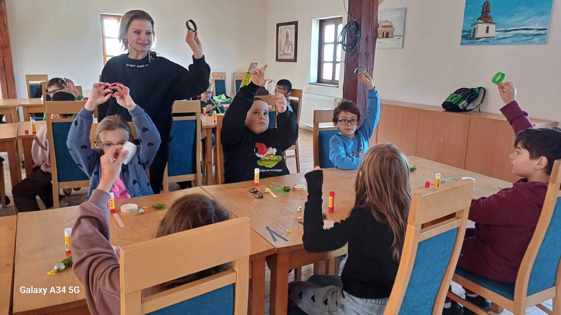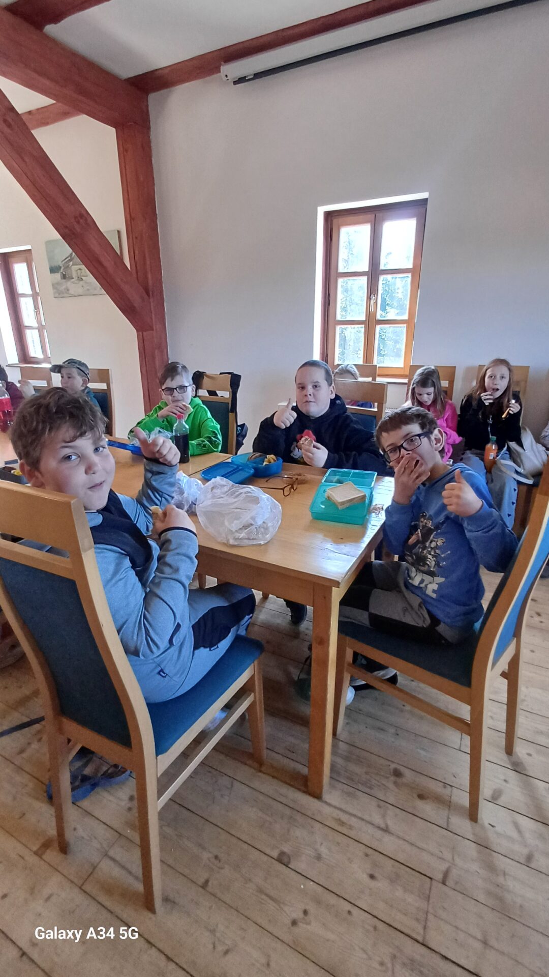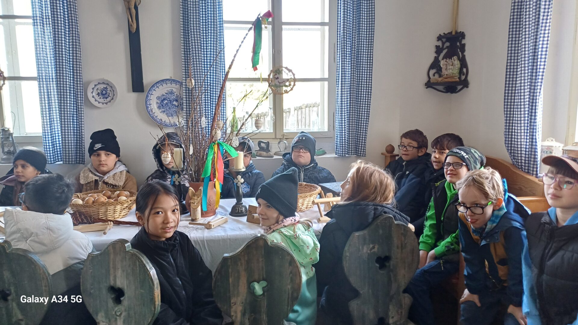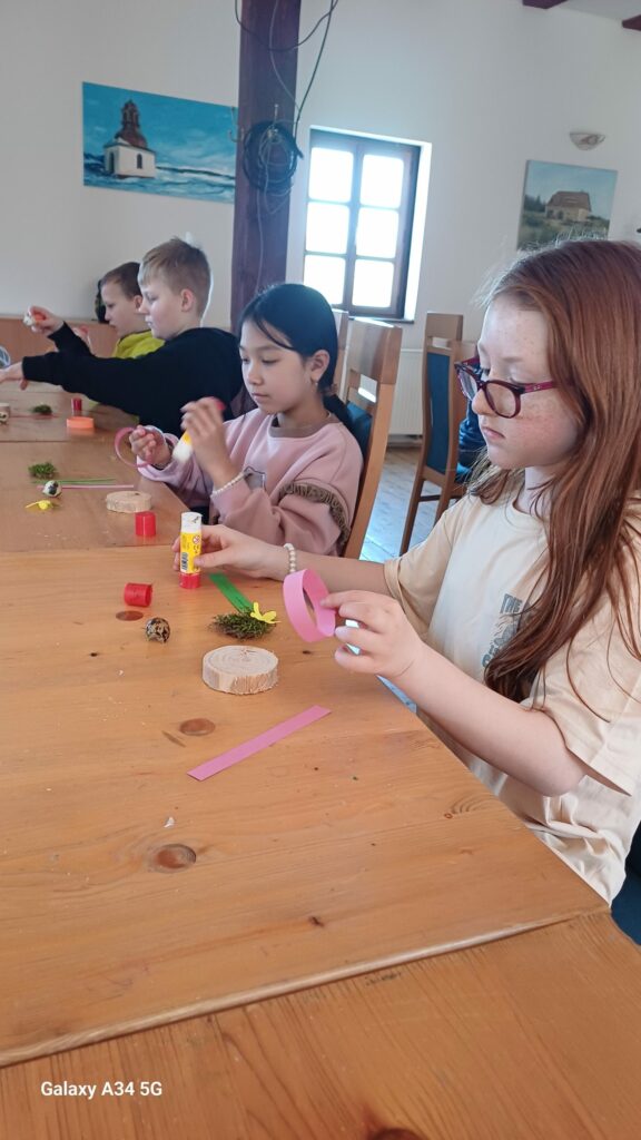Moderovaný interaktivní program nás naladil do té správné velikonoční nálady . V pestrém programu jsme poznali zvyky, tradice a symboly krušnohorských Velikonoc v období masopustu až po význam pašijového týdne. Nahlédli jsme do světa lidových či zlidovělých řemesel, spojených s velikonočními svátky, poznali jsme zvuk řehtaček a klapáčů. V rukodělných dílničkách jsme si vlastnoručně vyrobili velikonoční dekorace s jarní tématikou. Ve velikonočním průvodu jsme pomocí řehtaček a říkadel vyhnali zlé duchy z chalupy a rozloučili se s paní zimou. Měli jsme také možnost setkat se s malými hospodářskými zvířátky. Program jsme zakončili nákupem suvenýrů pro naše blízké a vrátklu se zpět do školy. Žáci 3.B 🐑🐣🐇👍