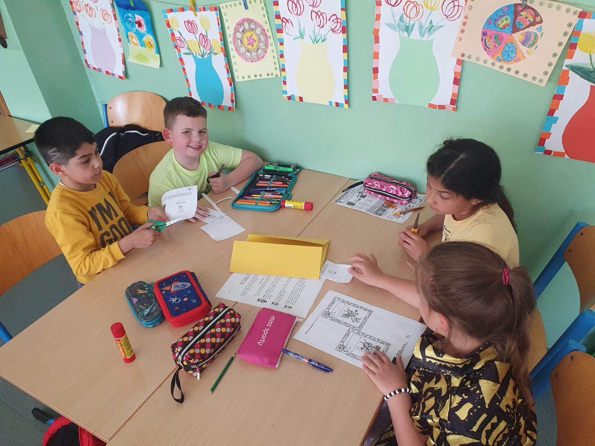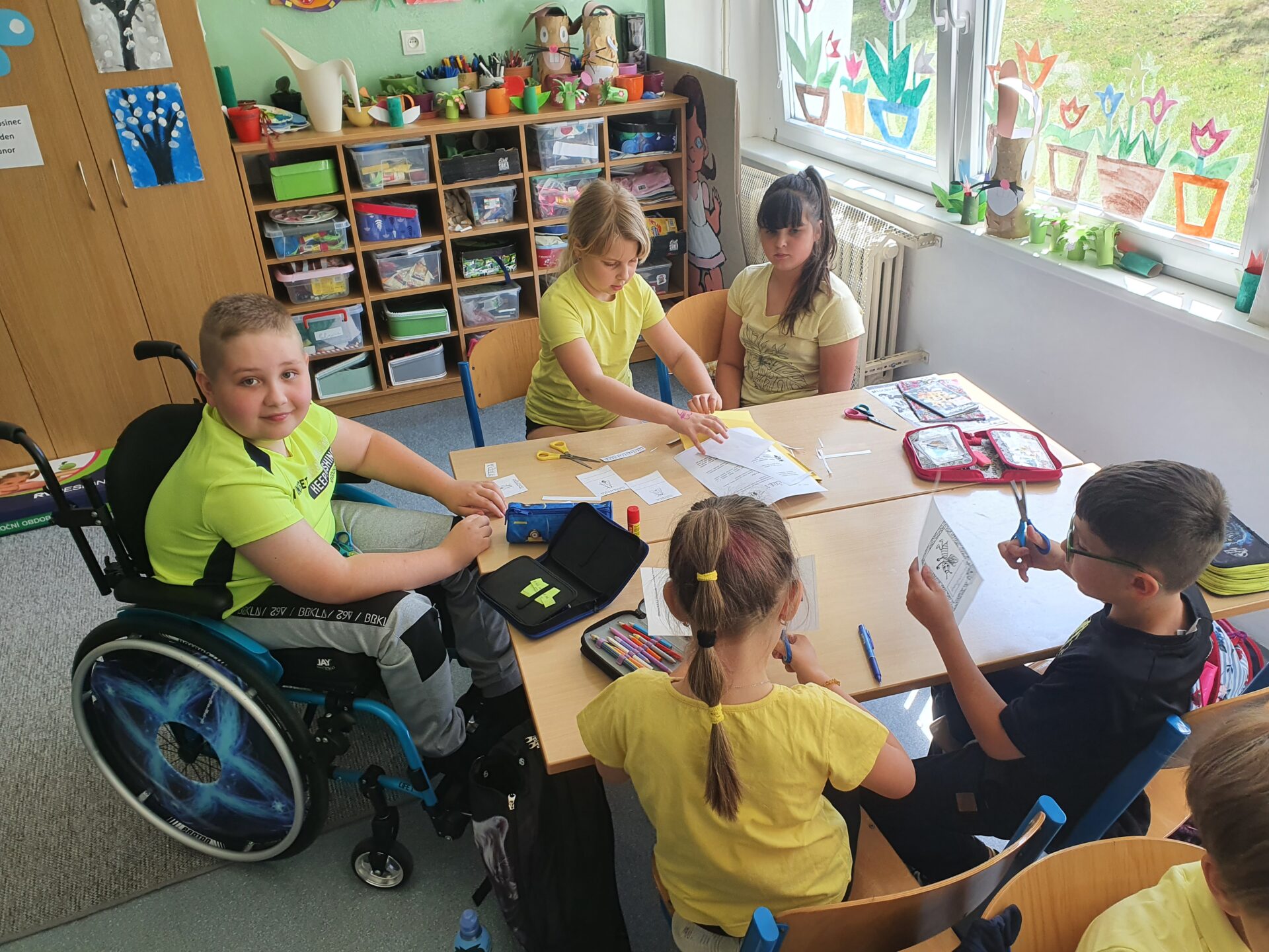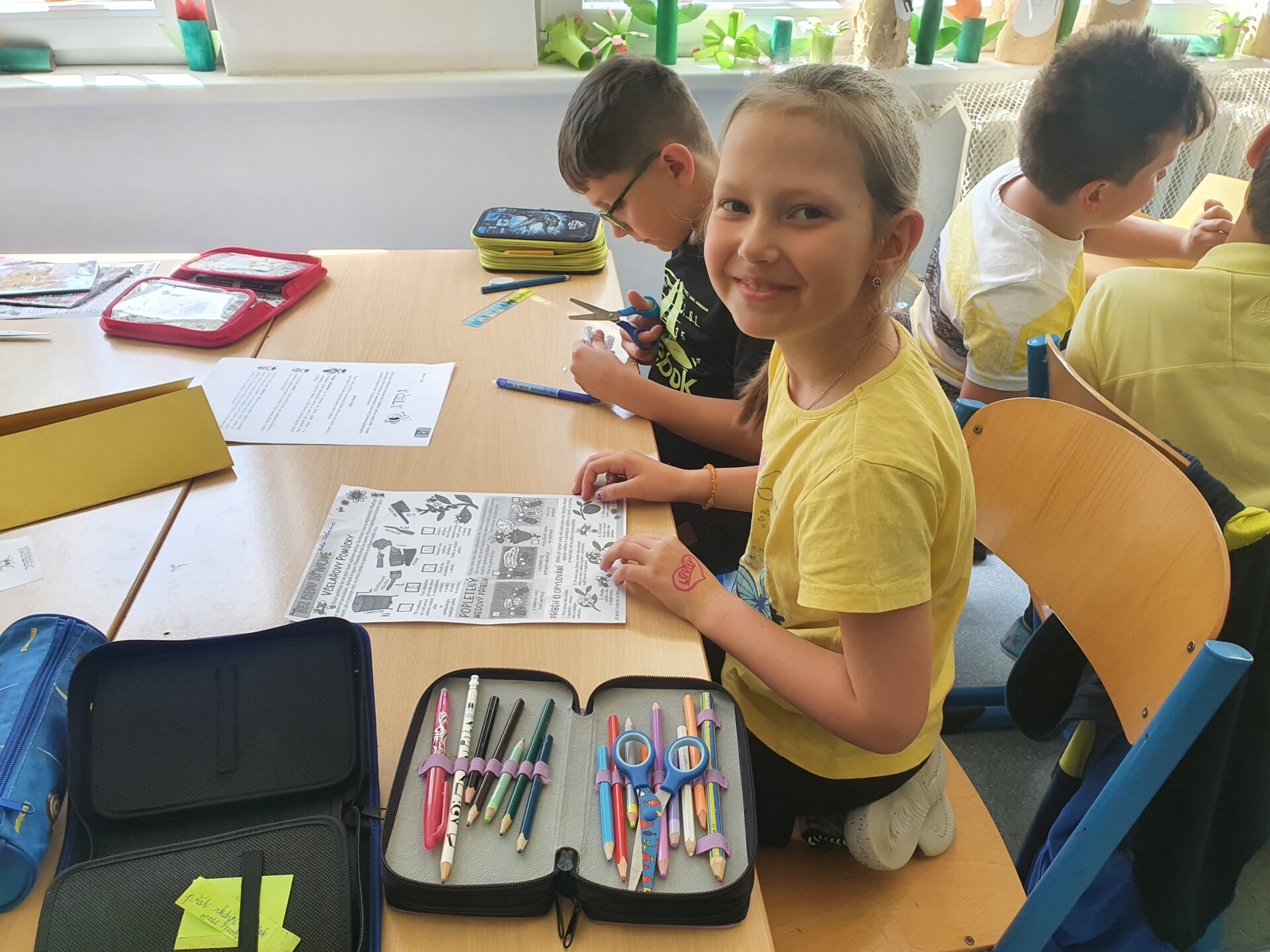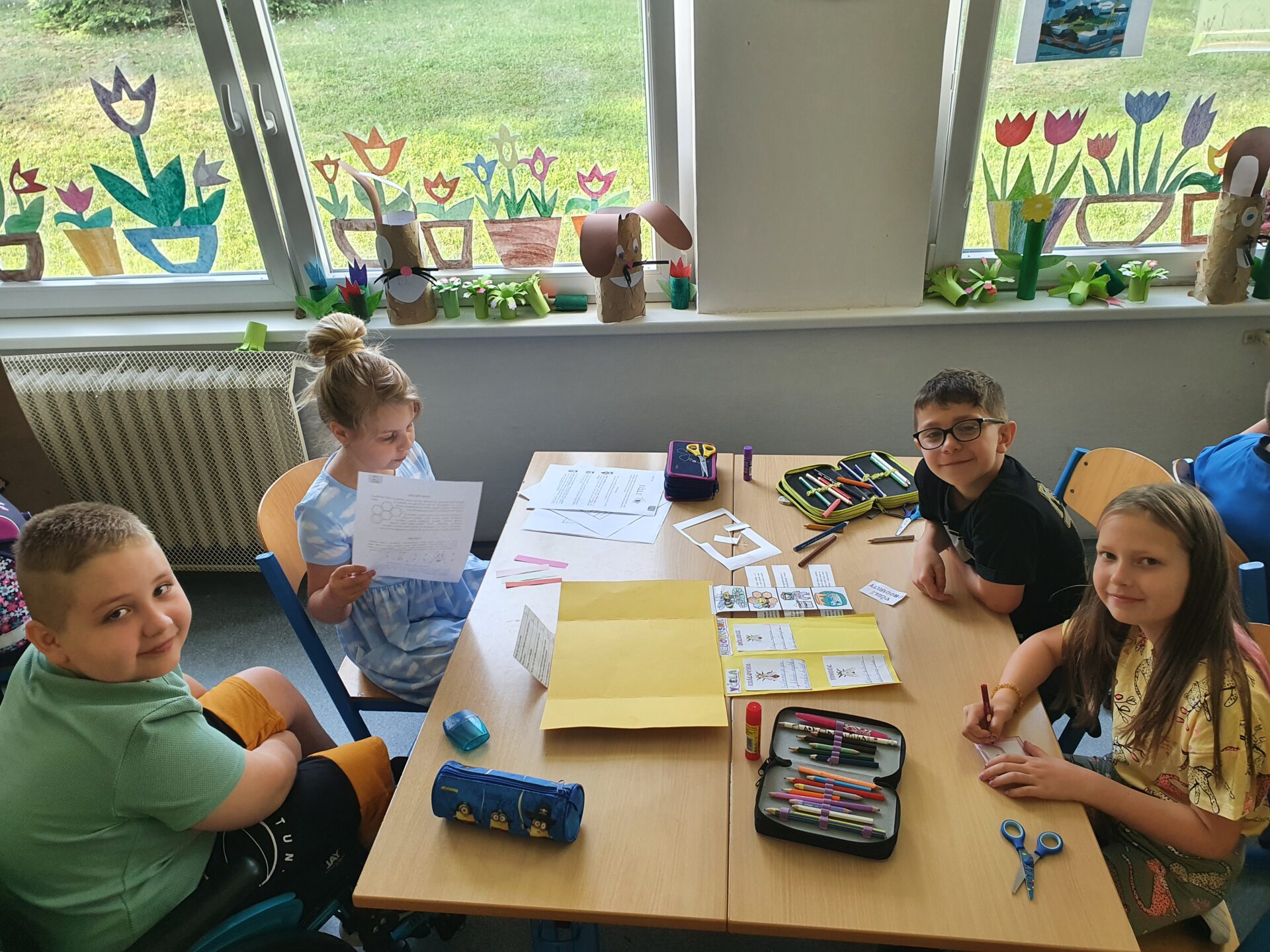 Během včelího českého jazyka, matematiky a prvouky sledovali, poslouchali a pátrali po zajímavostech ze života včel. Nabité informace potom ve skupinách pomocí pracovních listů vlepovali do leporela a na závěr si při vědomostní soutěži vyzkoušeli, kolik zajímavostí si pamatují. Zeptejte se a uvidíte. Zaslouží si pochvalu.