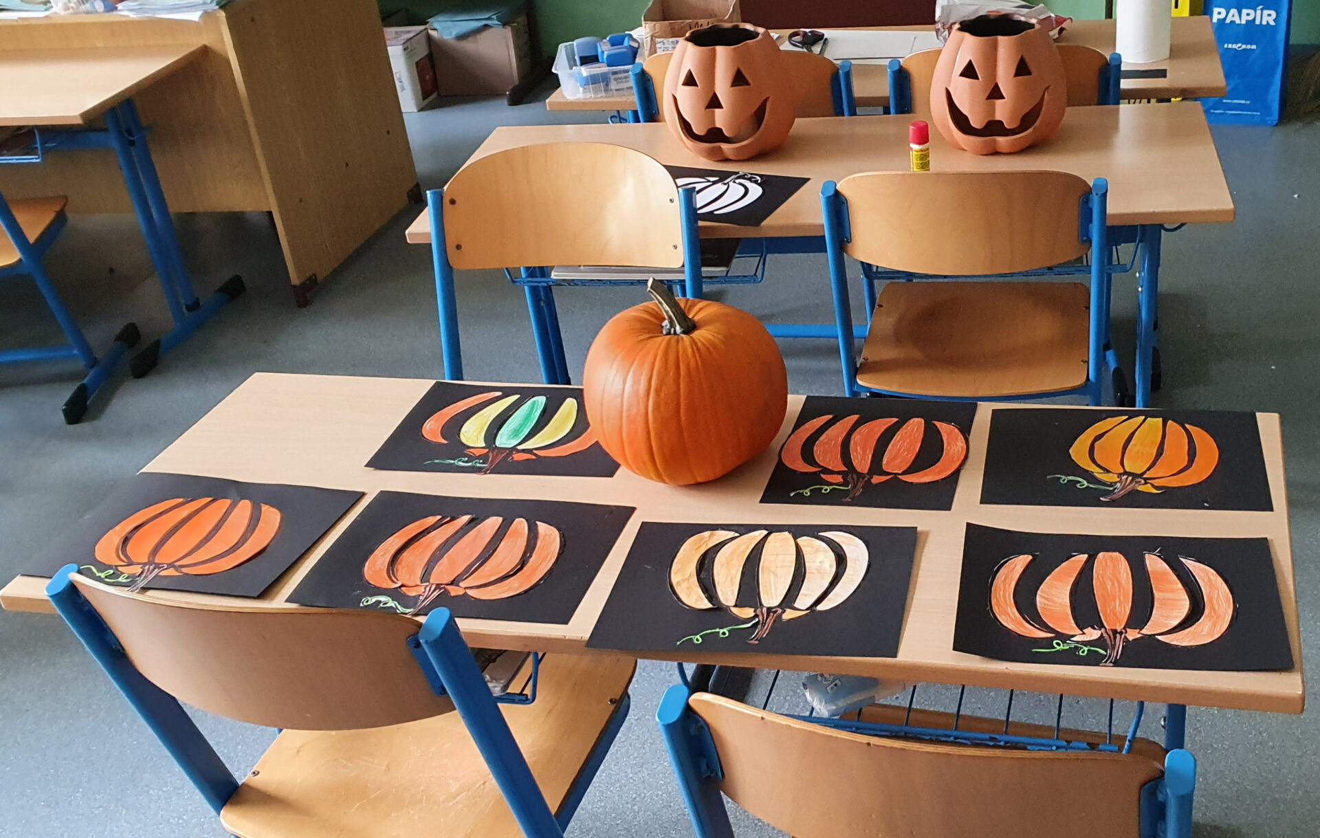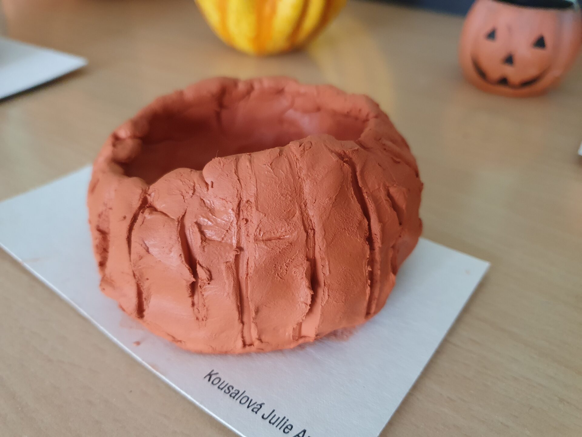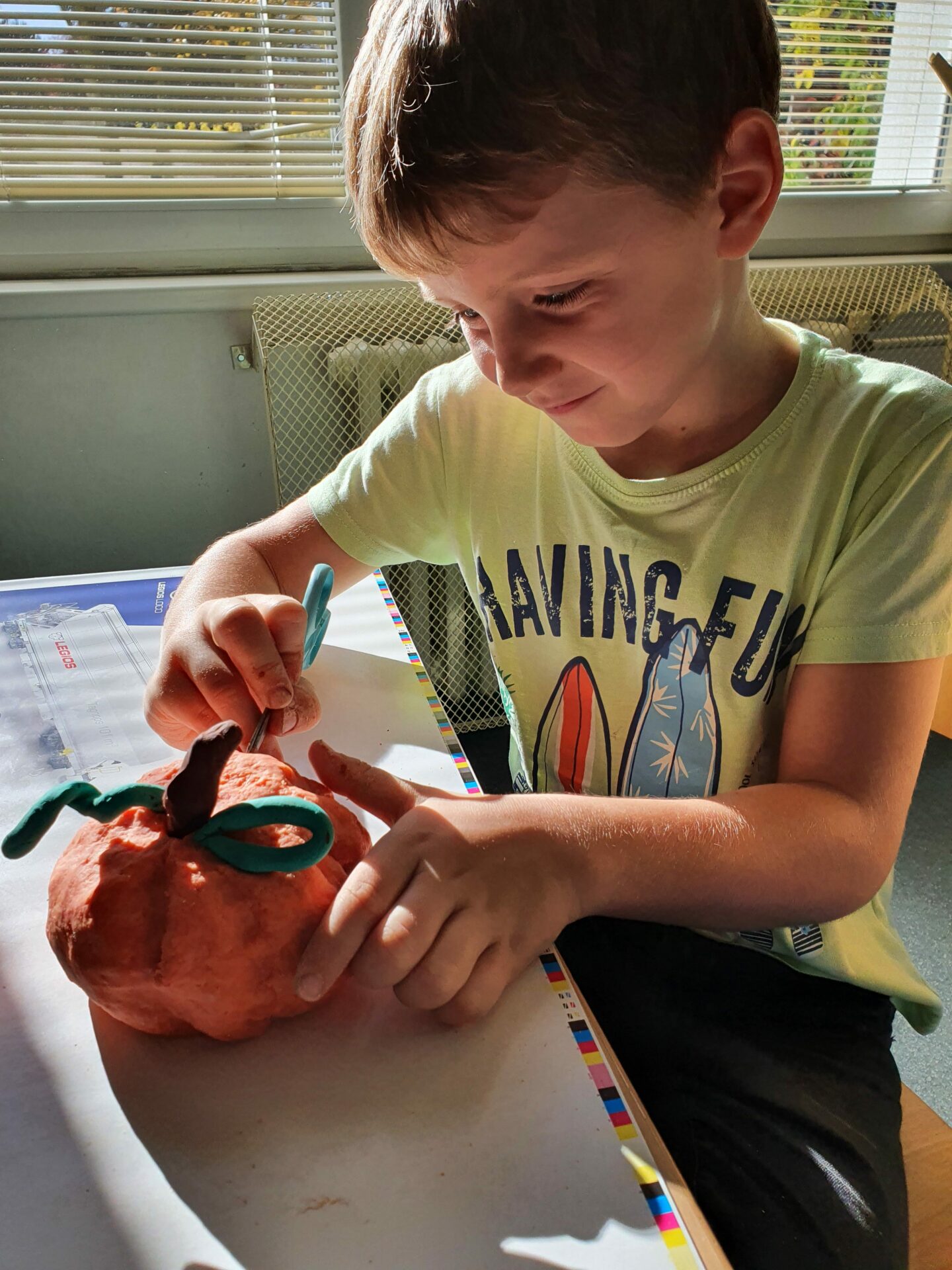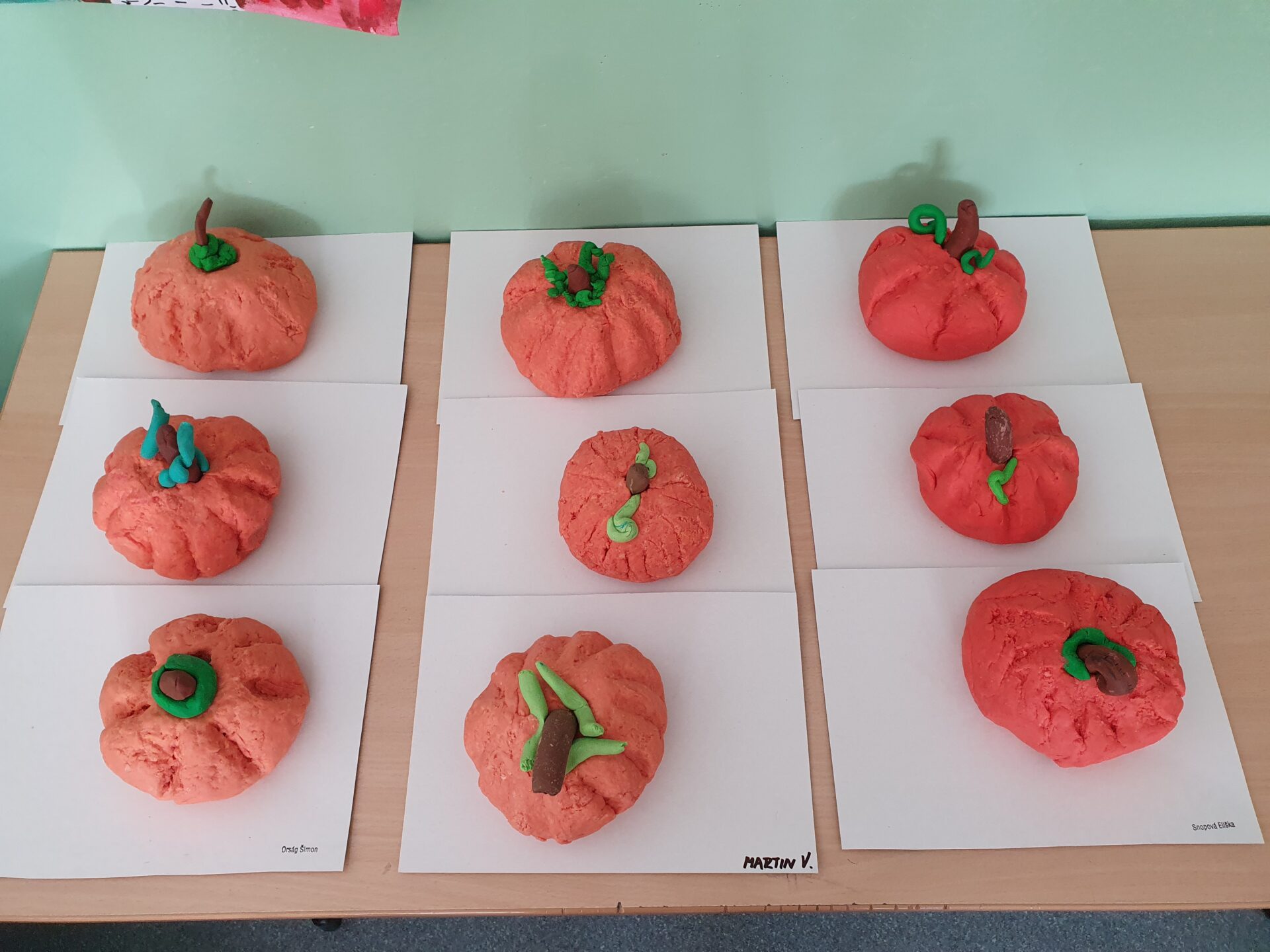 22.10 si druháčci udělali Dýňový čtvrtek. Během několikahodinové výtvarné dílny si šikulové vyrobili domácí modelínu a zkoumali její vlastnosti při modelování dýní. Trochu jiné vlastnosti objevili u keramické hmoty, ze které vymodelovali dýňové svícny. Čas, který obě hmoty potřebovaly k odležení, děti vyplnily dýňovým puzzle.