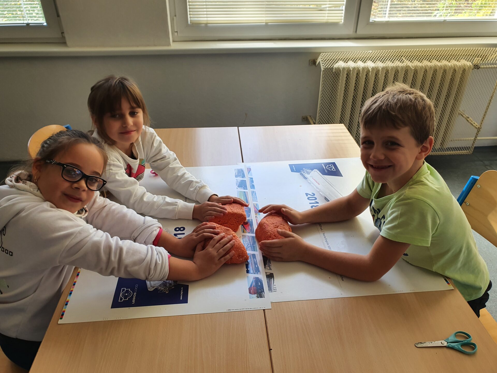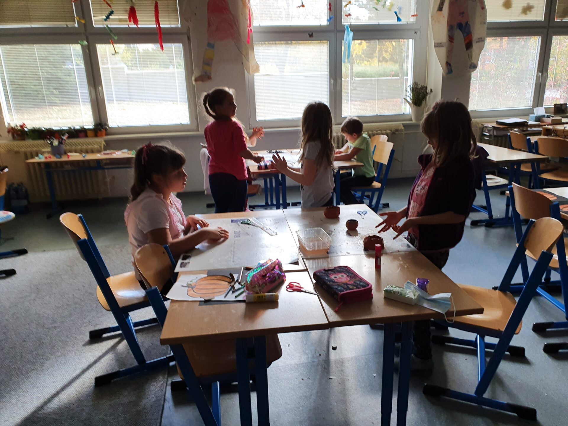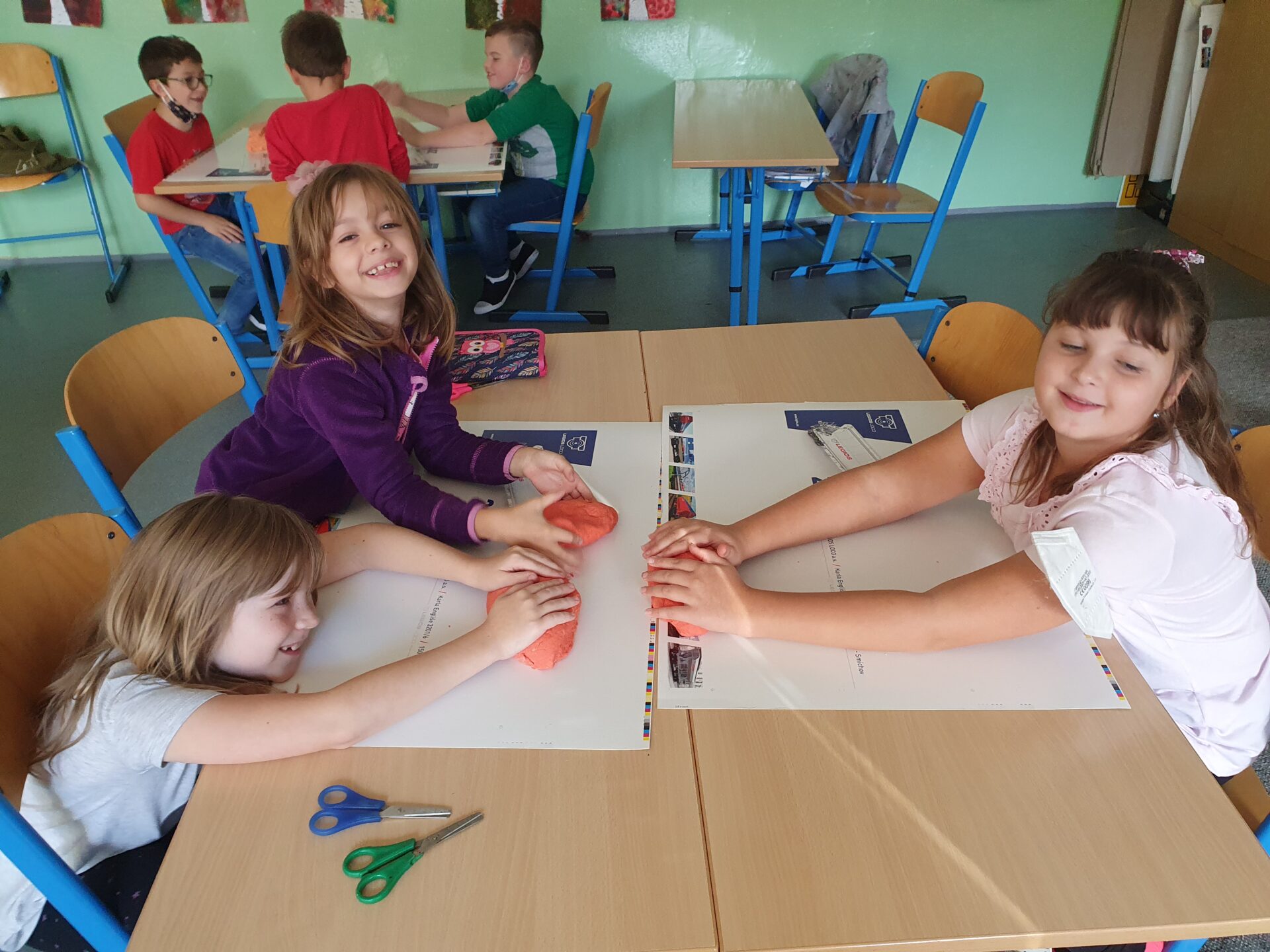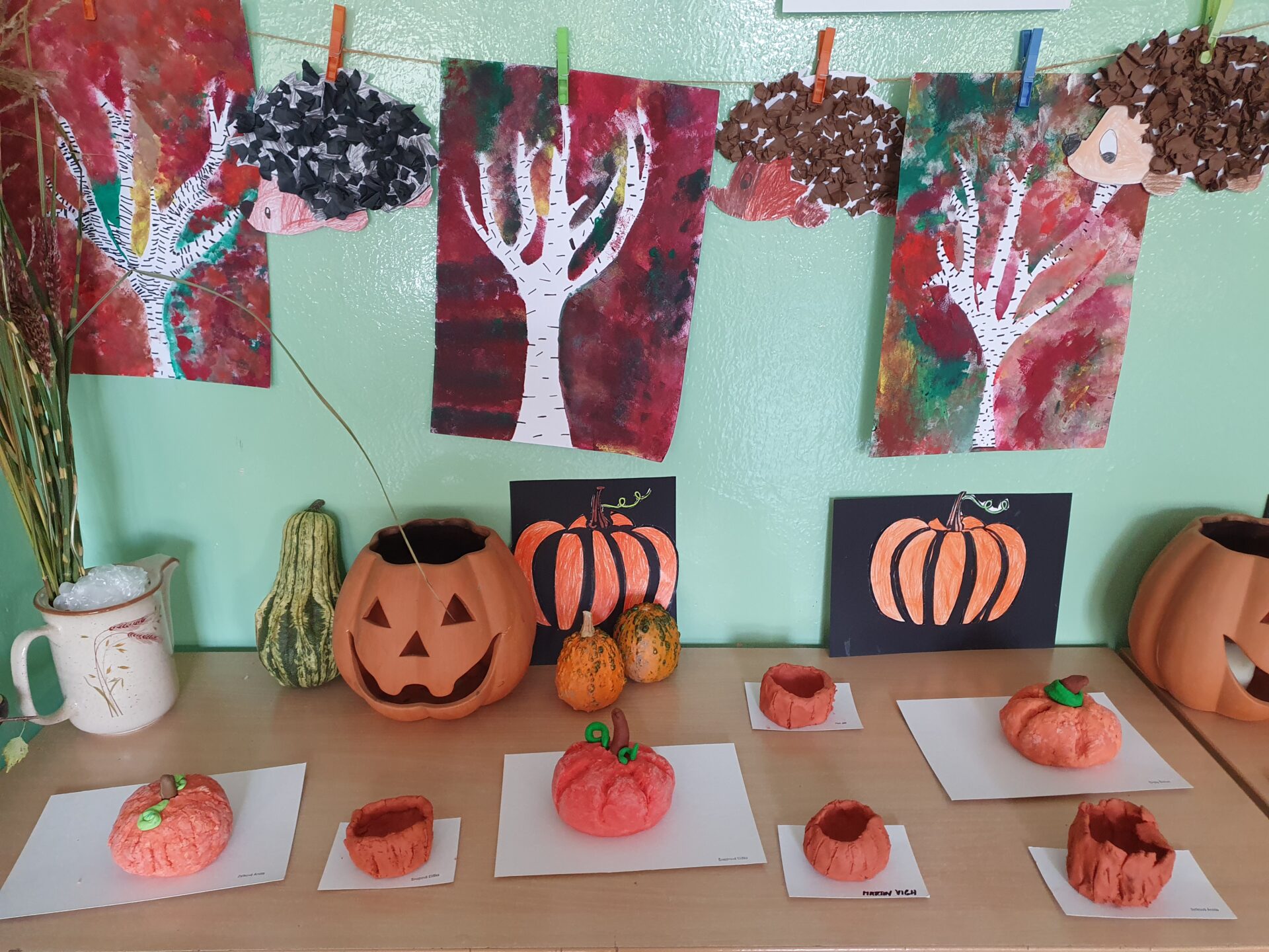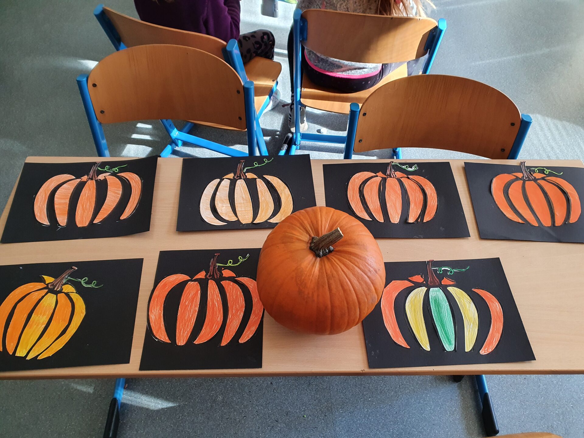 22.10 si druháčci udělali Dýňový čtvrtek. Během několikahodinové výtvarné dílny si šikulové vyrobili domácí modelínu a zkoumali její vlastnosti při modelování dýní. Trochu jiné vlastnosti objevili u keramické hmoty, ze které vymodelovali dýňové svícny. Čas, který obě hmoty potřebovaly k odležení, děti vyplnily dýňovým puzzle.