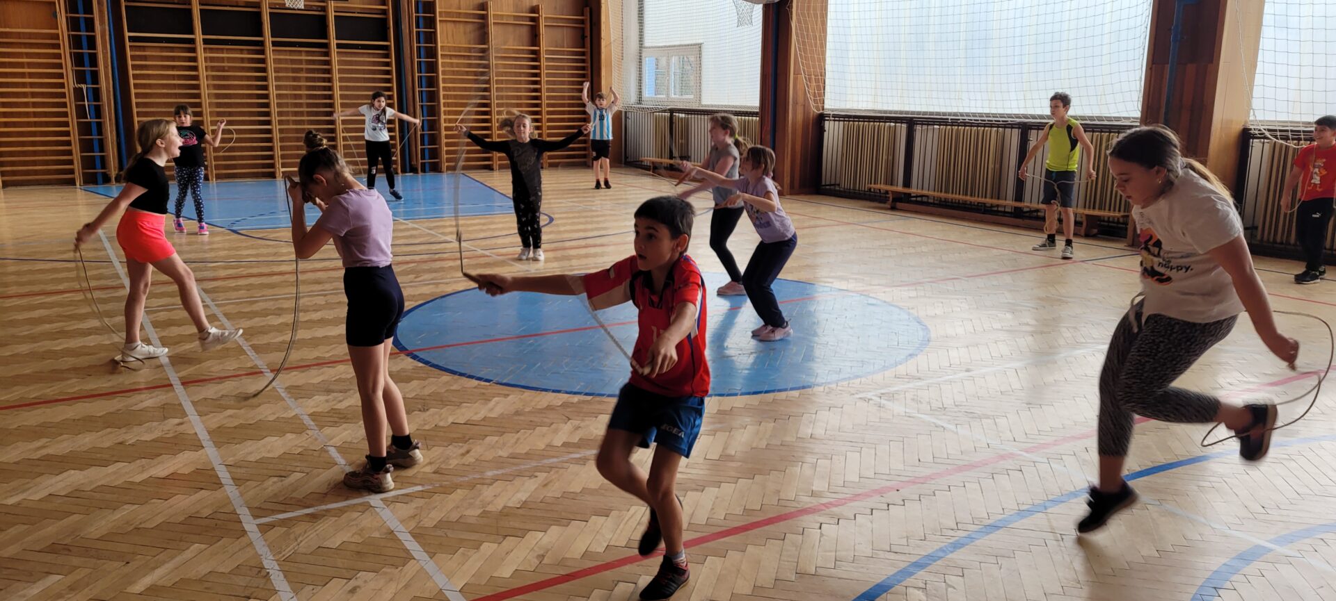 O hodinu tělesné výchovy jsme si vyzkoušeli skákání přes švihadla. A byla to fuška! Další zprávyNa dva dny novinářem9. 4. 2025Mc Donald’s Cup 26.ročník – školní kolo fotbalového turnaje3. 2. 2025T- Mobile olympijský běh19. 6. 2024Dětský den14. 6. 2024Dopravní hřiště14. 6. 2024Kapka medu pro Verunku28. 5. 2024