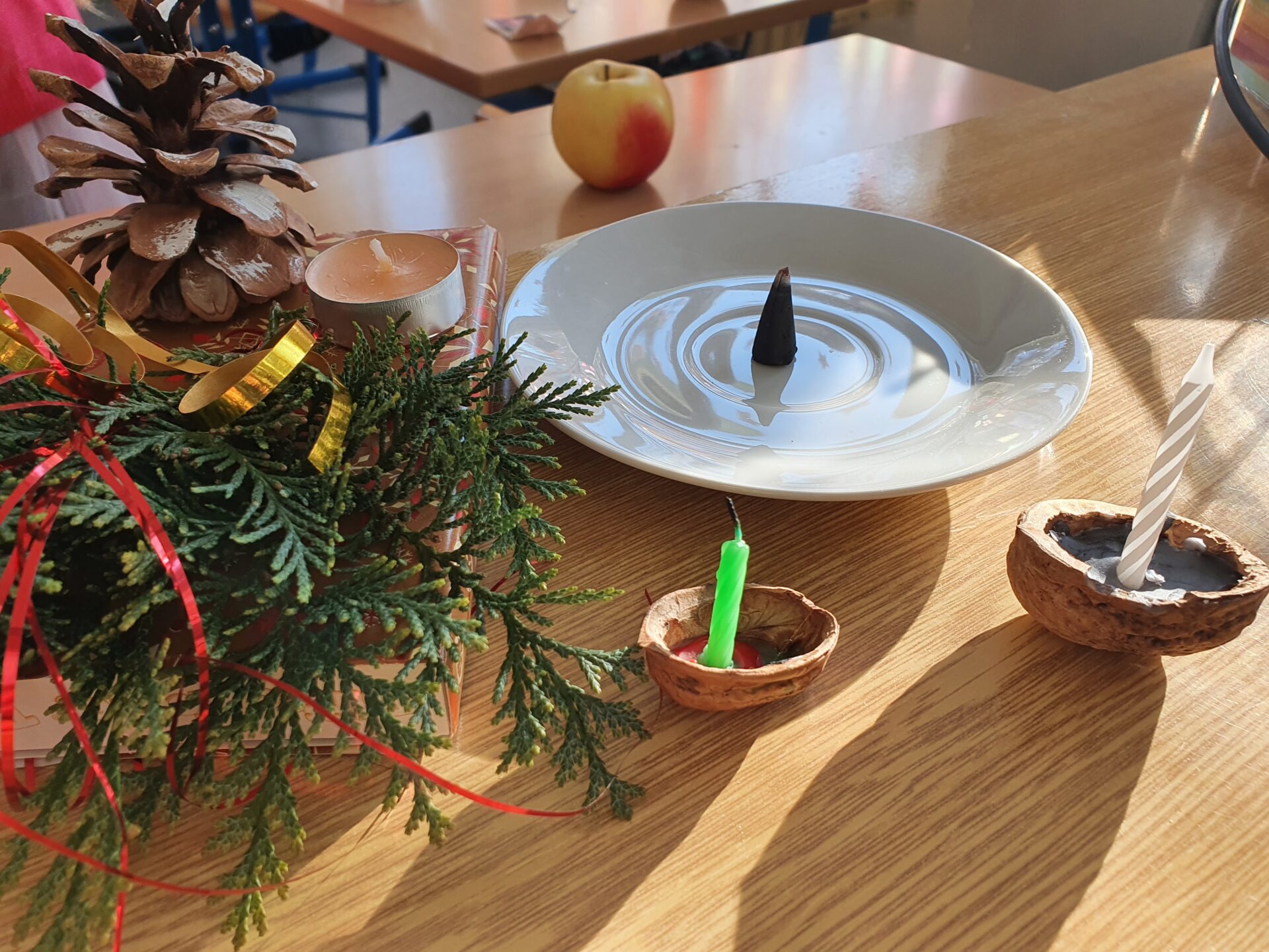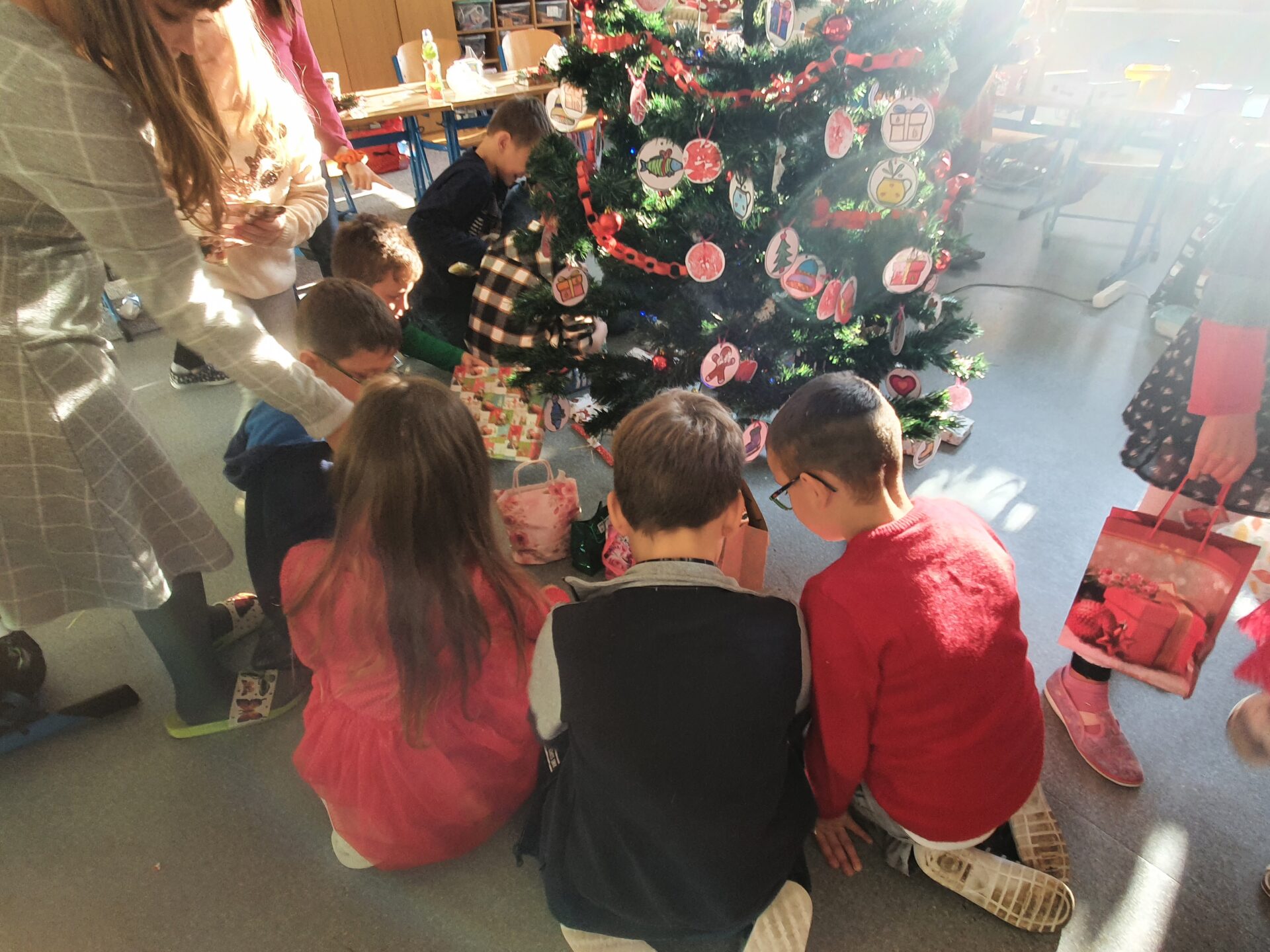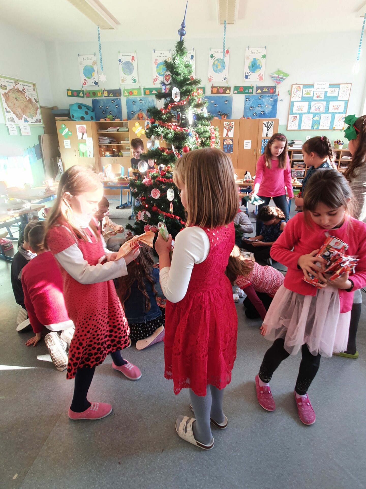, zpívaly koledy, vyprávěly si o Ježíškovi, krájely jablíčka, pouštěly lodičky, lily vosk, holčičky házely bačkorou, ochutnávaly vánočku, cukroví, popřály si krásné Vánoce i celé prázdniny a šťastný nový rok, procvičily věty přací a hlavně si rozdaly dárky pod vánočním stromečkem. A potom už rychle domů a : ,,Ať ten poslední den rychle uteče.,,