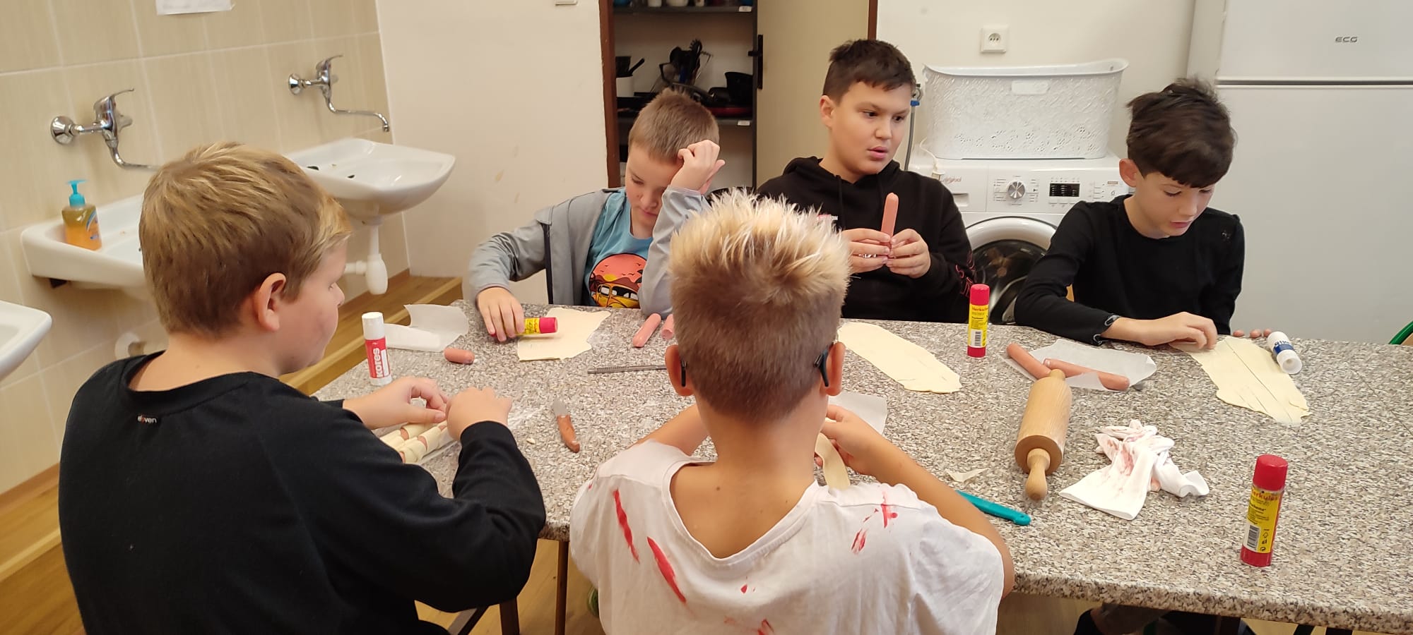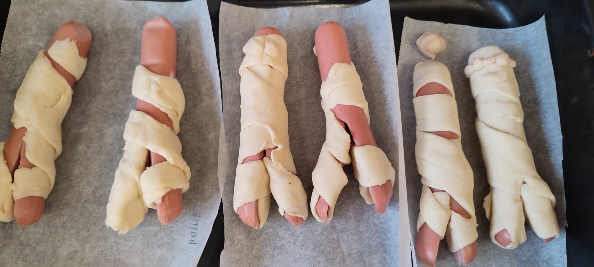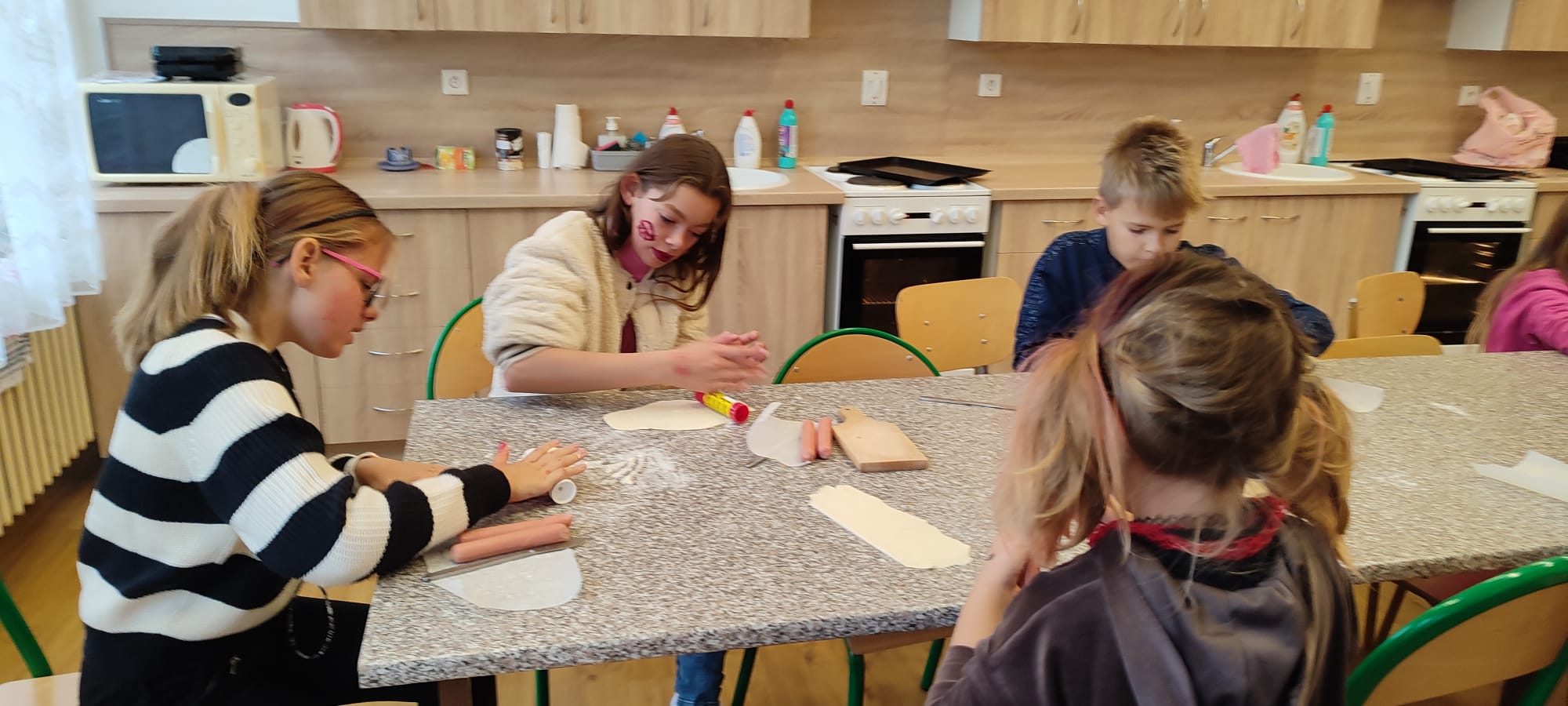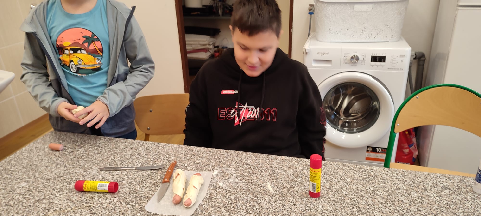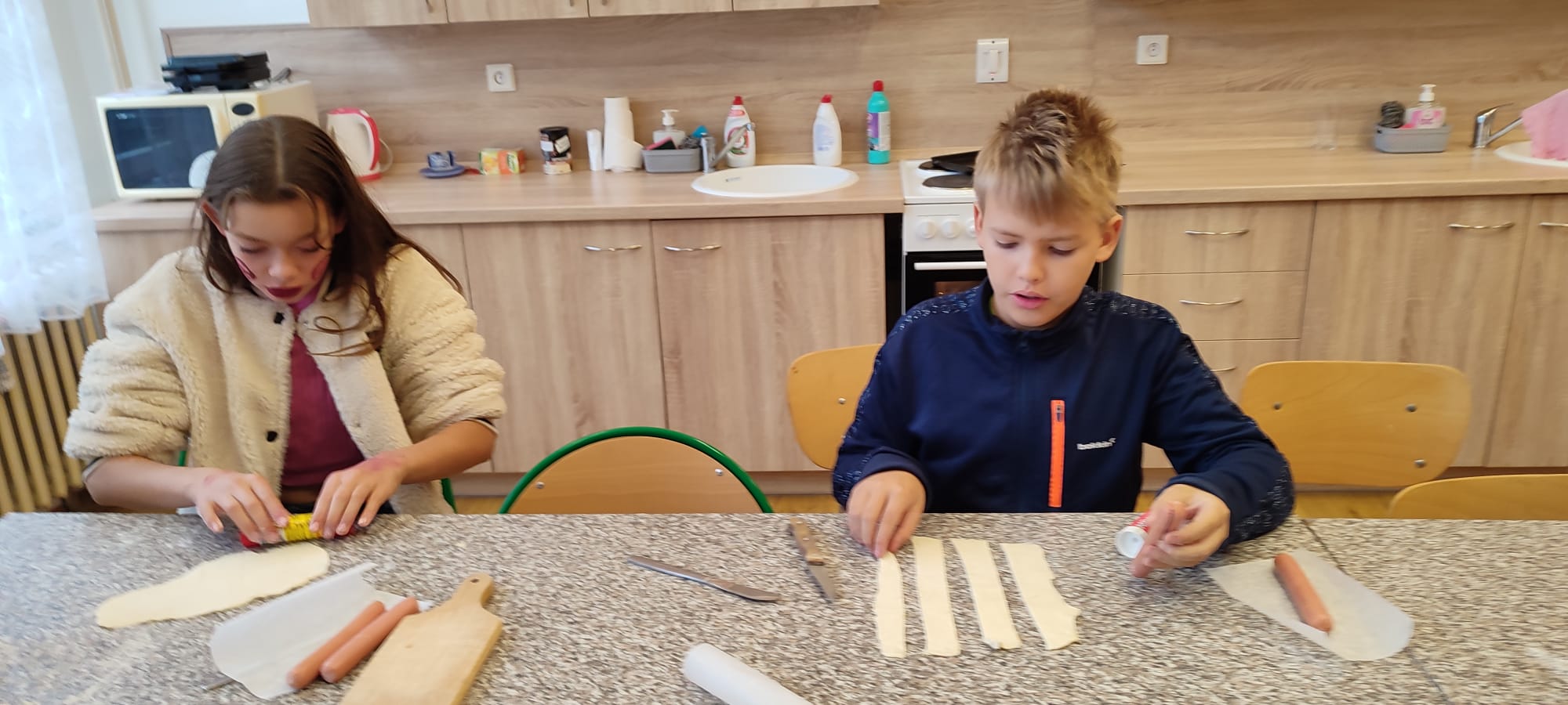 V tento den, 31.10. nás odpoledne čekala akce s rodiči, a proto jsme se rozhodli, že jim upečeme něco dobrého, samozřejmě i pro nás. Jedna třída párek v těstíčku, druhá třída jablečný závin. Oboje se moc povedlo a hlavně chutnalo. Byli jste a ochutnali? My ano 🙂