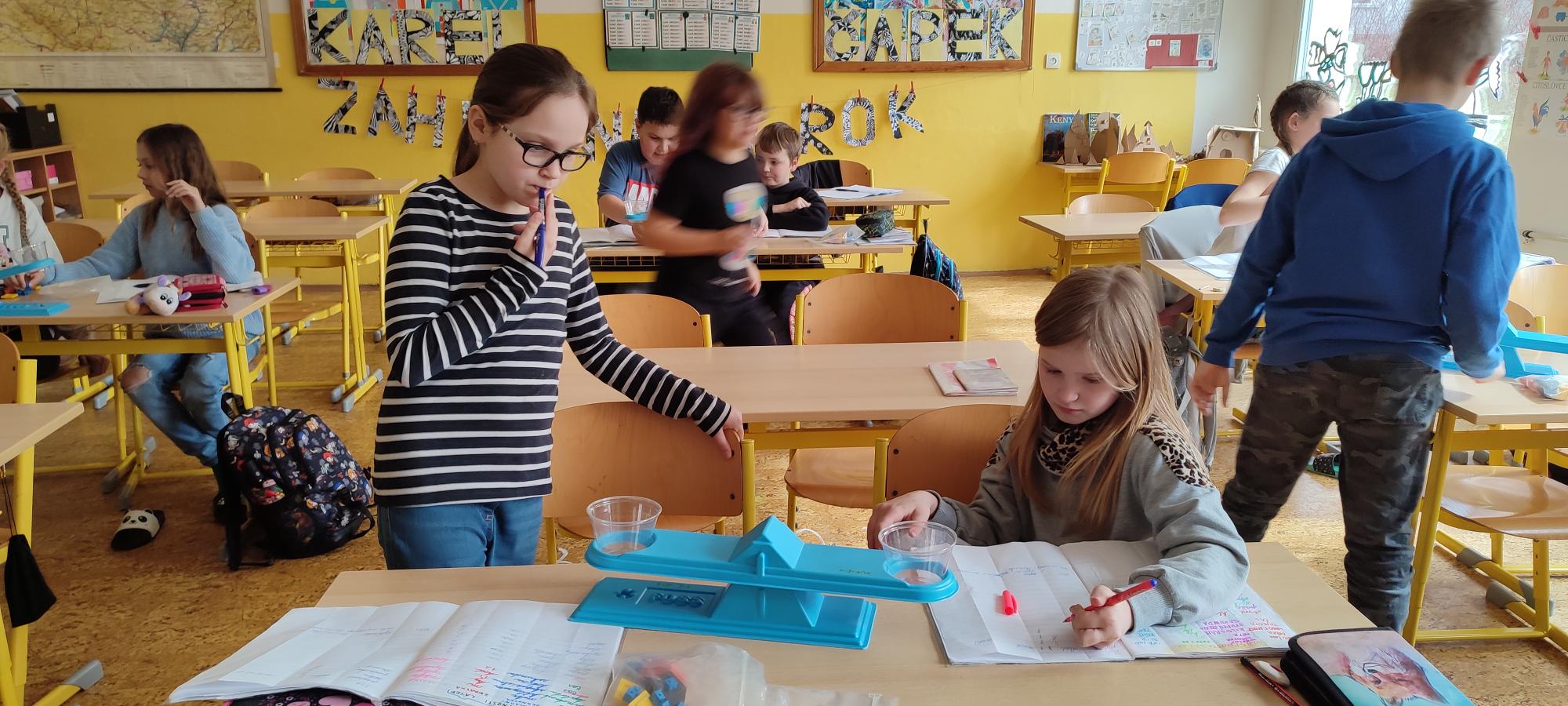 V dnešní hodině přírodovědy jsme se dostali k měření hmotnosti. Nejprve jsme se pomocí myšlenkové mapy zaměřili na různé druhy měřidel hmotnosti. V praktické části jsme porovnávali různé předměty pouze odhadem v gramech. Následovalo vážení předmětů pomocí váhy. Nakonec jsme vypočítali rozdíl mezi odhadem a skutečností.