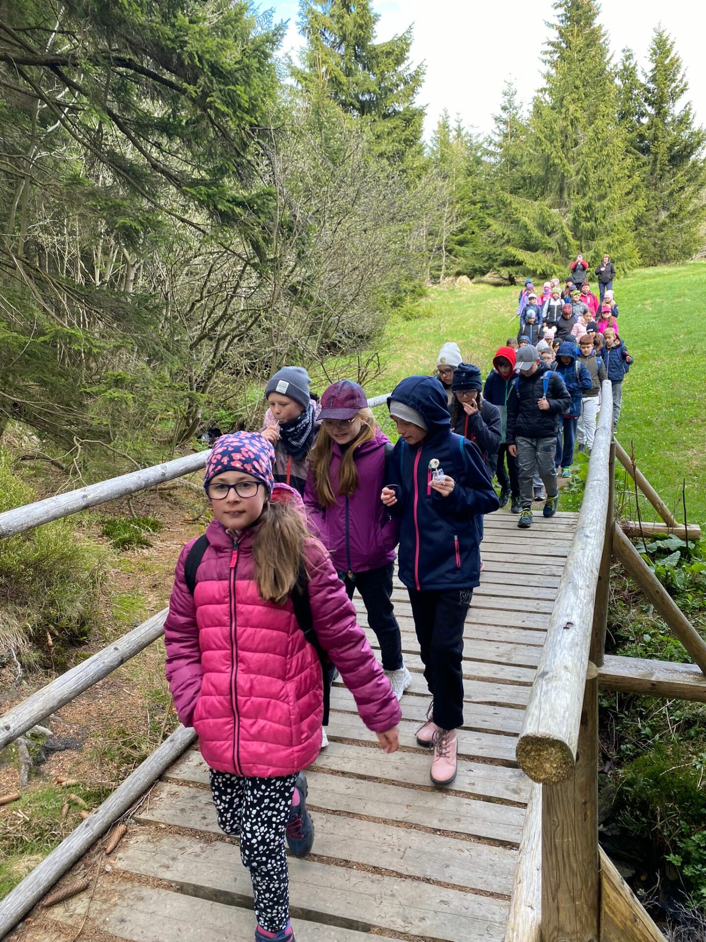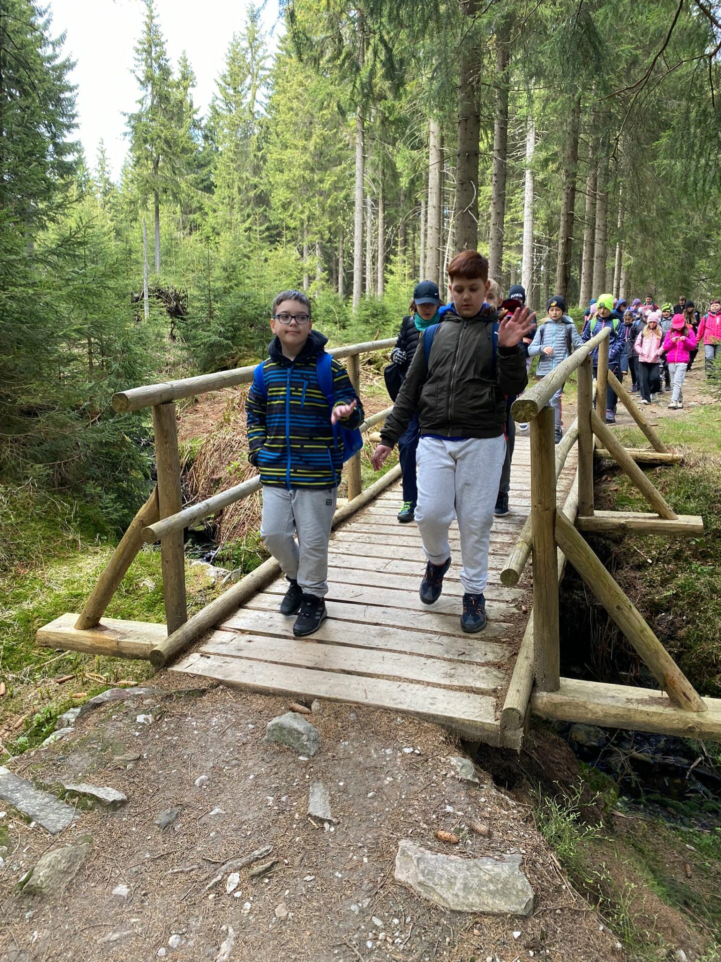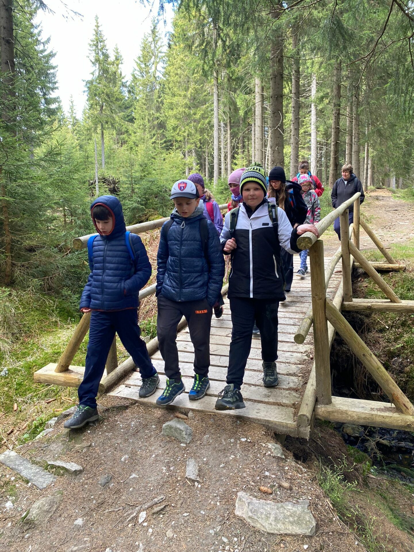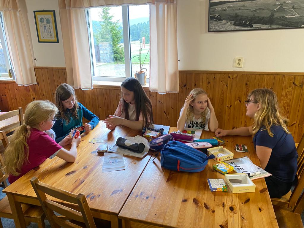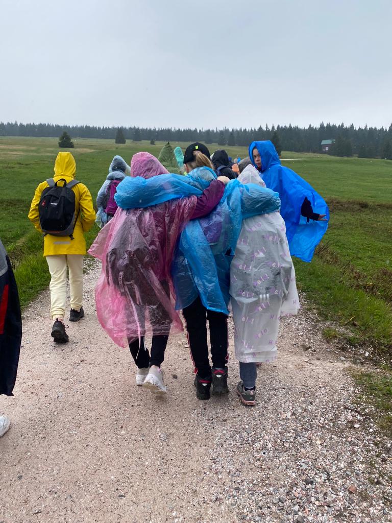Když se třídy 4.AB a 5AB rozhodly podniknout ozdravný pobyt, nikdo nevěděl, jaké to bude dobrodružství. Vydali jsme se do Krkonoš, konkrétně Pec pod Sněžkou a ještě konkrétněji Bouda Svornost. Počasí si s námi dělalo, co chtělo, přesto nám to nezkazilo radost a nadšení. Začali jsme příjezdem do Jánských lázní. Stezka korunami stromů byla sice deštivá, ale to nám nevadilo, odměnou nám byl dobrý oběd od rodičů v batohu. Lanovkou jsme pokračovali na Černou horu a pak hezky pěšky až k naší boudě. Program byl pestrý každý den, od stavění lesních domečků, úkrytů, soutěží, luštění, hledání pokladu až po vrchol celého pobytu – Sněžka. Zážitek, na který nezapomeneme. Mašinka, lanovka, schody, kroky, vítr, zima, sníh, slunce – to vše nás doprovázelo. A víte co, nám to vůbec nevadilo. Nezáleží na tom, kde jsme, ale s kým tam jsme. Skvělá parta, která se podporovala, navzájem si pomáhala. Zapomněli jsme na běžné strasti, užívali si maličkostí a okolní krásy. Celou dobu nás provázeli malí ježci (sami jsme si je vytvořili), kteří nám sloužili jako odměna za veškeré činnosti. Děkujeme všem, kteří se podíleli na možnosti zúčastnit se tohoto ozdravného pobytu a „JEŽKŮM ZDAR!“