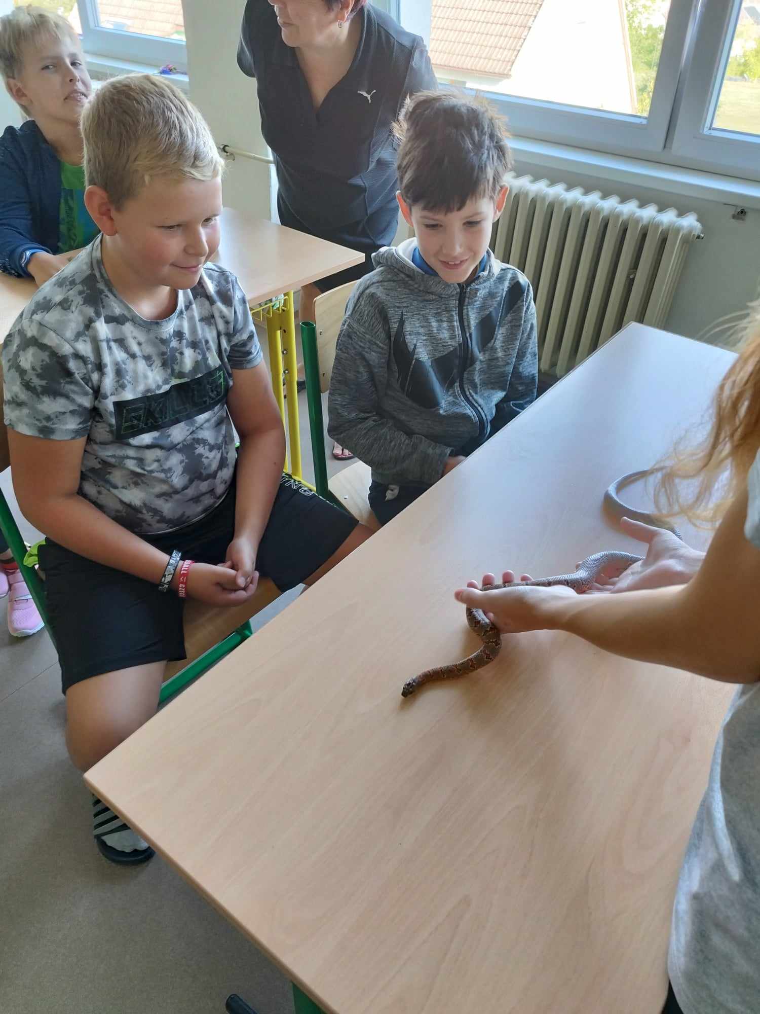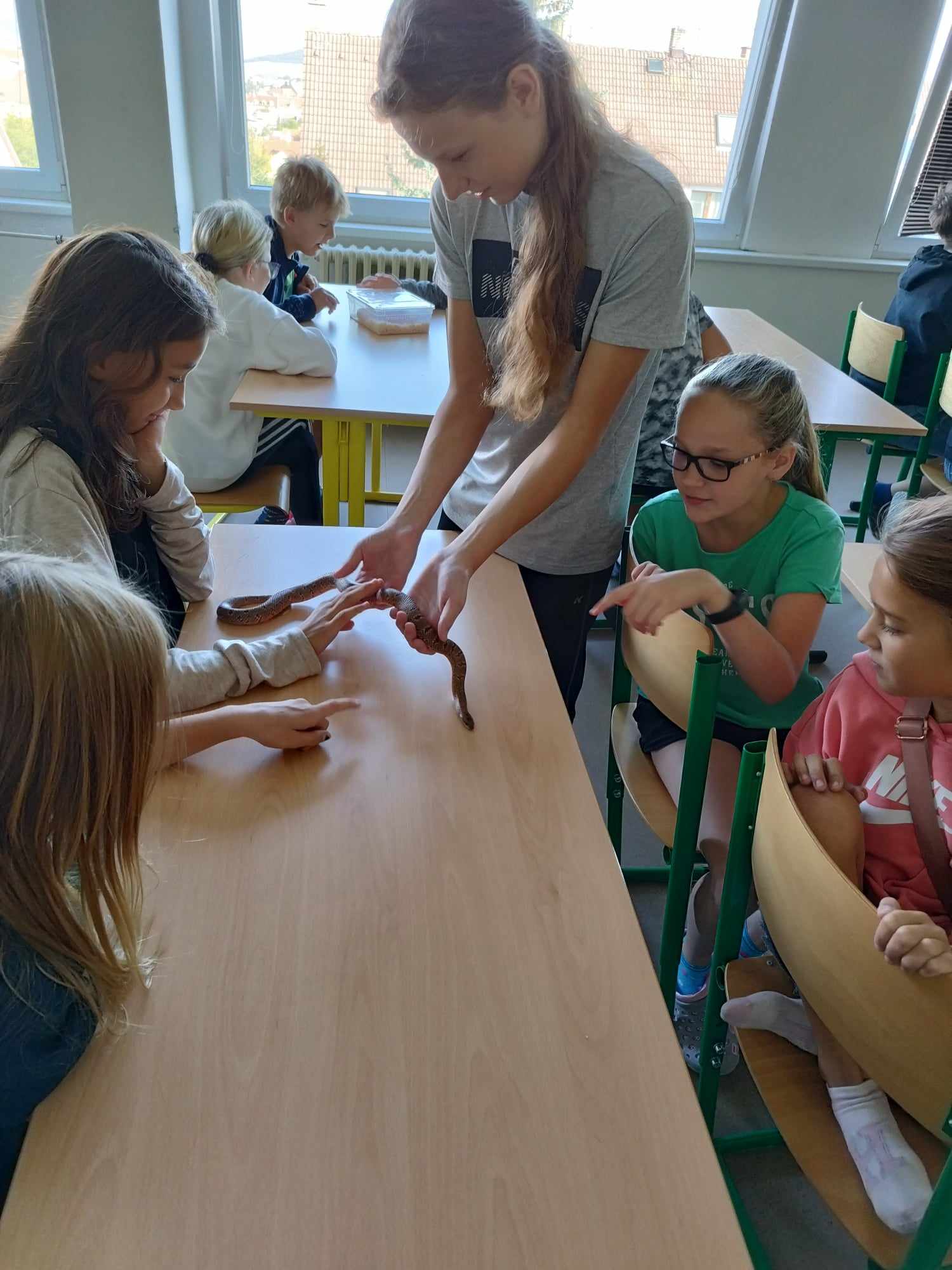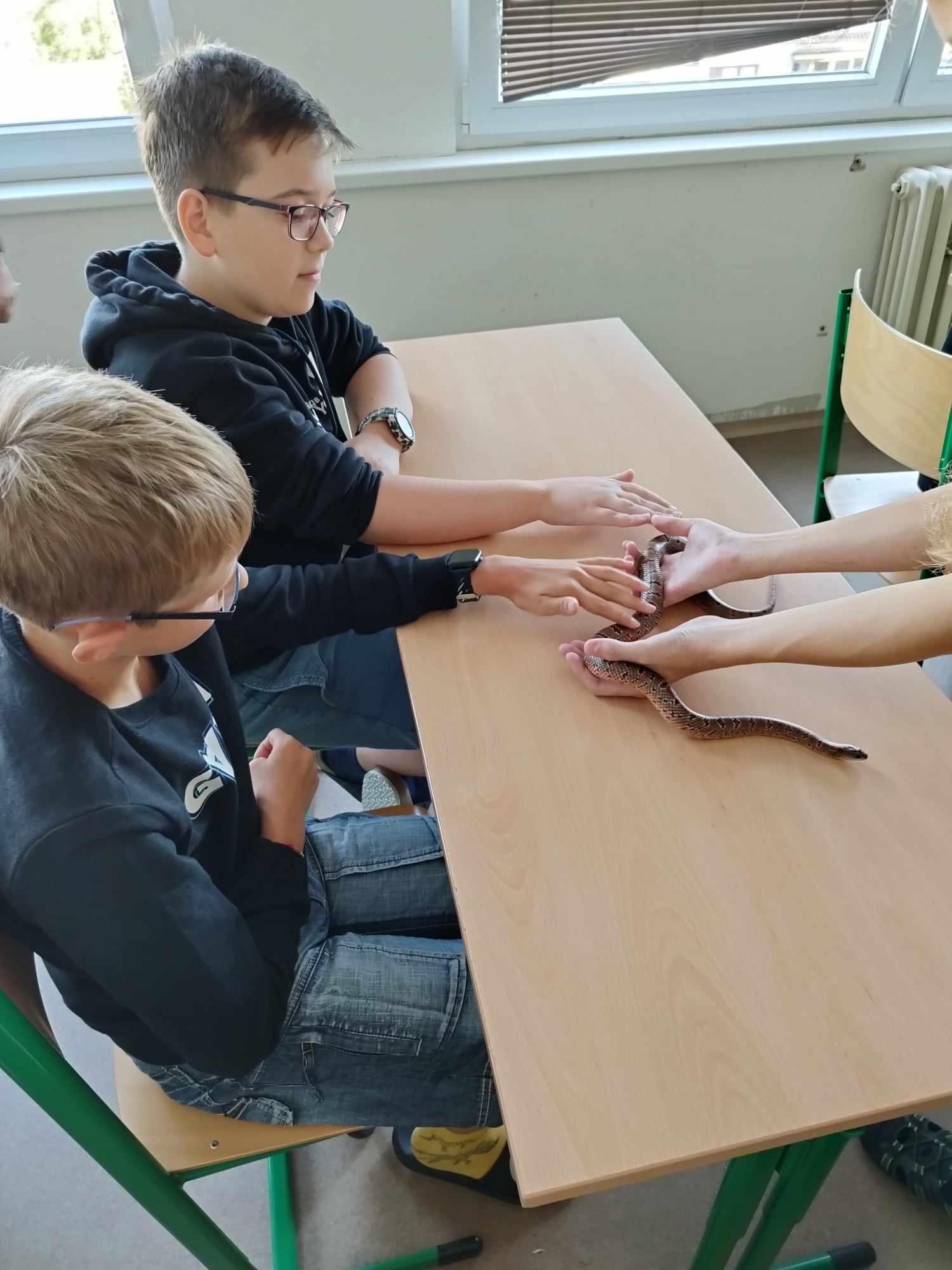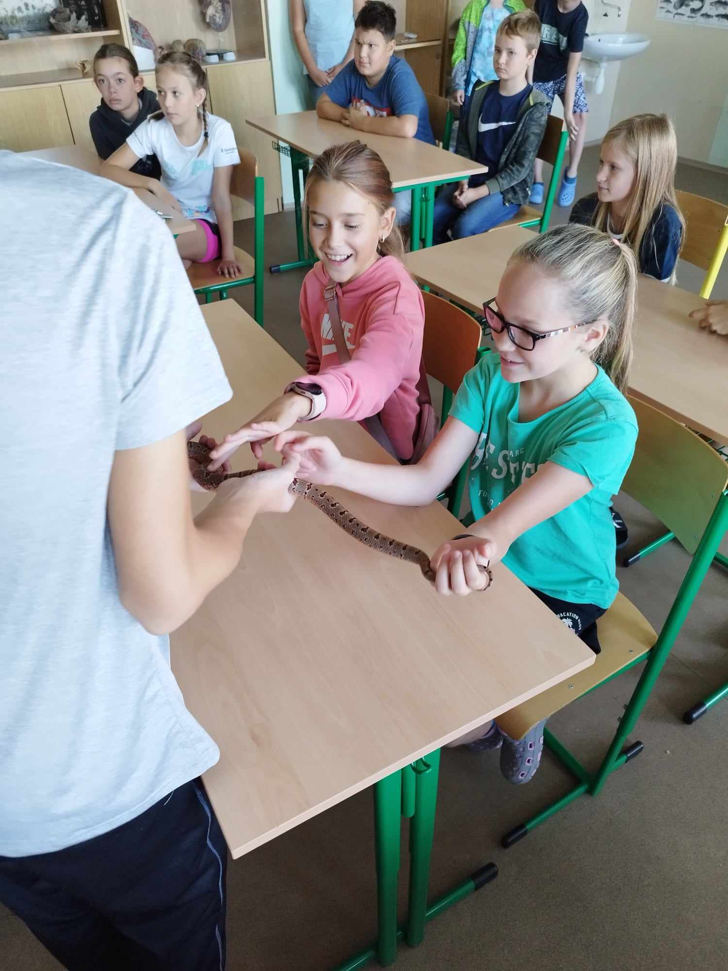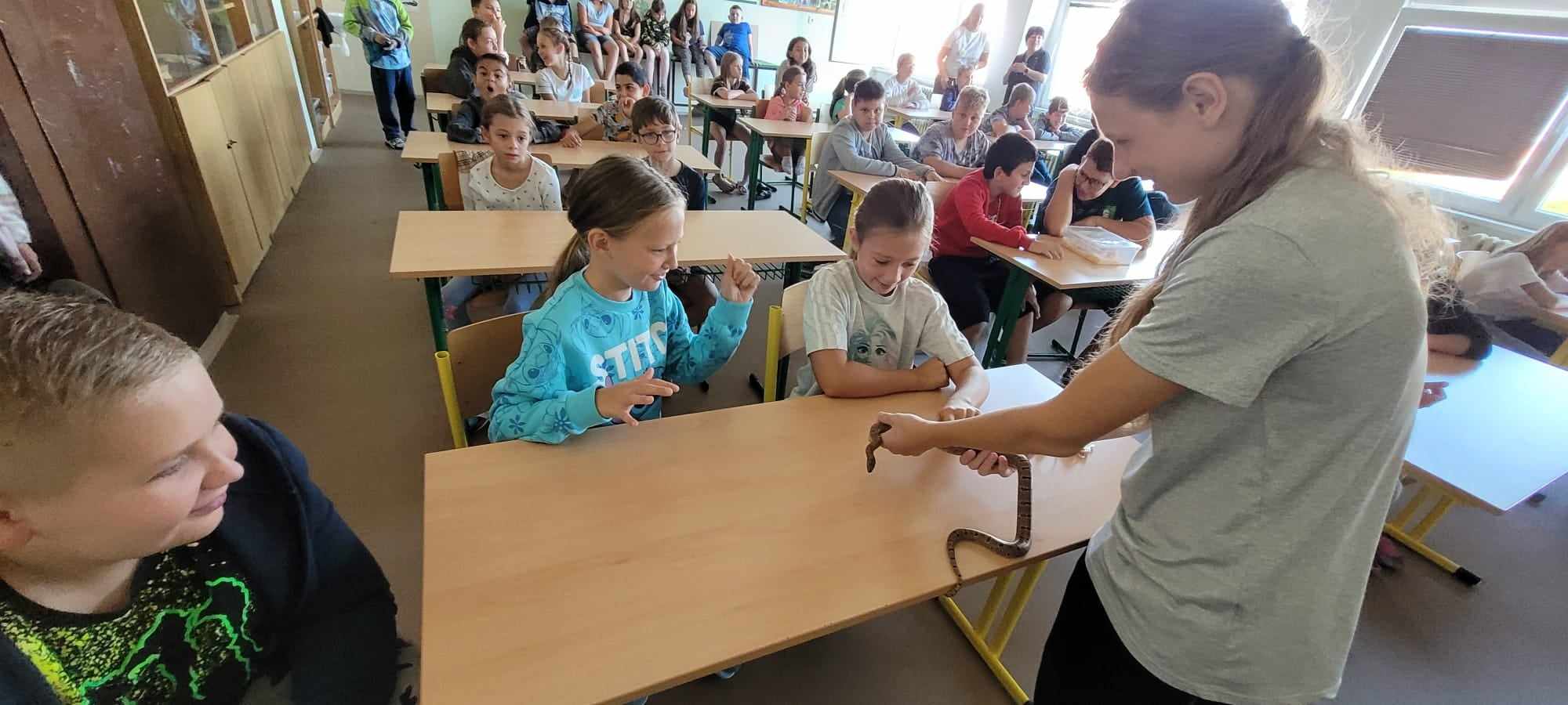 najednou. Ano, mluvíme o hadech, ještěrkách a podobných plazech. My moc děkujeme za návštěvu, povídání a ukázky živých tvorů. A jestli Vás zajímá, kolik zvířátek má doma, tak se číslo pohybuje kolem 150. ![]()