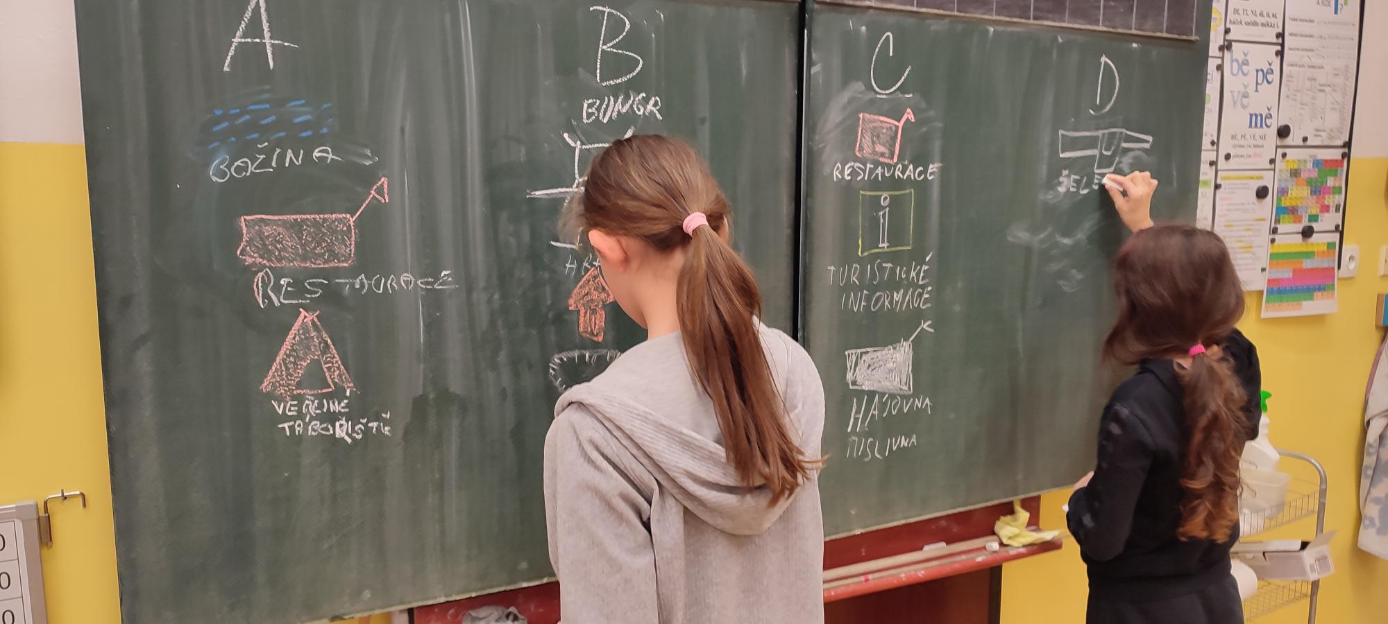 Ve skupinové práci žáci prověřovali znalosti mapových značek. Pořádaná soutěž je motivovala k získání nových vědomostí. Další zprávyvýlet na Červeňák13. 6. 2025světový den včel20. 5. 2025ukázky dravců7. 5. 2025Velikonoční zdobení třídy15. 4. 2025Velikonoční tvořivé dílny v muzeu15. 4. 2025Preventivní program „klima třídy“25. 3. 2025