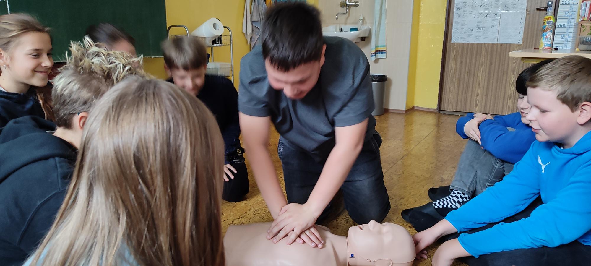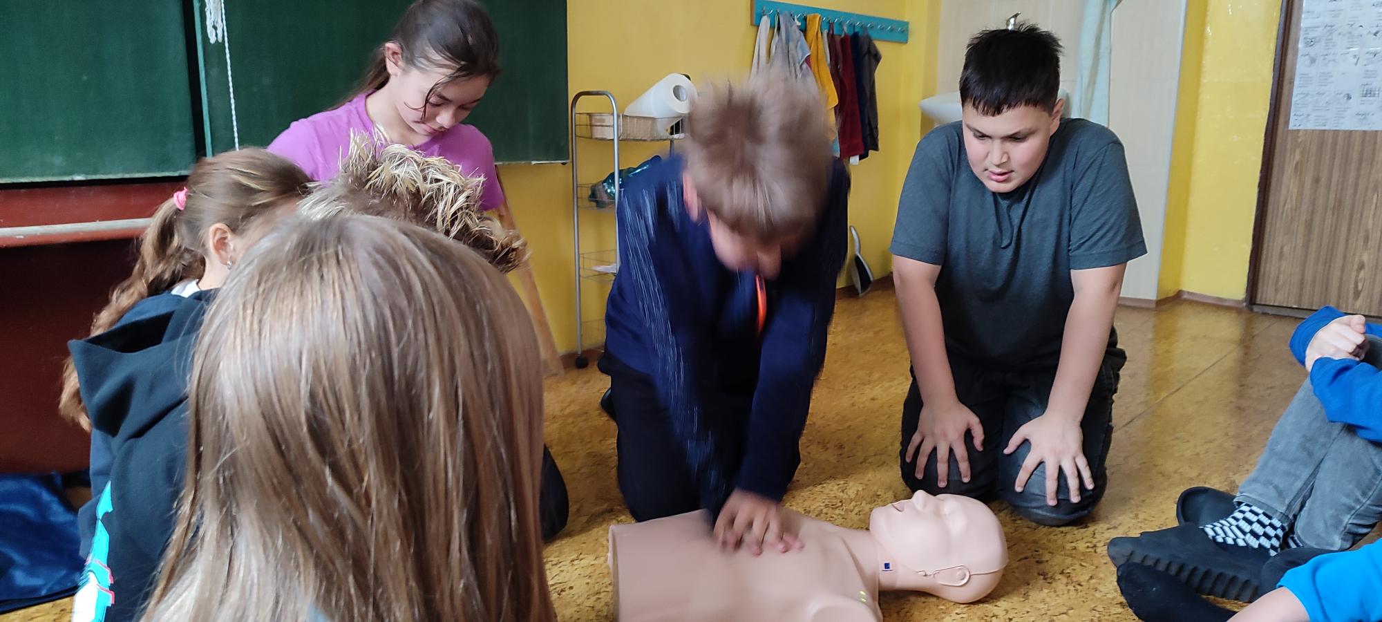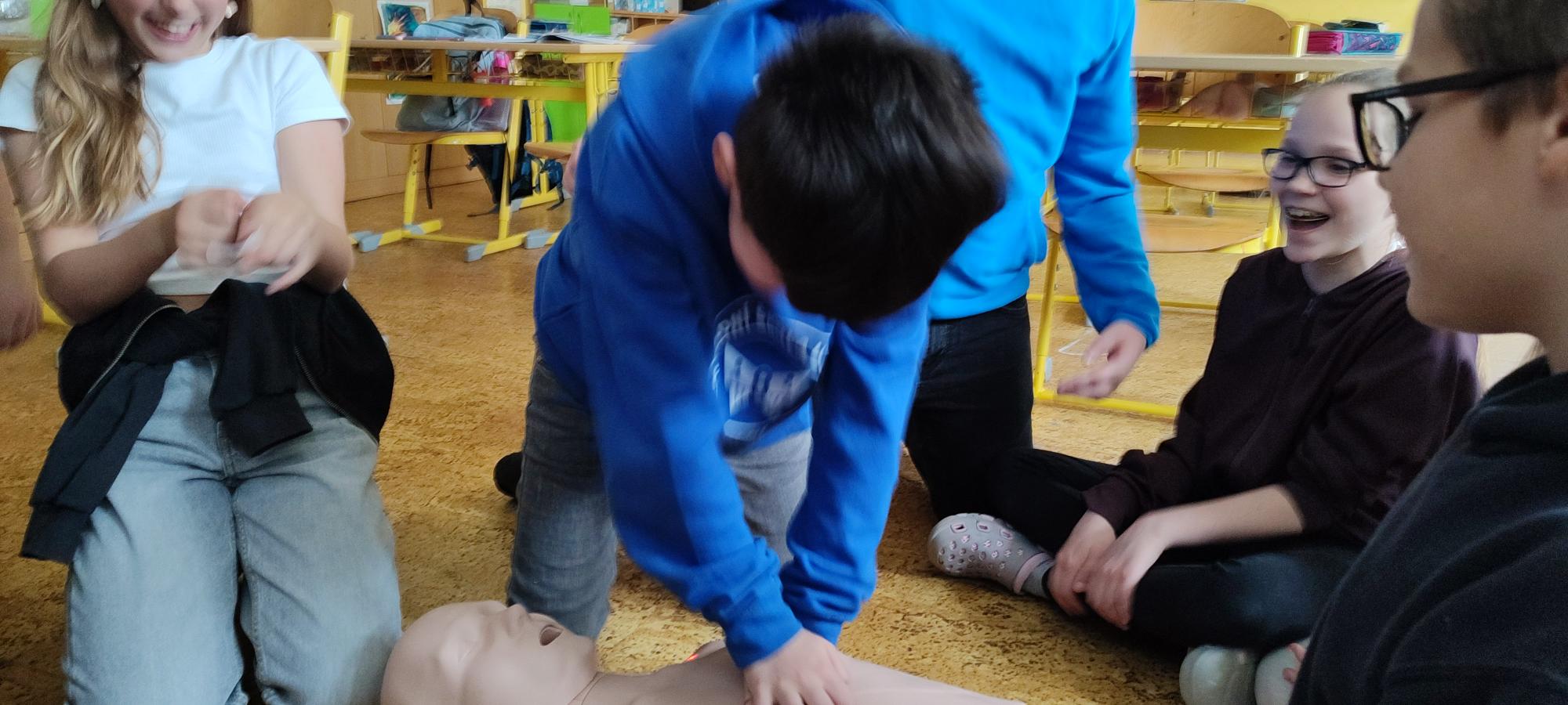 Nezapomínáme ani na výuku první pomoci. Na vlastní kůži jsme si zkusili, jak je těžké provádět masáž srdce.
