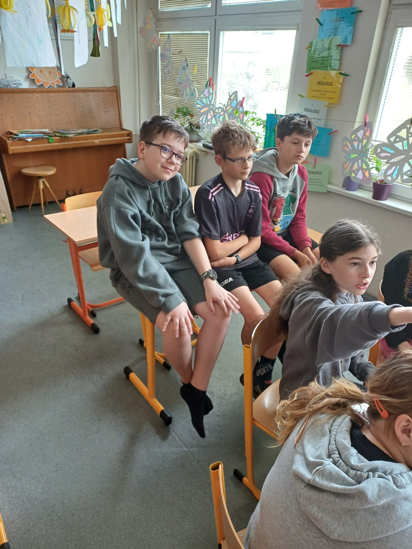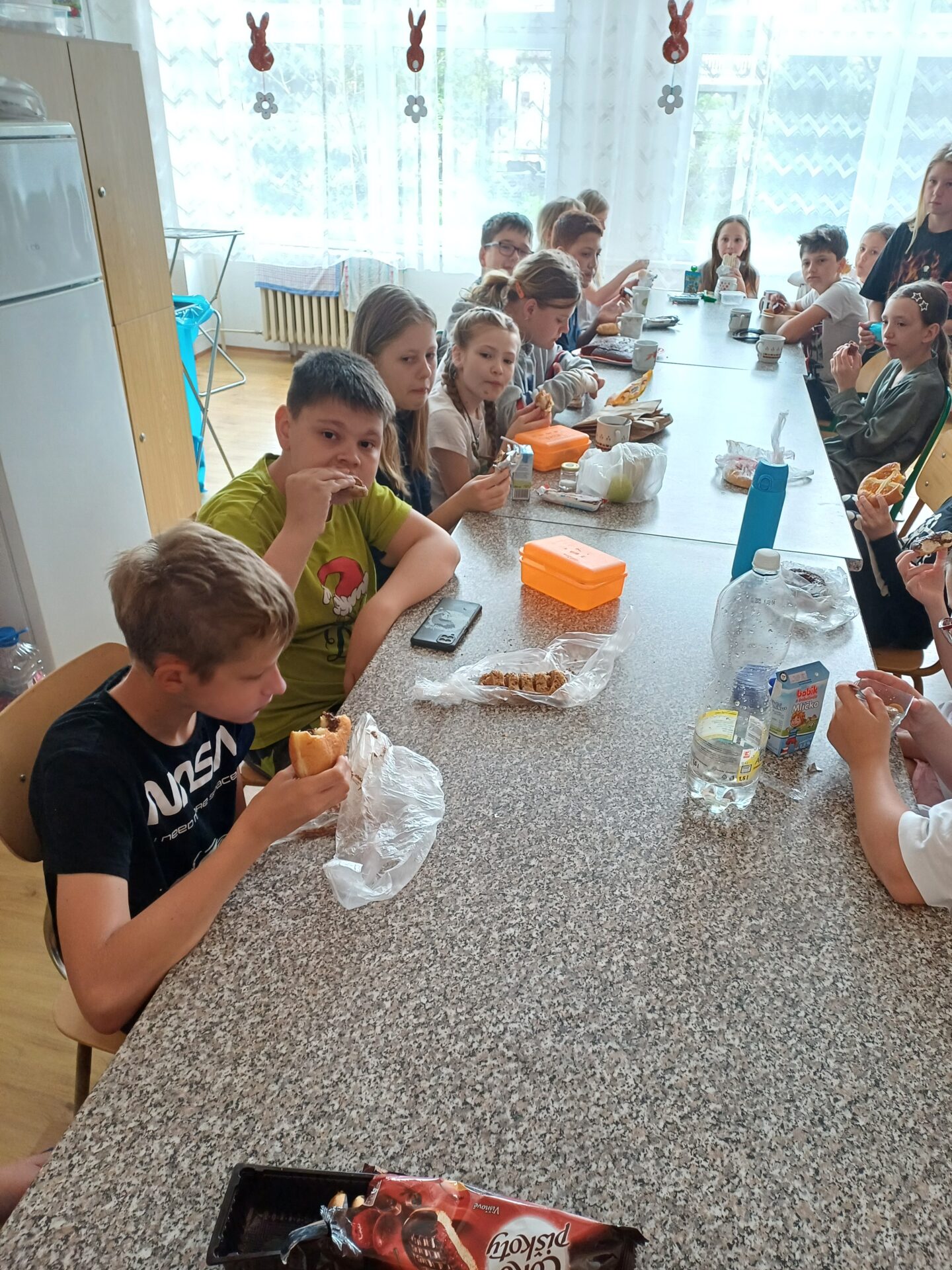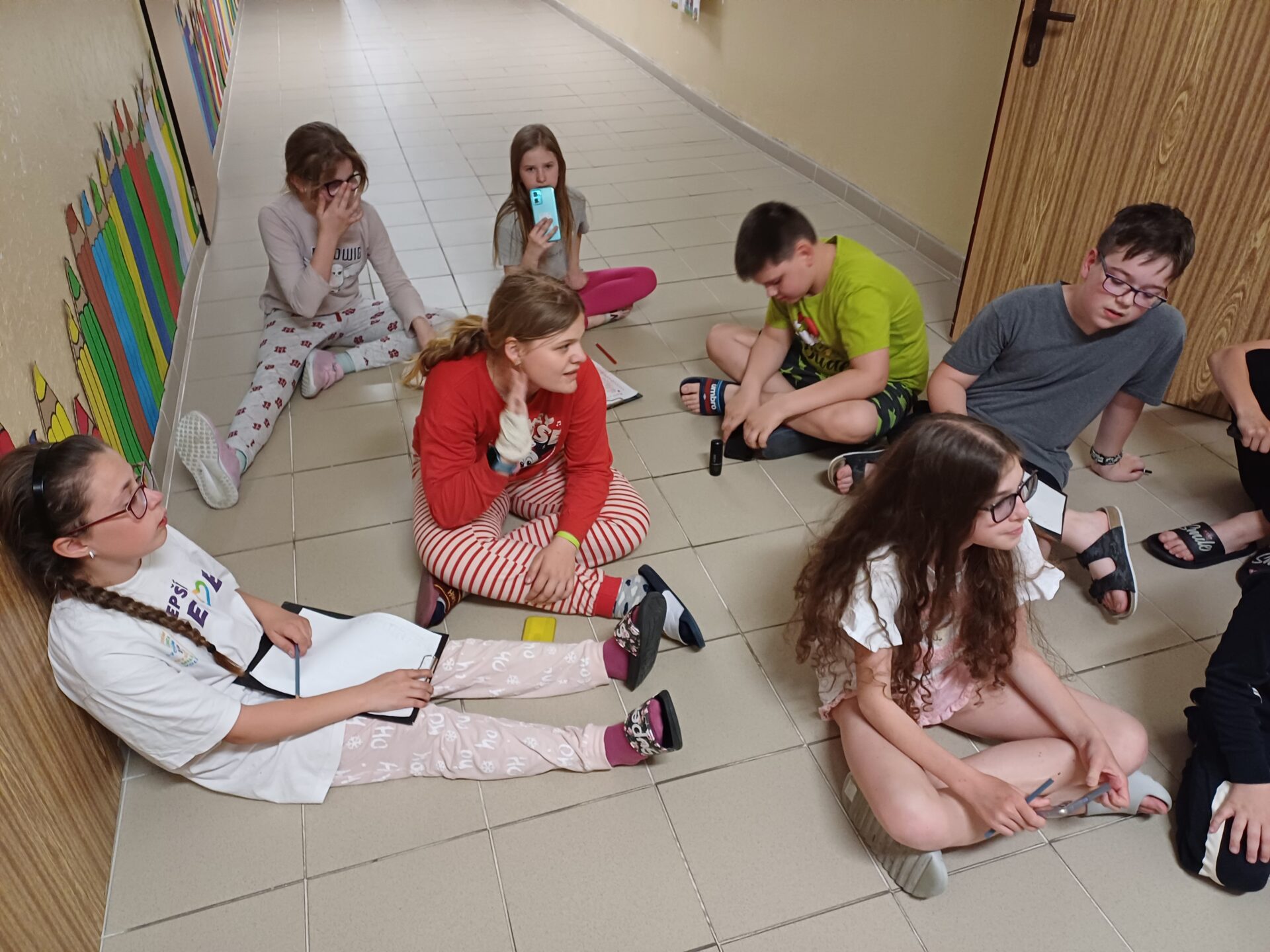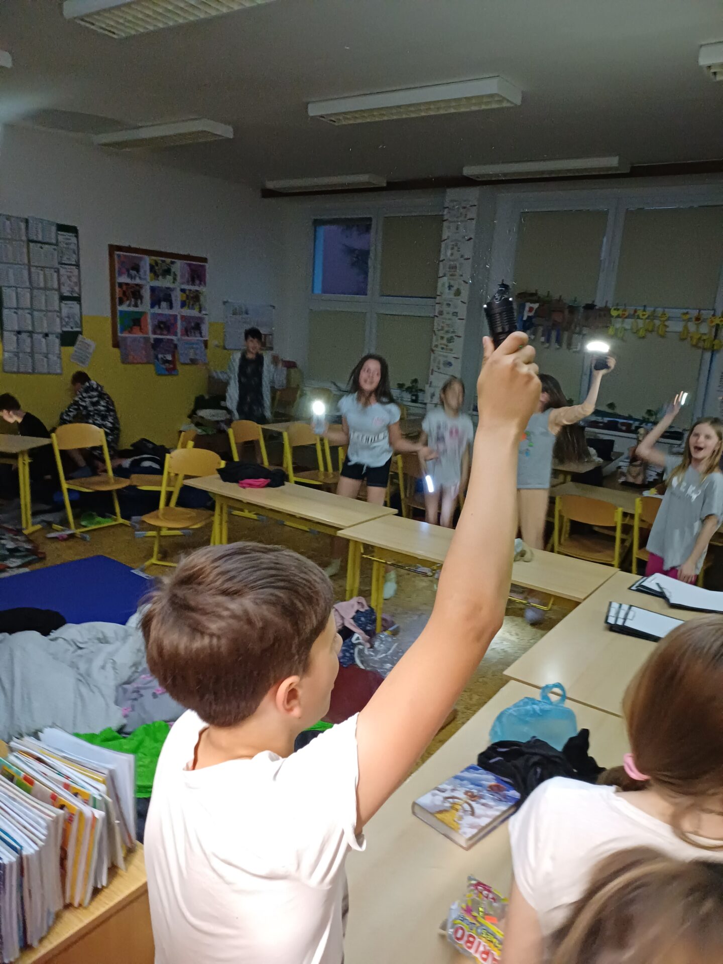 Páťáci si naplánovali spaní ve škole. 🛏Počasí nám přálo, sluníčko na hřišti pěkně hřálo☀️, hladové bříško nás zatáhlo na dobré jídlo🍕🌮🍔. Ve škole na nás čekala malá únikovka pomocí QR kódů, zachránili jsme se. 🔑🔐